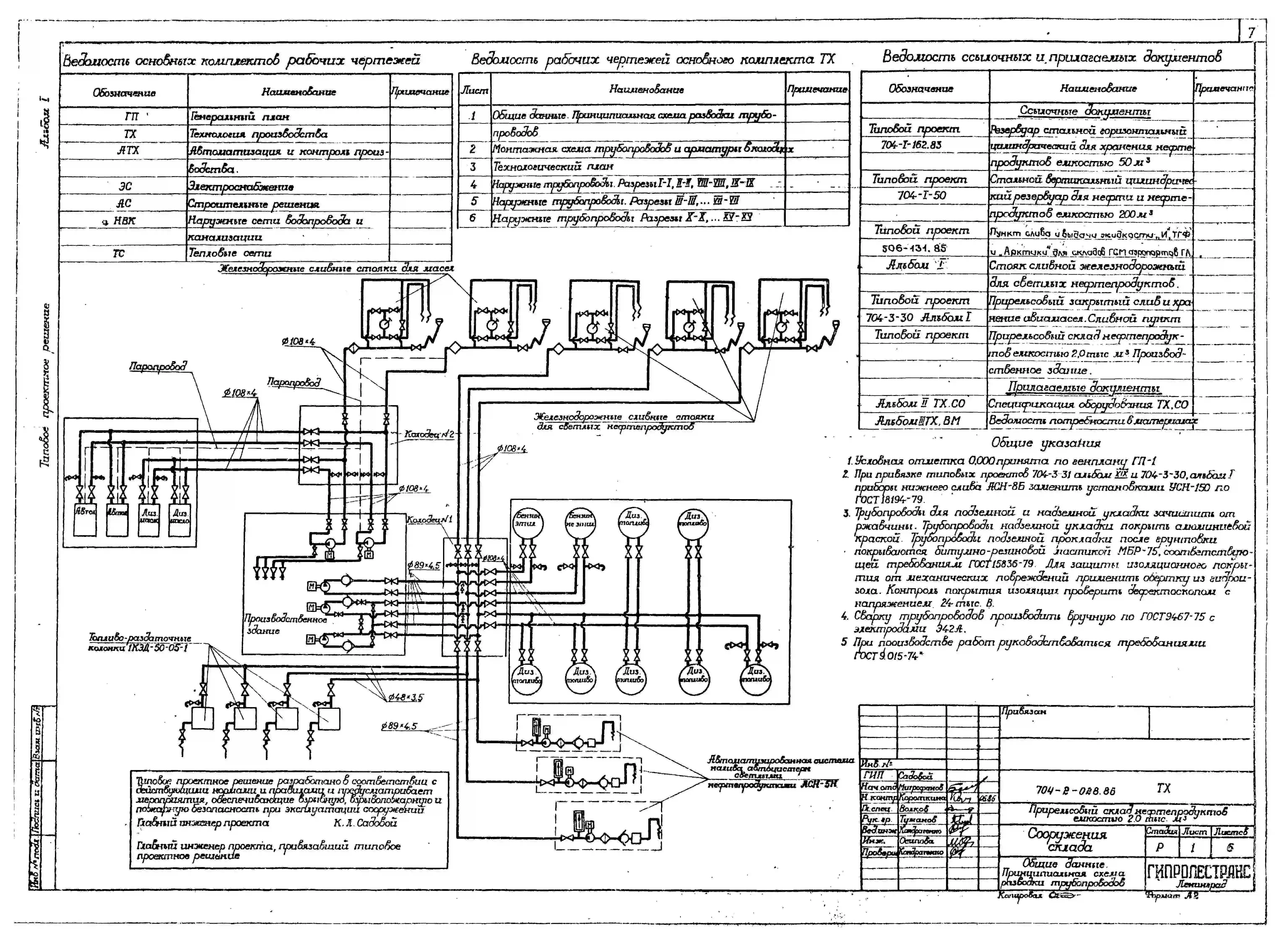 Типовой проект 704-2-028.86 Сооружения прирельсового склада нефтепродуктов емкостью 2,0 тыс. м3