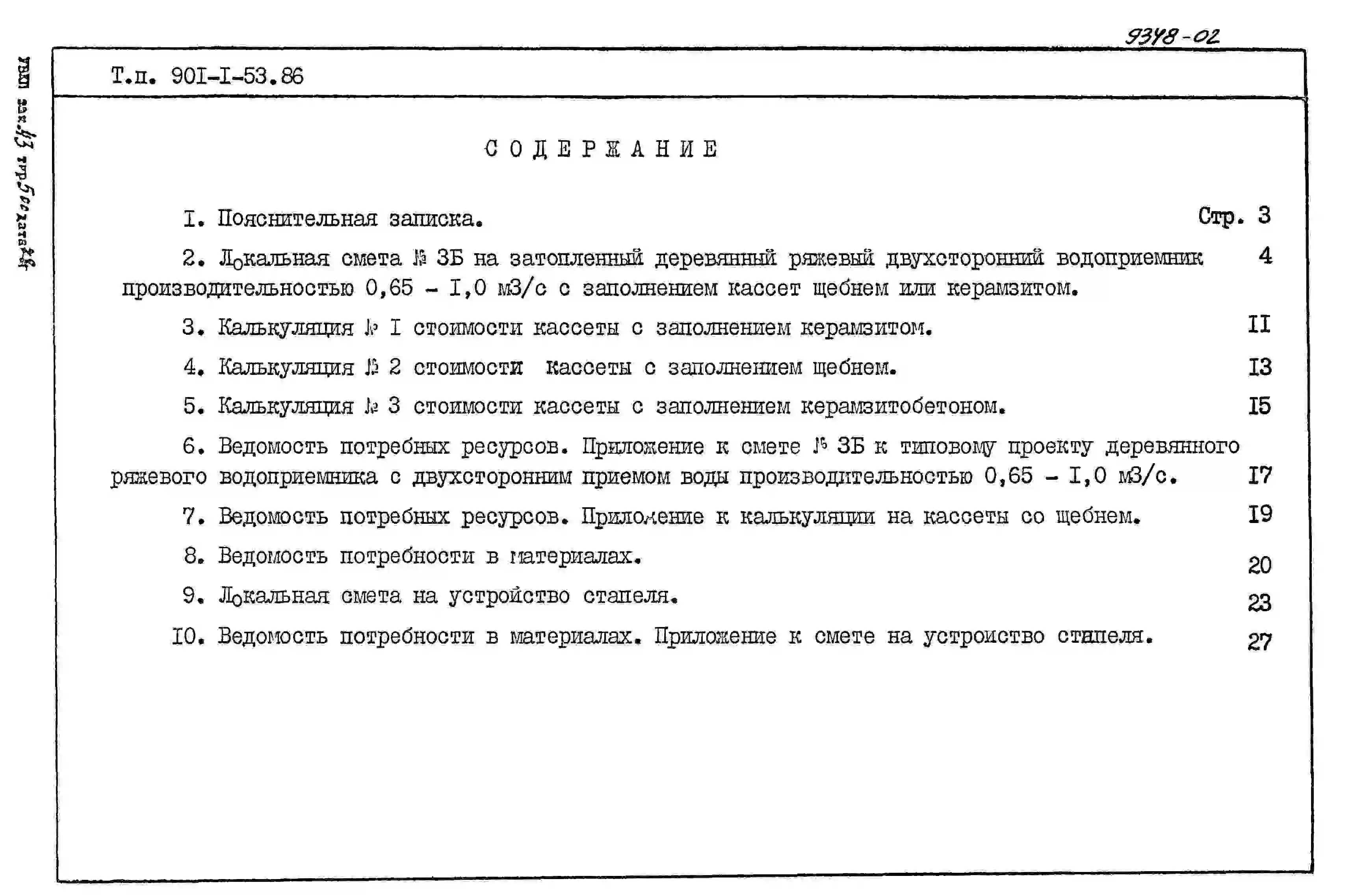 Типовой проект 901-1-53.86 Затопленный водоприемник деревянный двусторонний производительностью от 0,65 до 1,00 м.куб/с