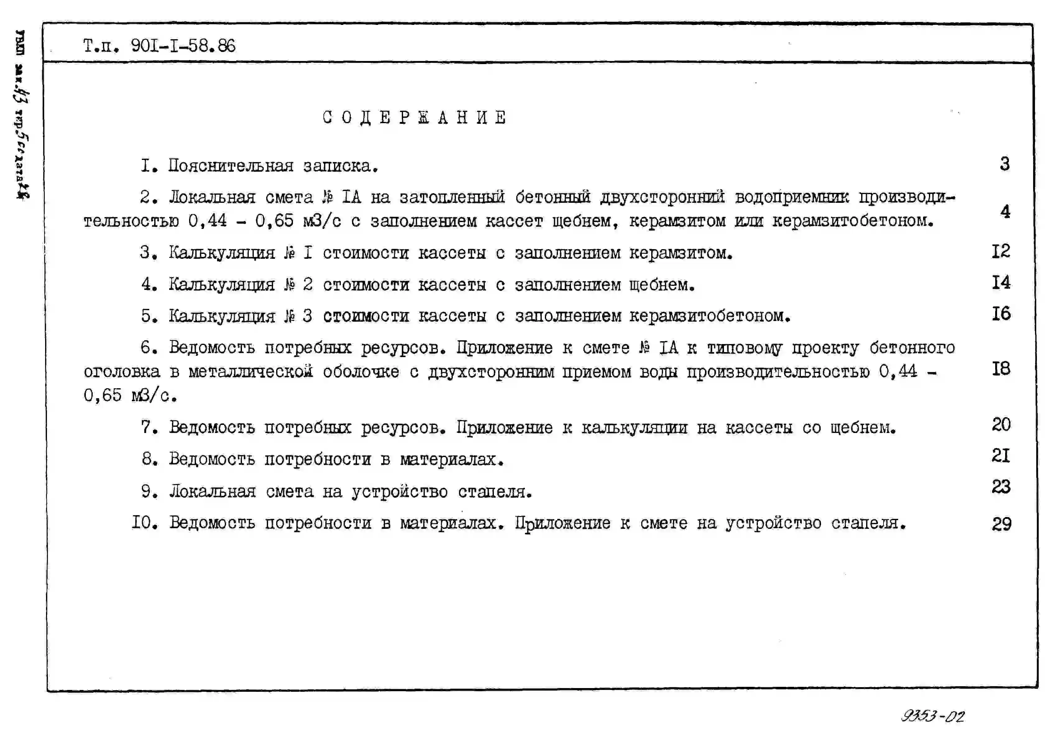 Типовой проект 901-1-58.86 Затопленный водоприемник бетонный двусторонний производительностью от 0,44 до 0,65 м3/с