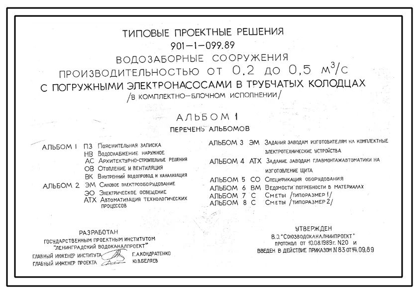 Типовой проект 901-1-099.89 Водозаборные сооружения производительностью от 0,2 до 0,5 м.куб/час