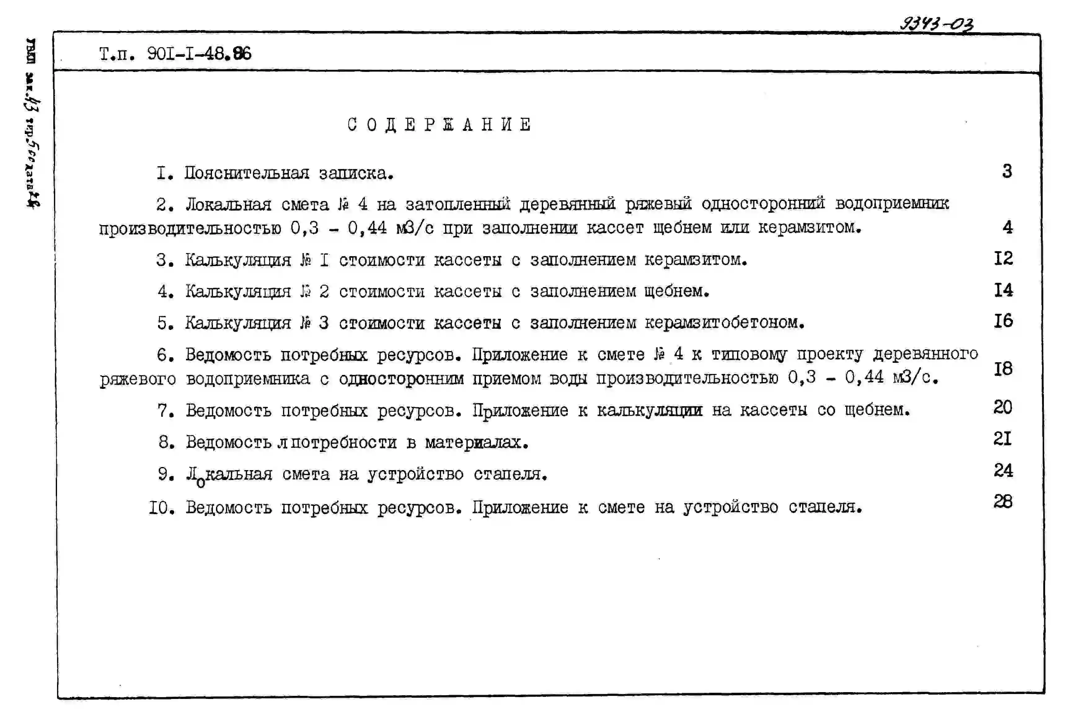 Типовой проект 901-1-48.86 Затопленный водоприемник деревянный односторонний производительностью от 0,30 до 0,44 м.куб/сек