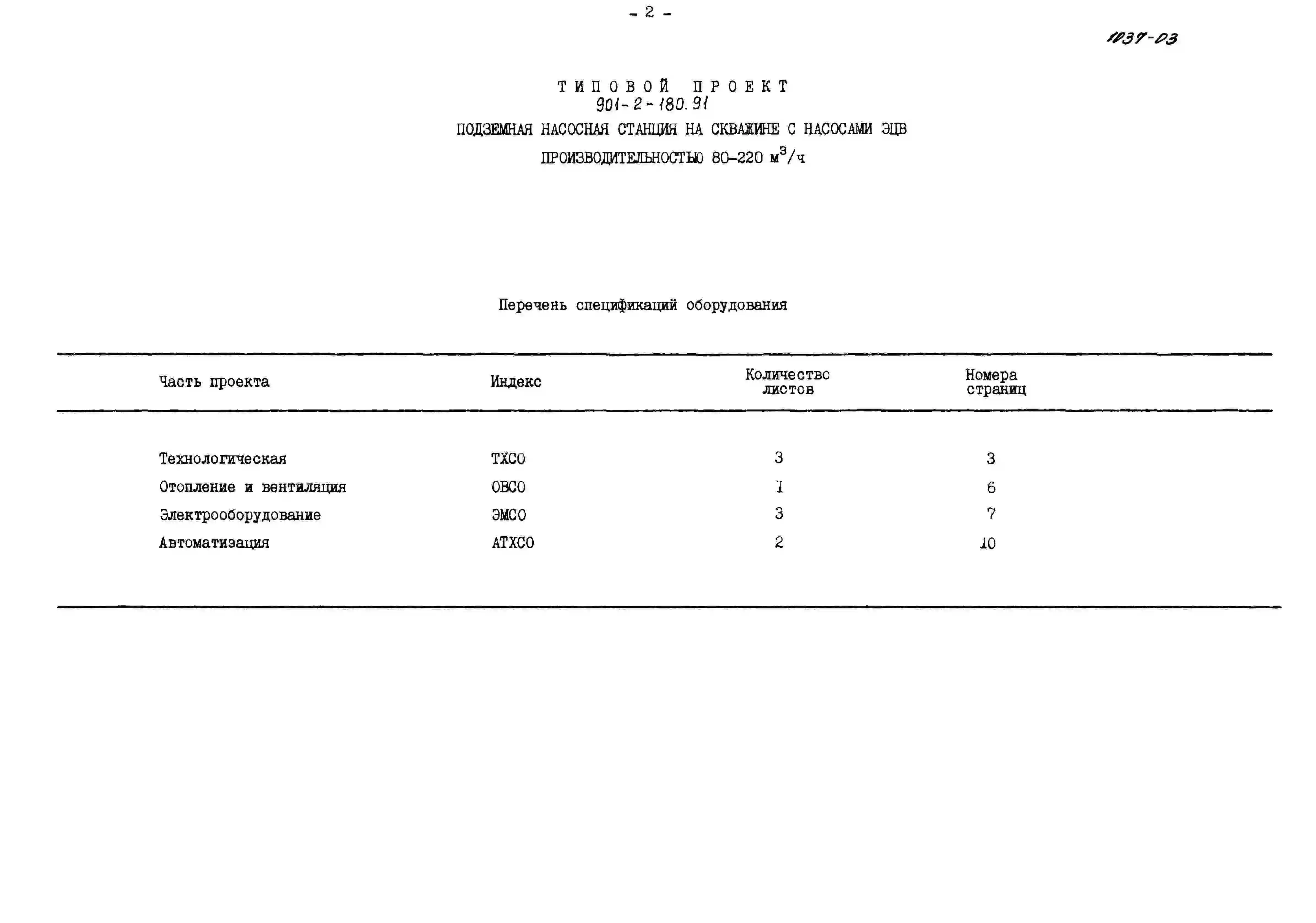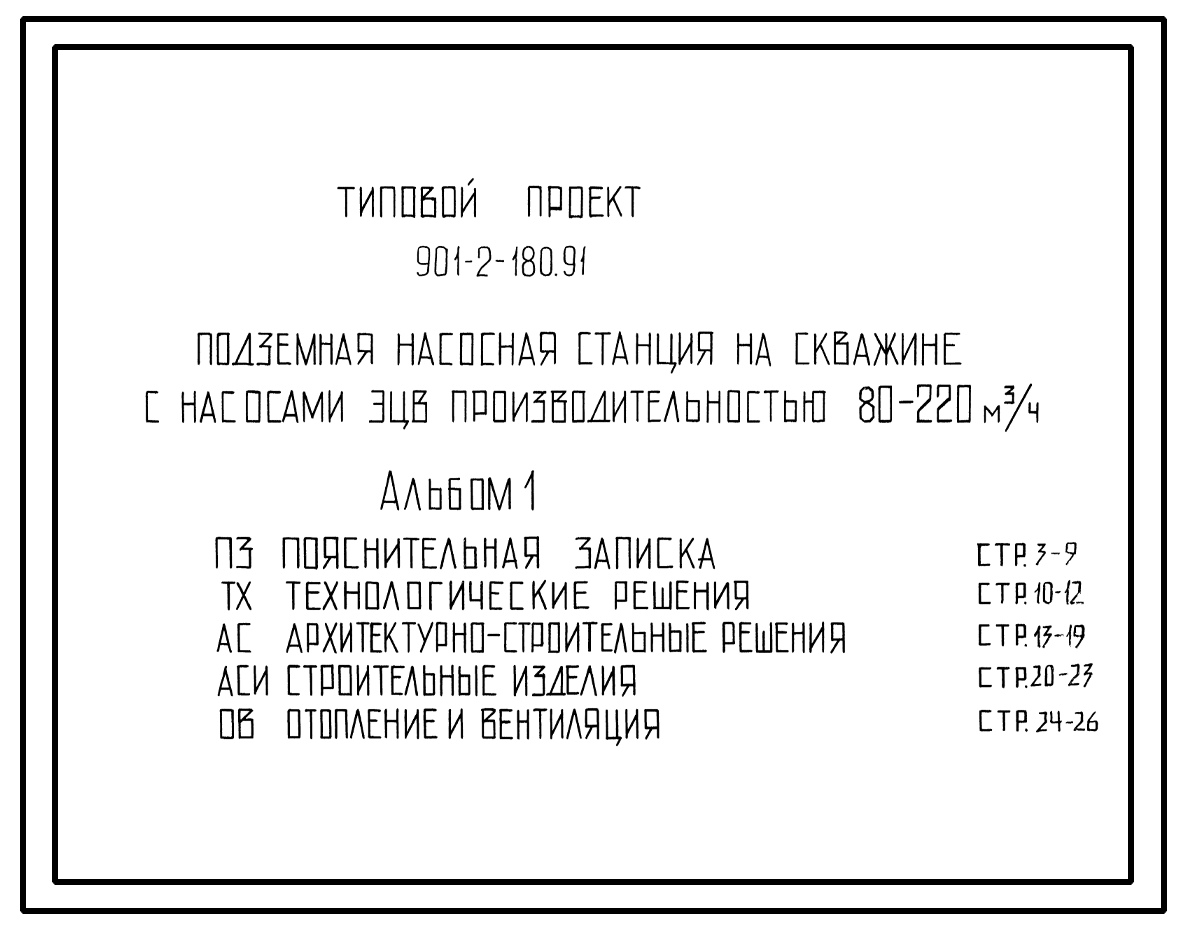 Типовой проект 901-2-180.91 Подземная насосная станция с насосами ЭЦВ производительностью 80–220 м3/ч