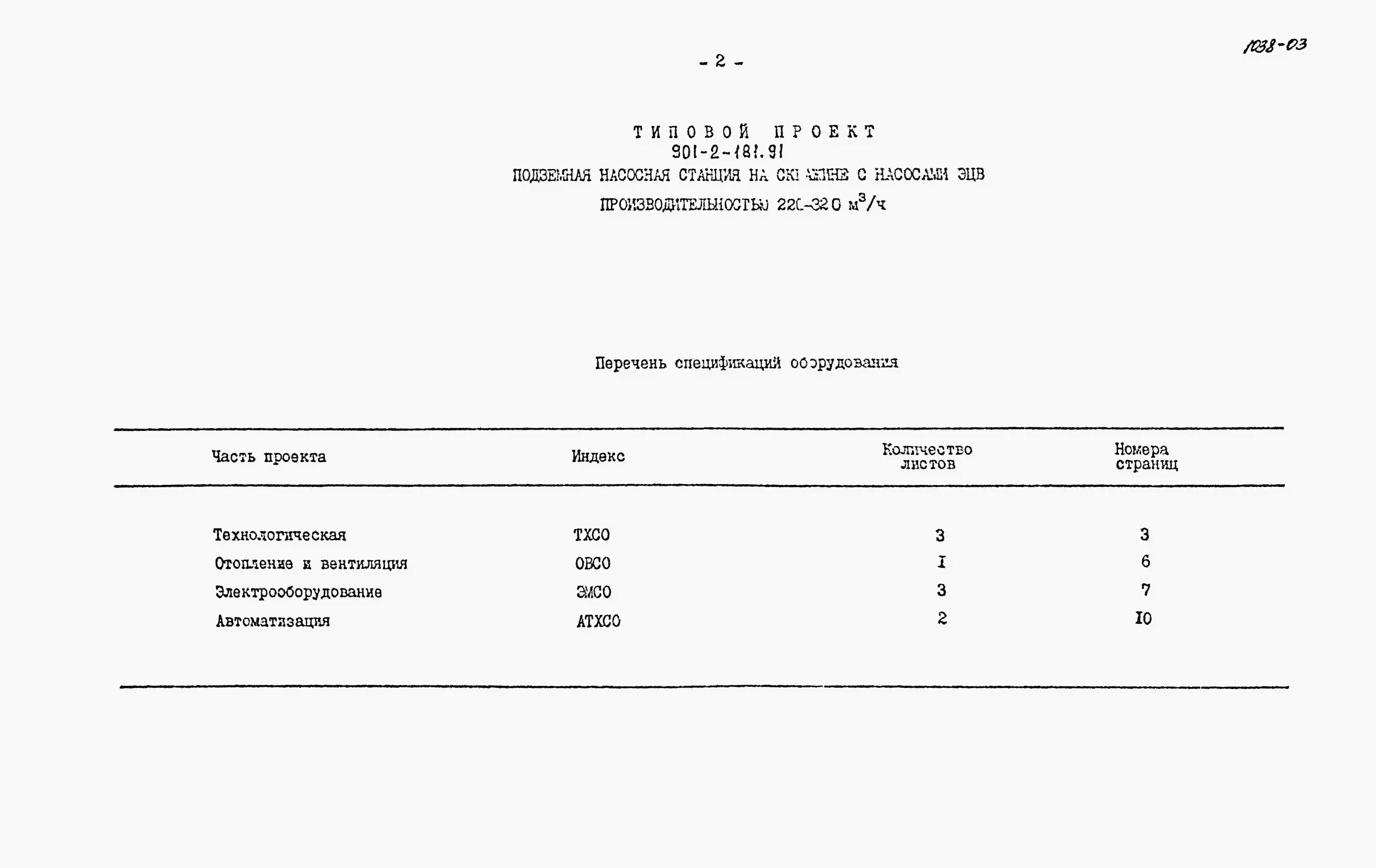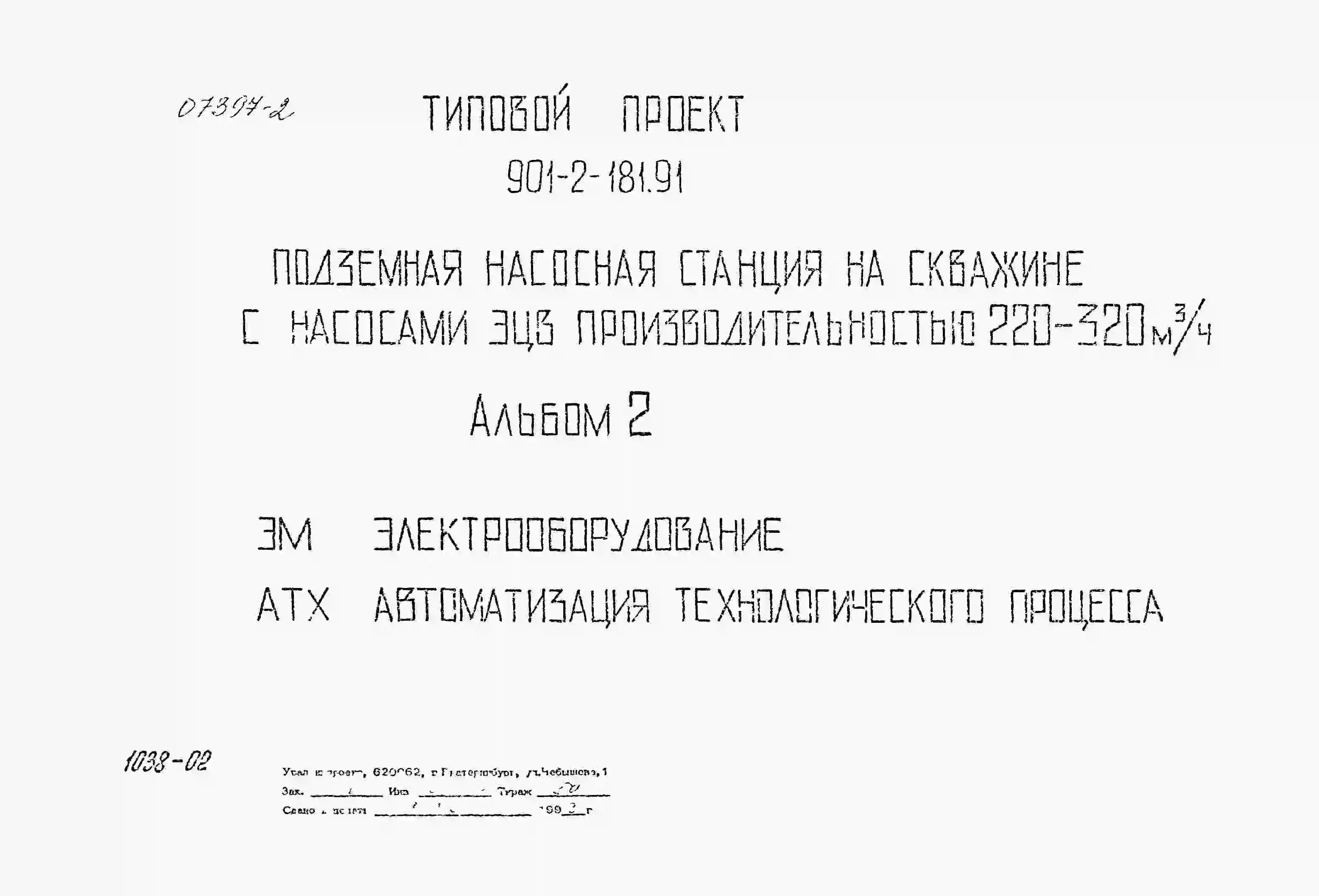 Типовой проект 901-2-181.91 Подземная насосная станция с насосами ЭЦВ производительностью 220–320 м3/ч