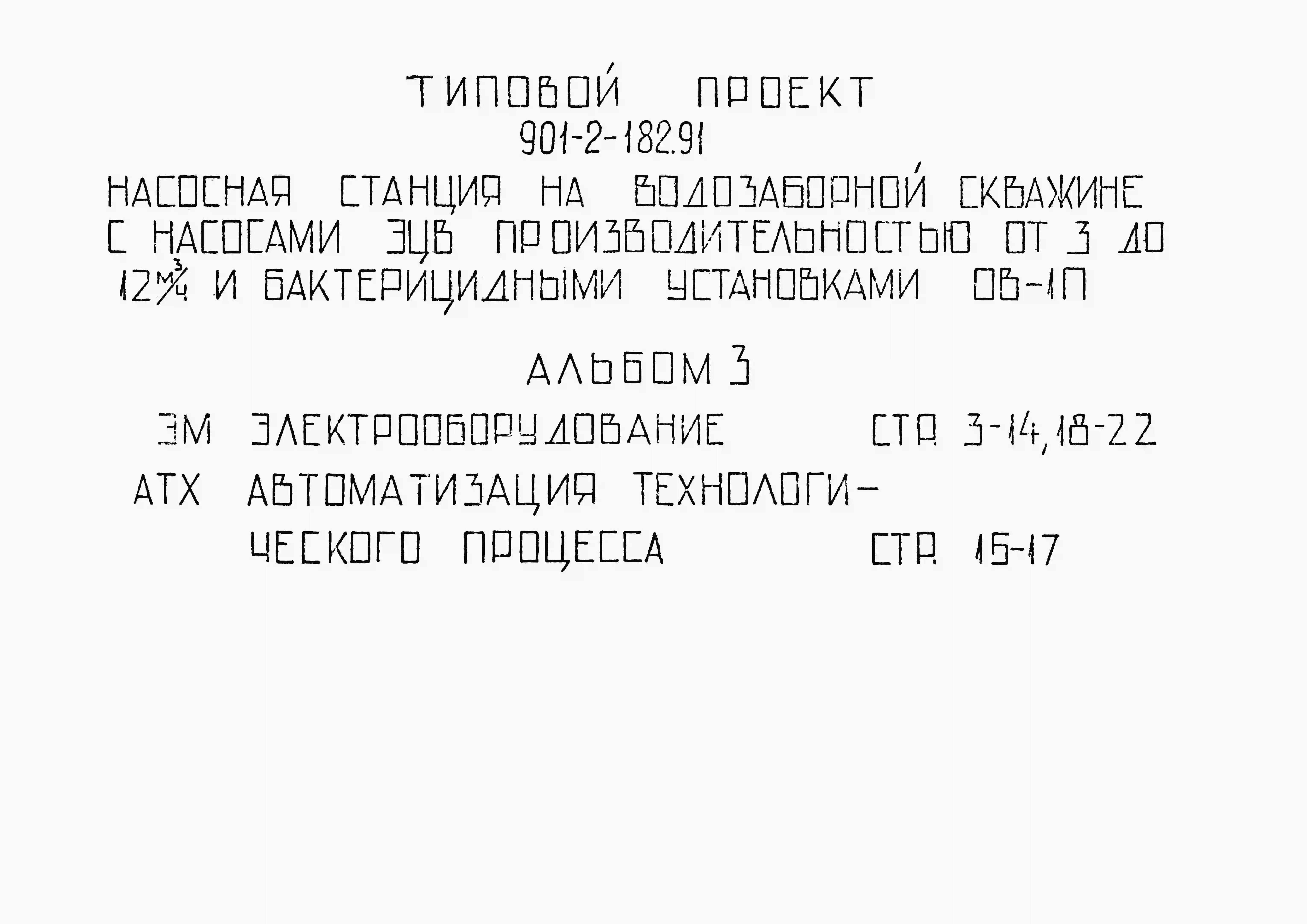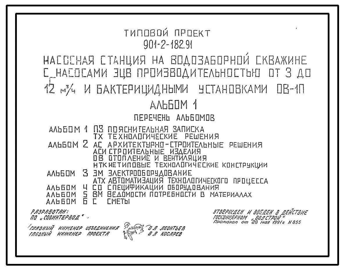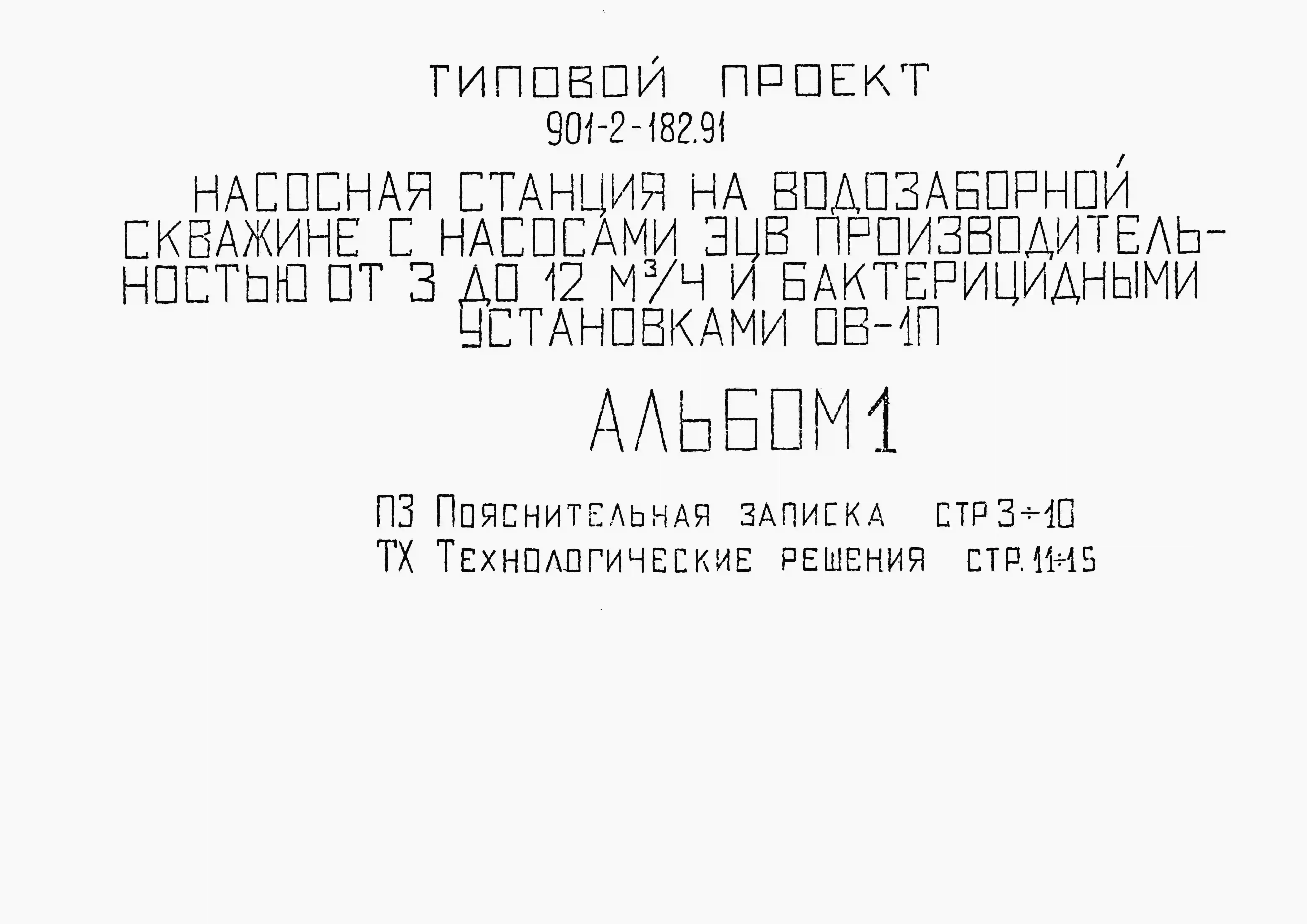 Типовой проект 901-2-182.91 Насосная станция на водозаборной скважине с насосами ЭЦВ производительностью от 3 до 12 м3/ч и бактерицидными установками ОВ-1П
