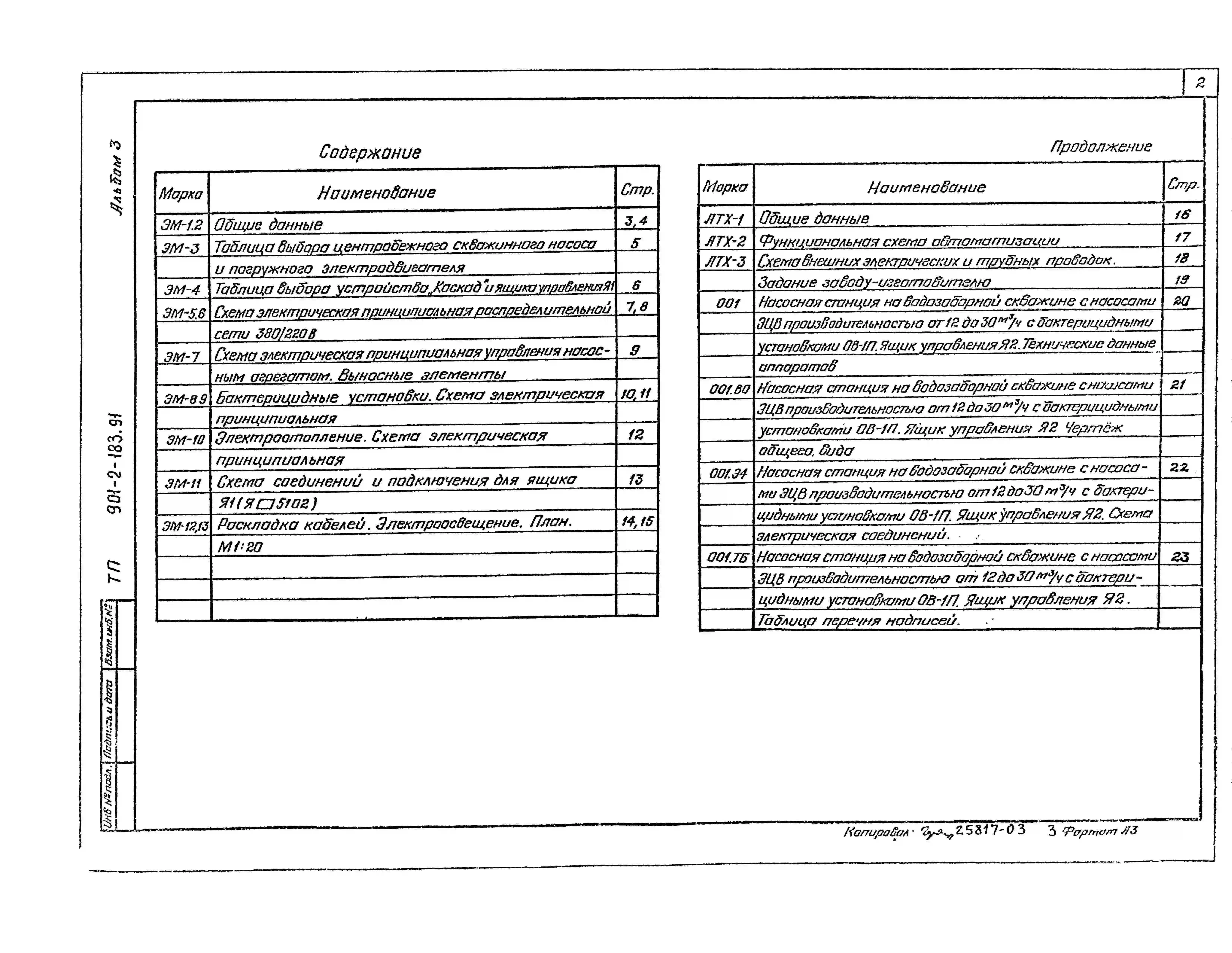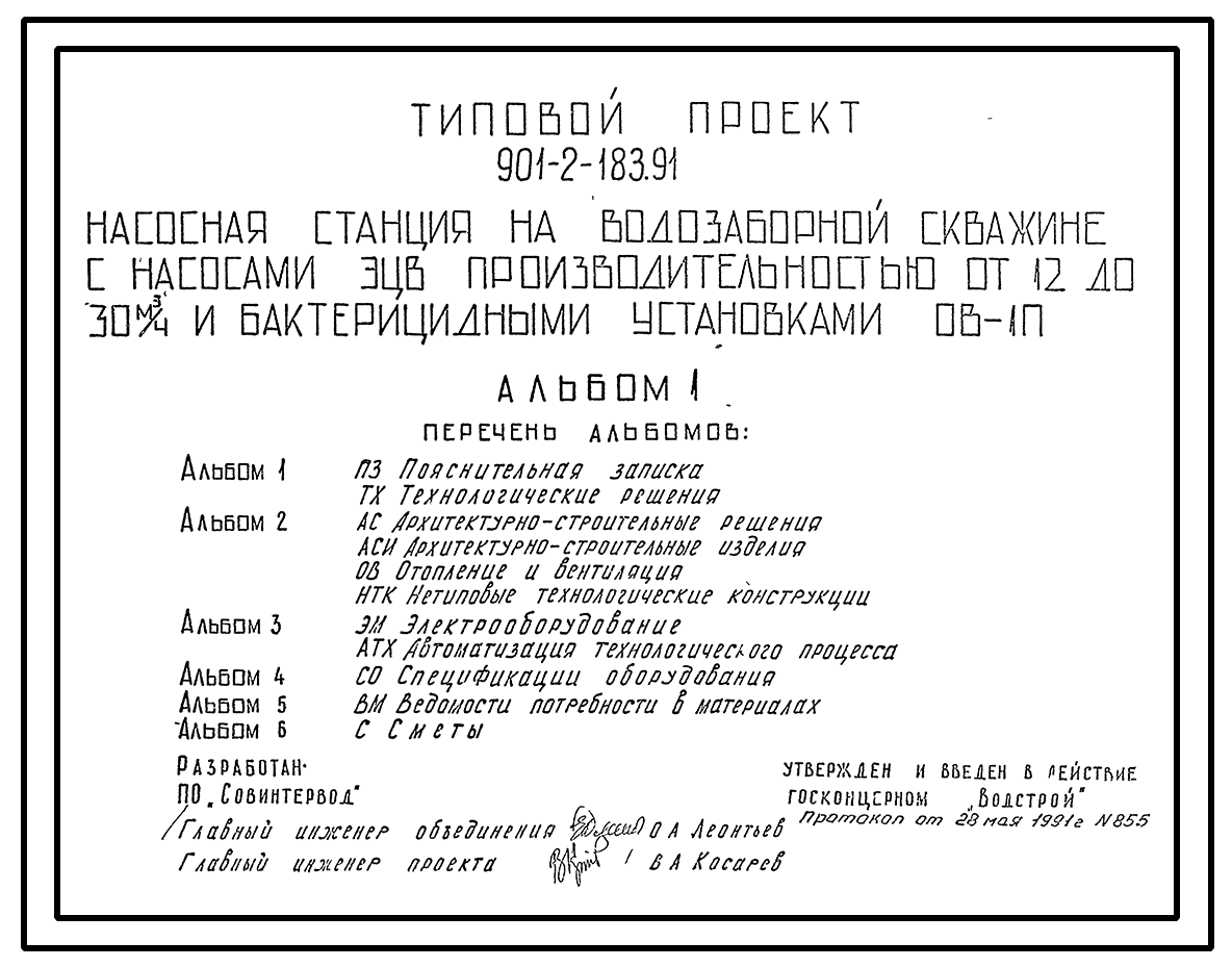 Типовой проект 901-2-183.91 Насосная станция на водозаборной скважине с насосами ЭЦВ производительностью от 12 до 30 м3/ч и бактерицидными установками ОВ-1П