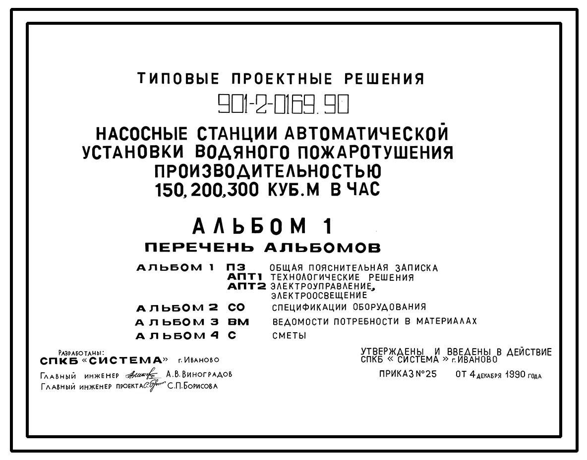 Типовой проект 901-2-0169.90 Насосные станции автоматической установки водяного пожаротушения производительностью 150, 200, 300 м3/ч