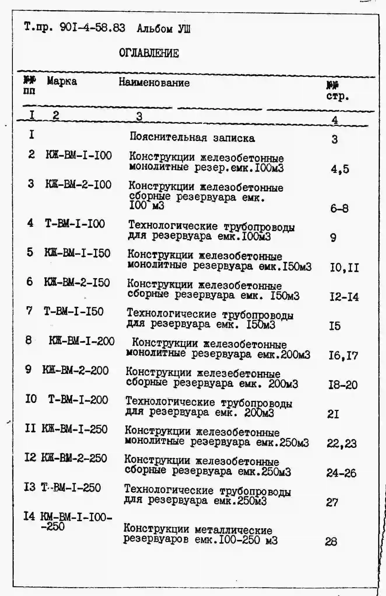 Типовой проект 901-4-58.83 Резервуары для воды прямоугольные железобетонные сборные емкостью от 100 до 250 м3 (с применением изделий промзданий)