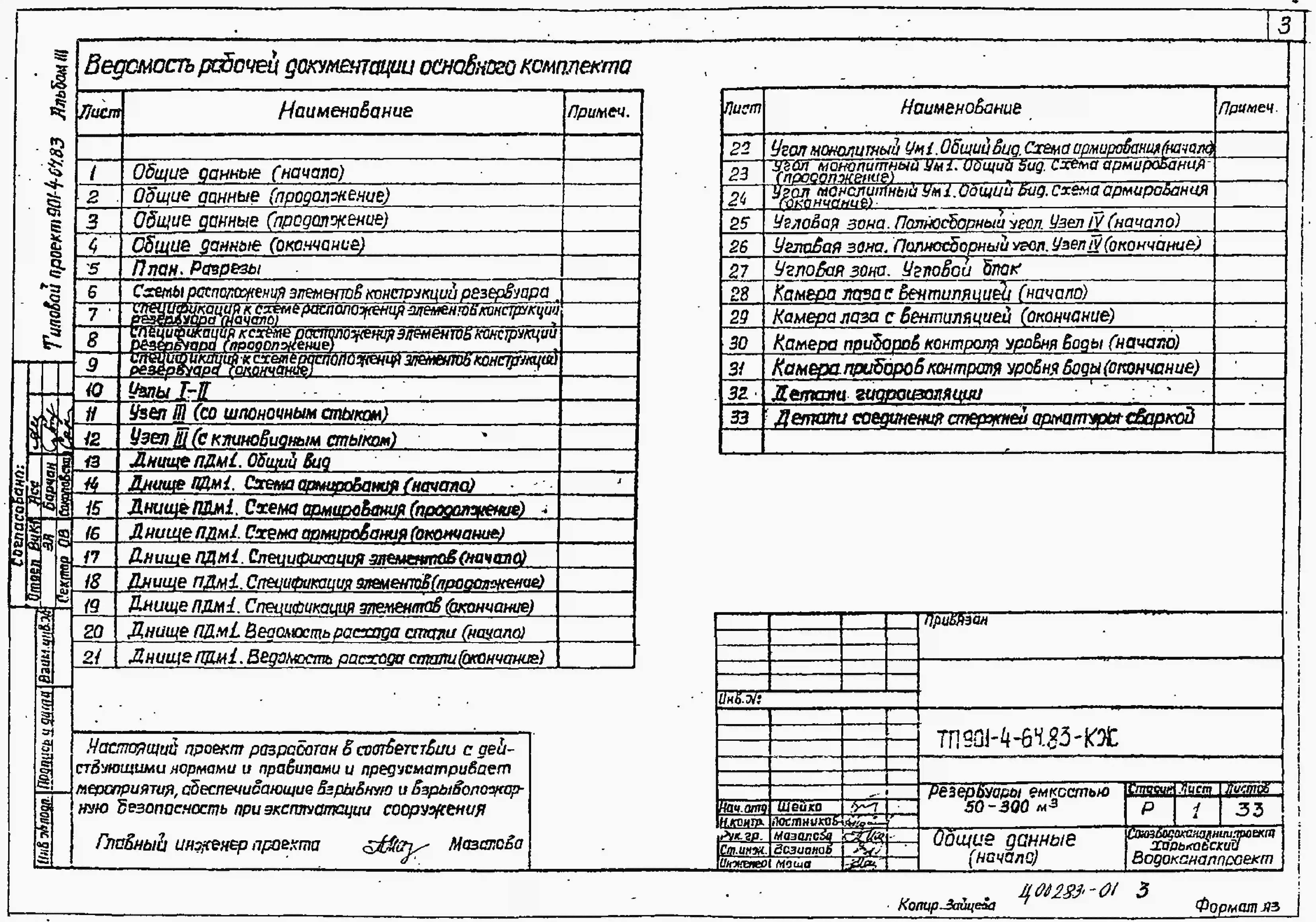 Типовой проект 901-4-64.83 Резервуары для воды прямоугольные железобетонные сборные емкостью от 50 до 300 м3 (с применением стеновых панелей с опорной пятой)