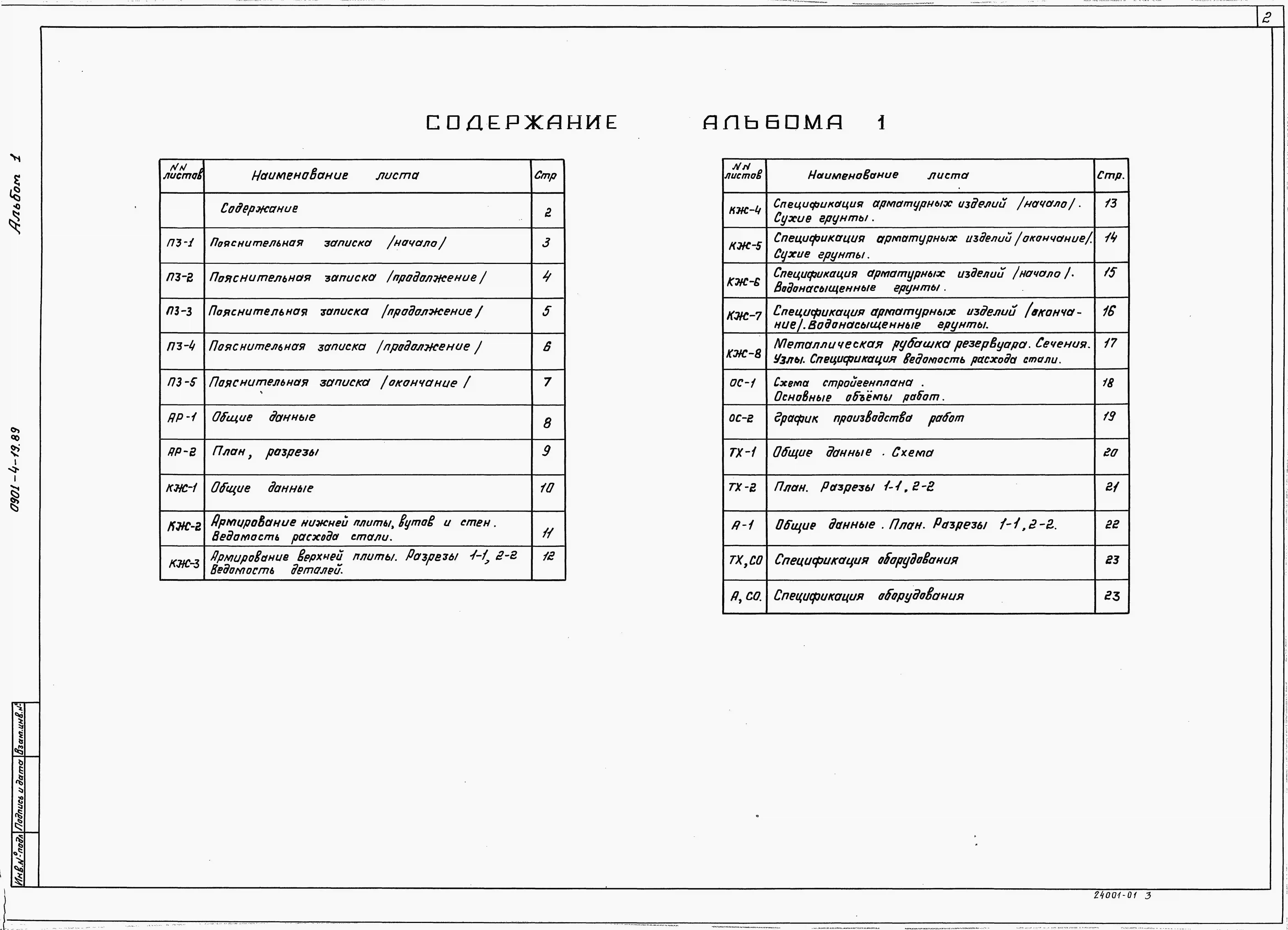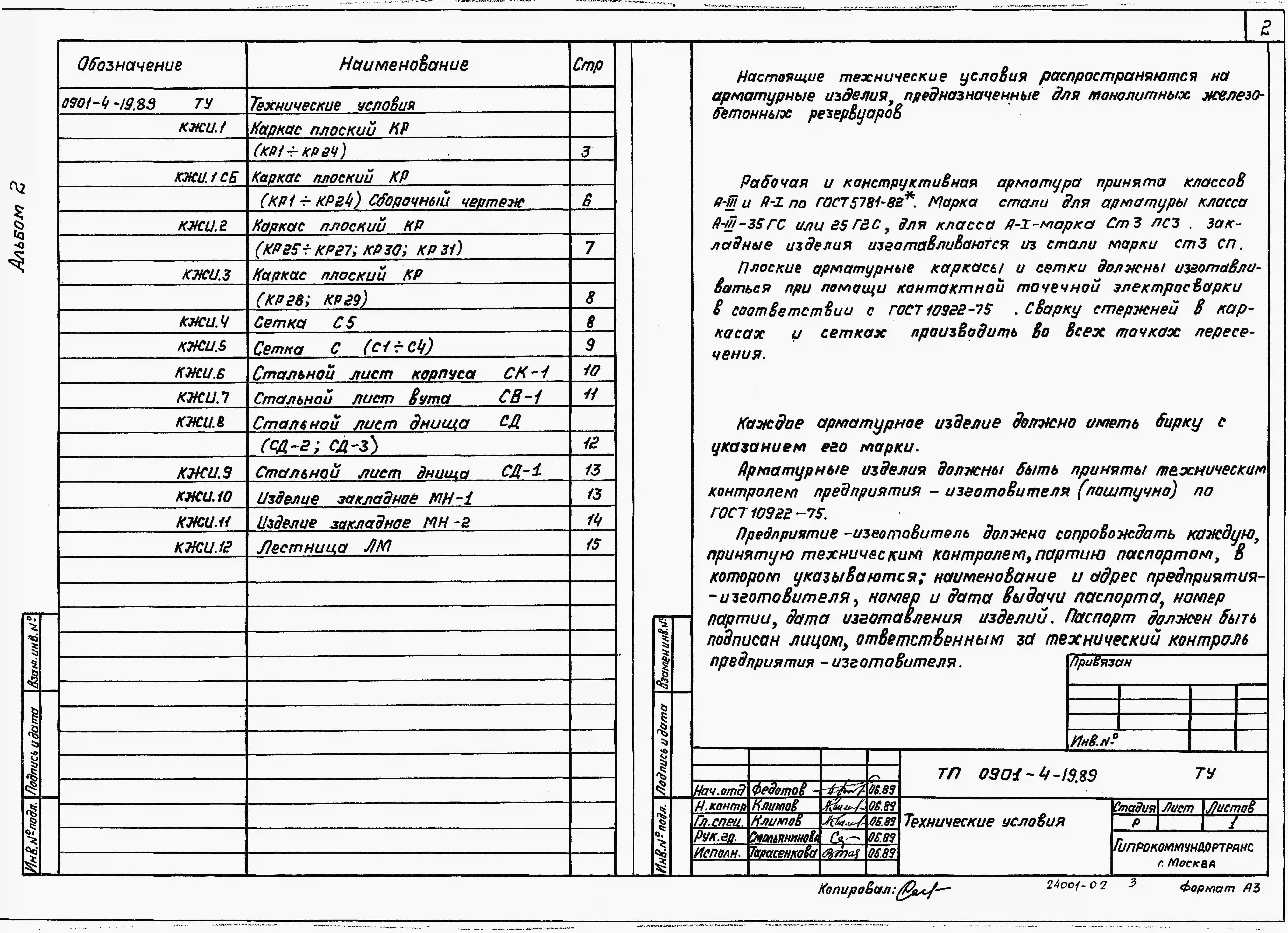 Типовой проект 0901-4-19.89. Заглубленный резервуар технической воды монолитный железобетонный цилиндрической емкостью 100 м3 II, III, IV классов защиты