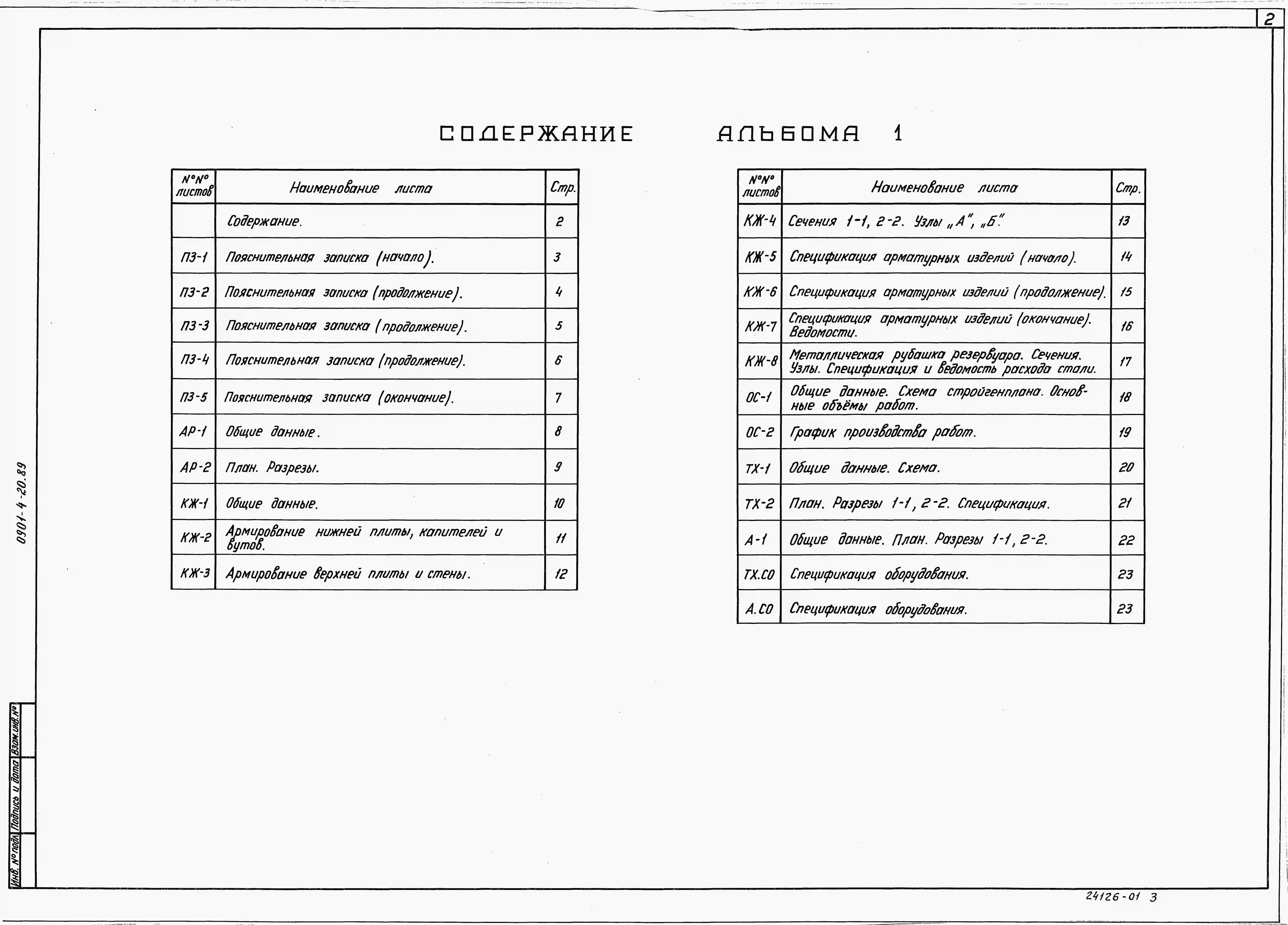 Типовой проект 0901-4-20.89. Заглубленный резервуар технической воды монолитный железобетонный цилиндрической емкостью 200 м3 II, III, IV классов защиты