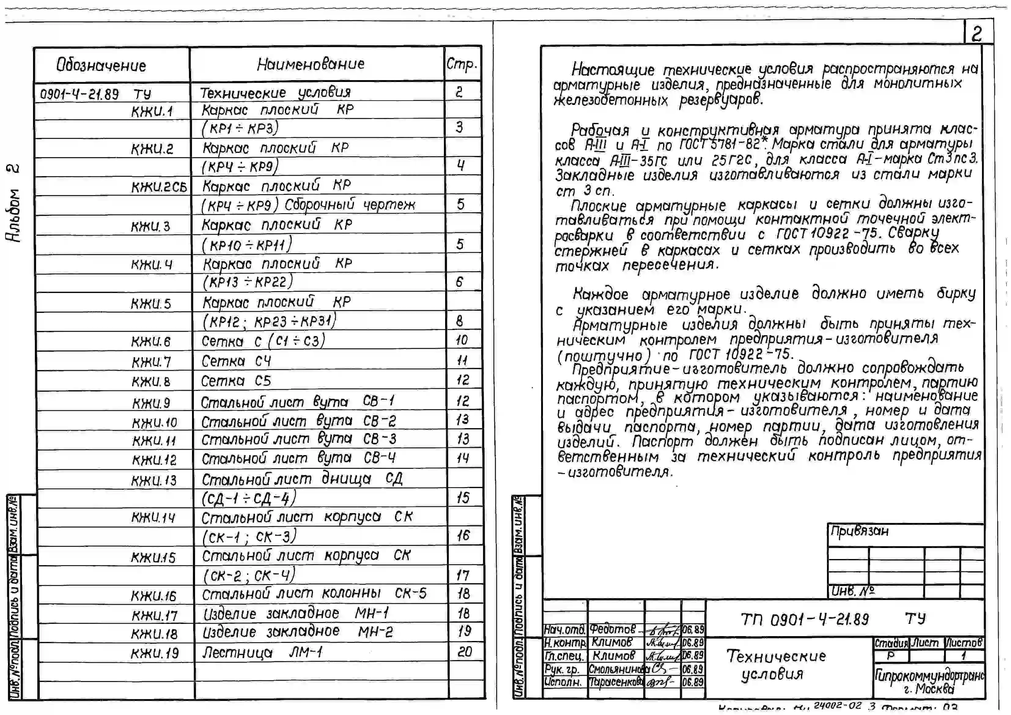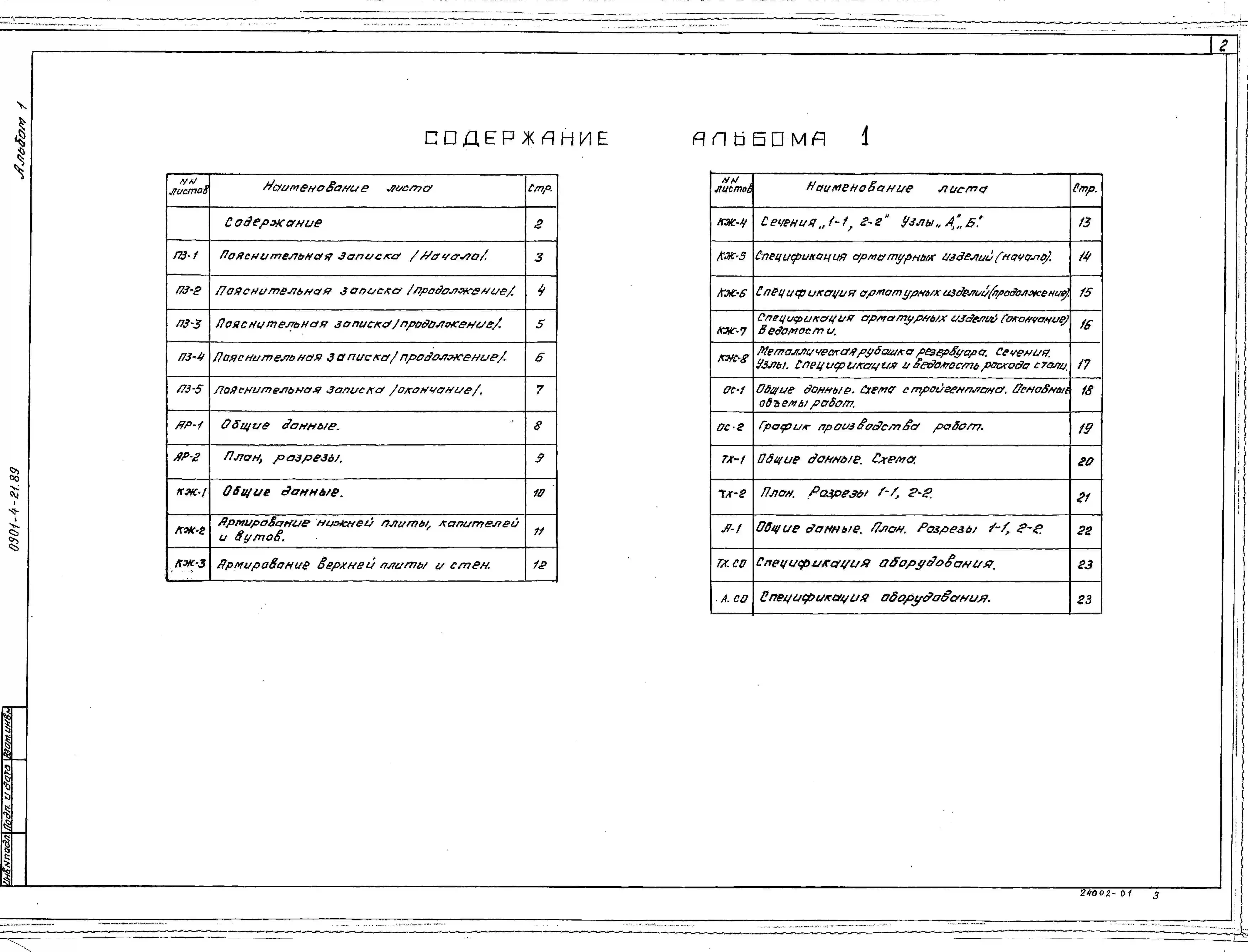 Типовой проект 0901-4-21.89. Заглубленный резервуар технической воды монолитный железобетонный цилиндрической емкостью 400 м3 II, III, IV классов защиты