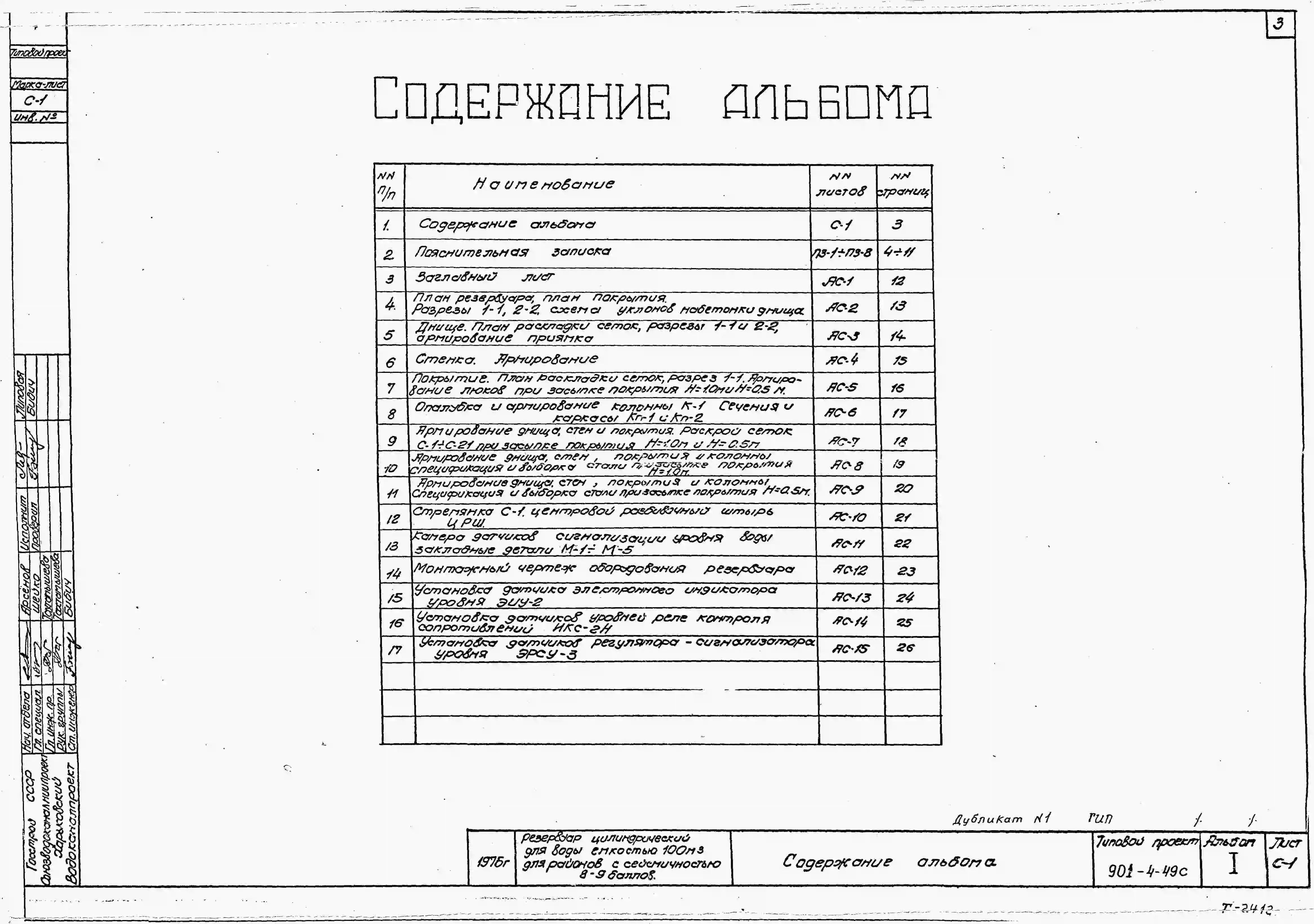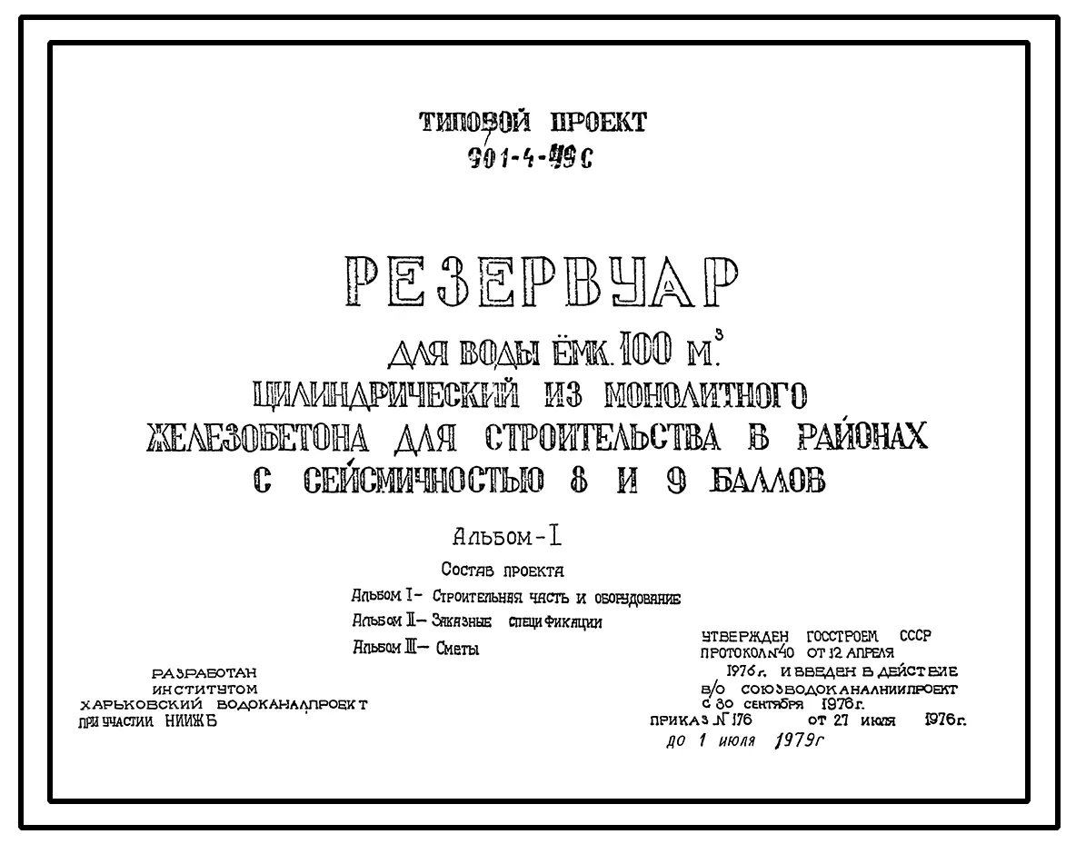 Типовой проект 901-4-49с Резервуар для воды емкостью 100 м3 цилиндрический из монолитного железобетона. Сейсмичность 8, 9 баллов.