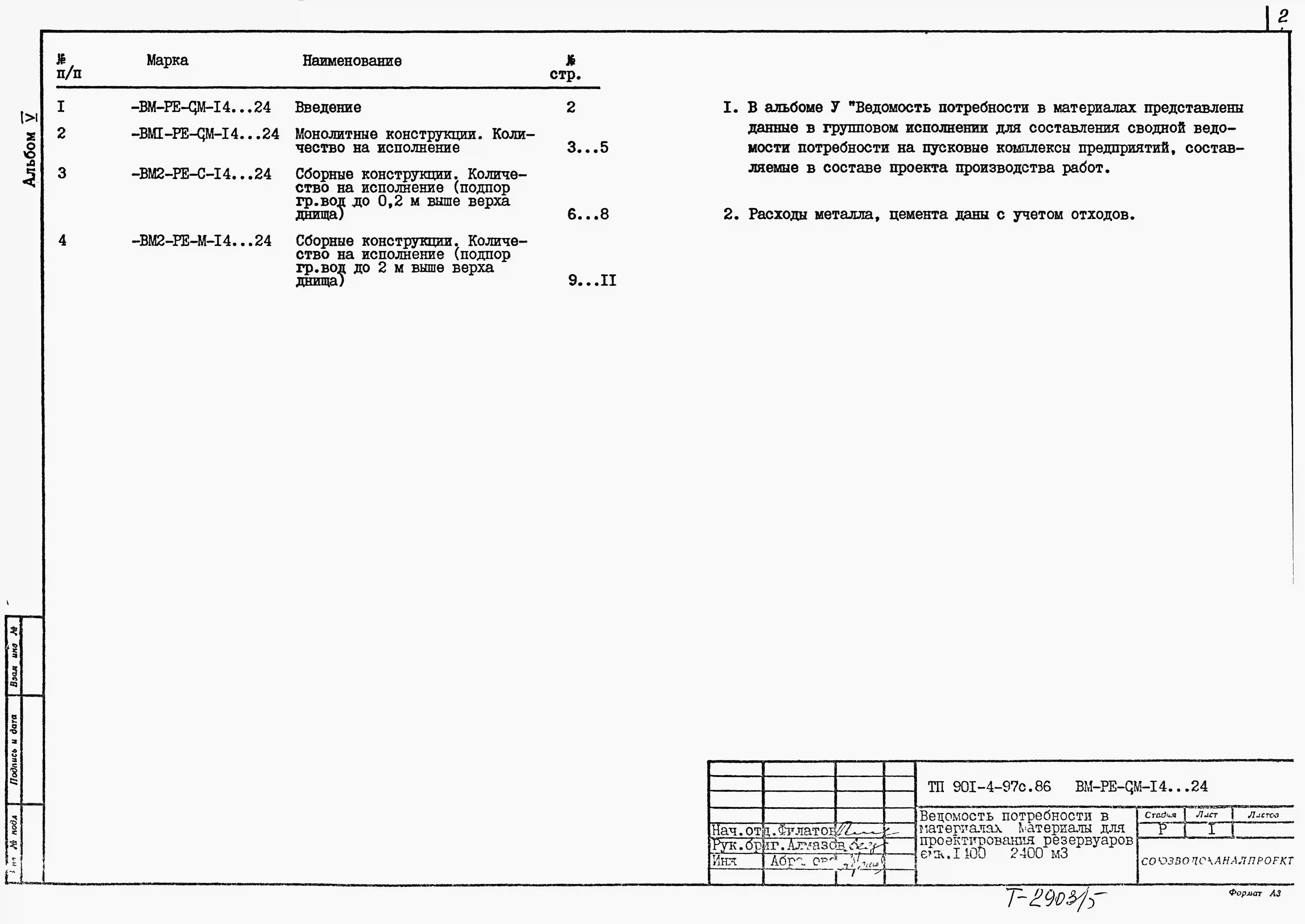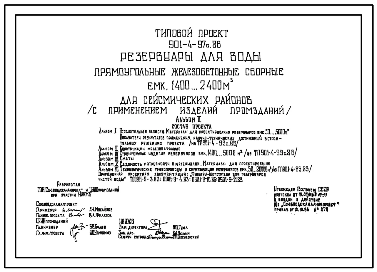 Типовой проект 901-4-97с.86 Резервуар для воды прямоугольный железобетонный сборный емкостью 1400...2400 м3 ( с применением изделий промзданий) Сейсмичность 8,9 баллов.