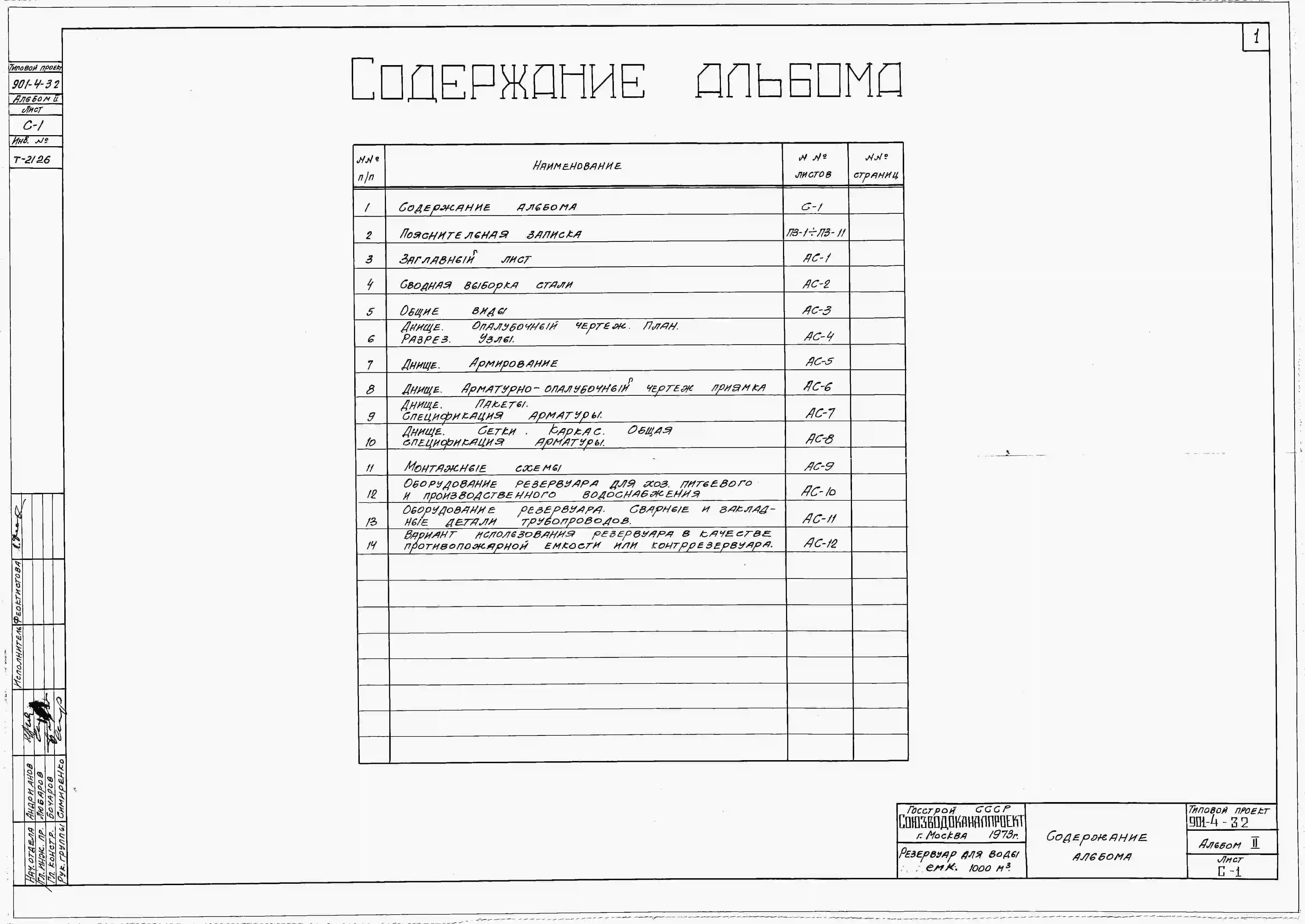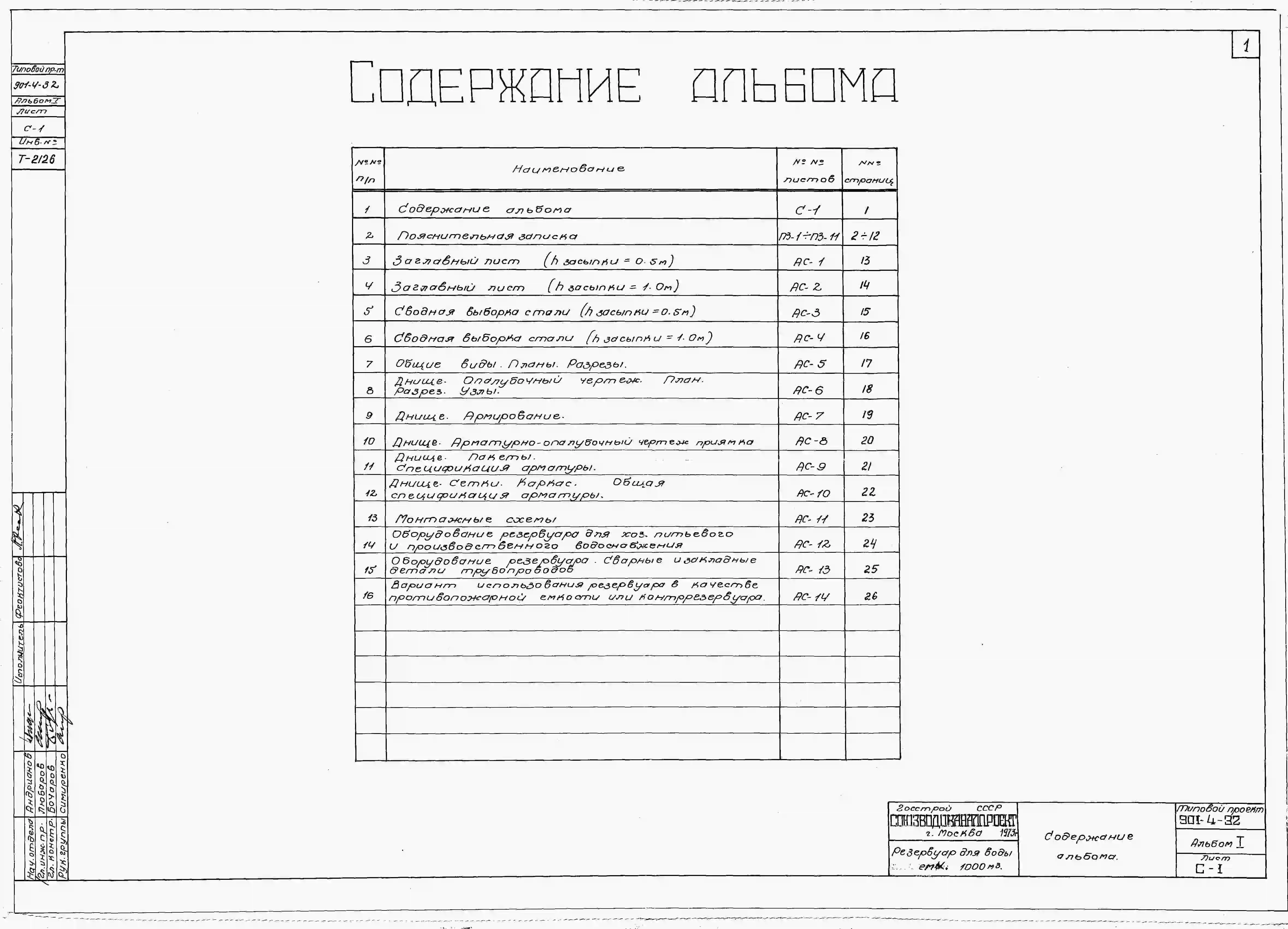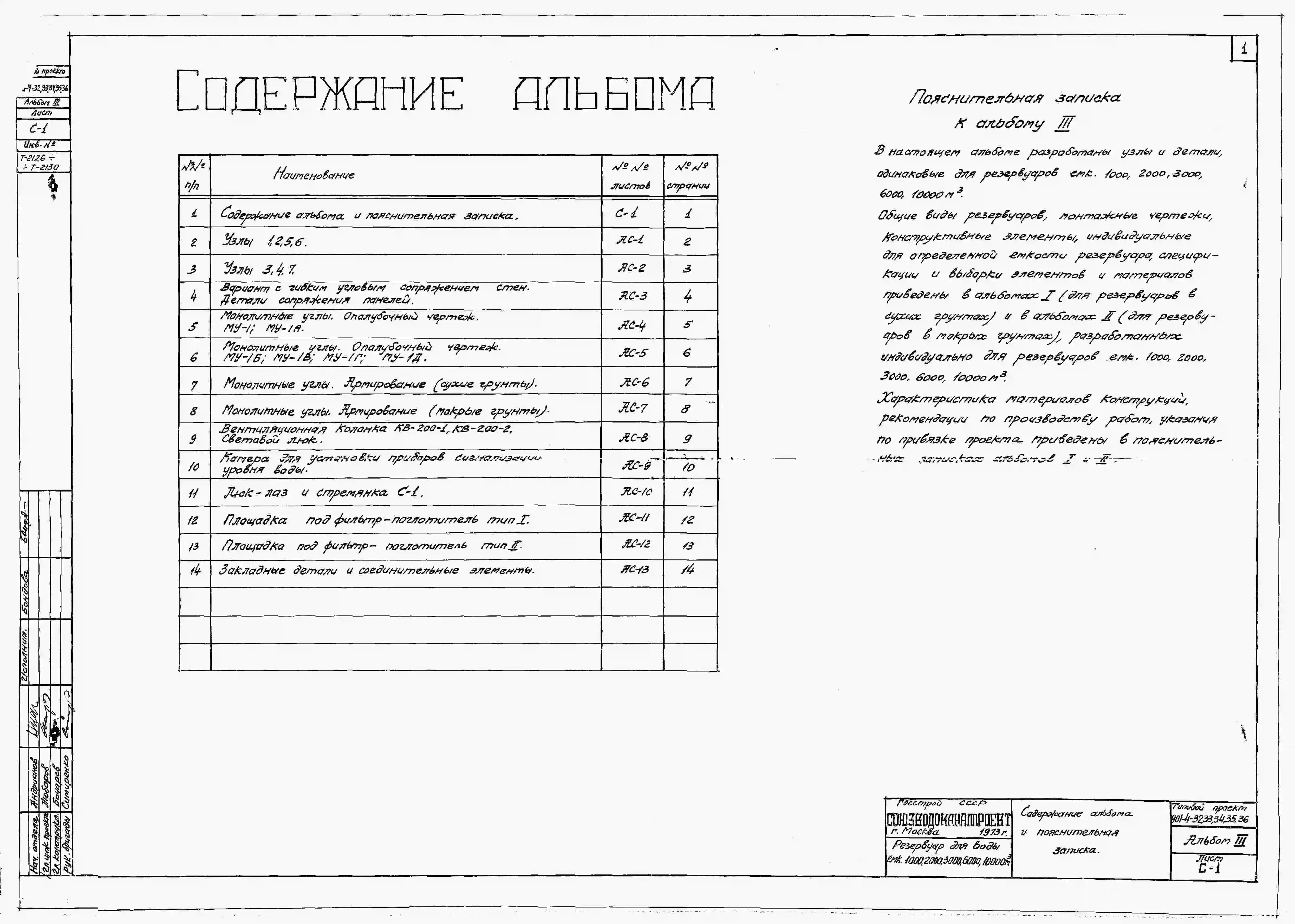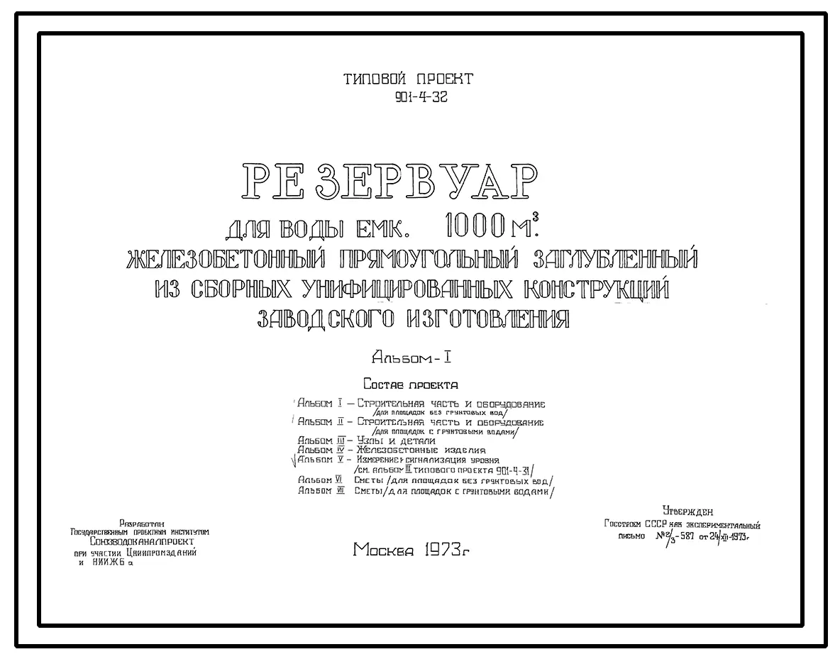 Типовой проект 901-4-32 Резервуар для воды емкостью 1000 м.куб. железобетонный прямоугольный заглубленный из сборных унифицированных конструкций заводского изготовления