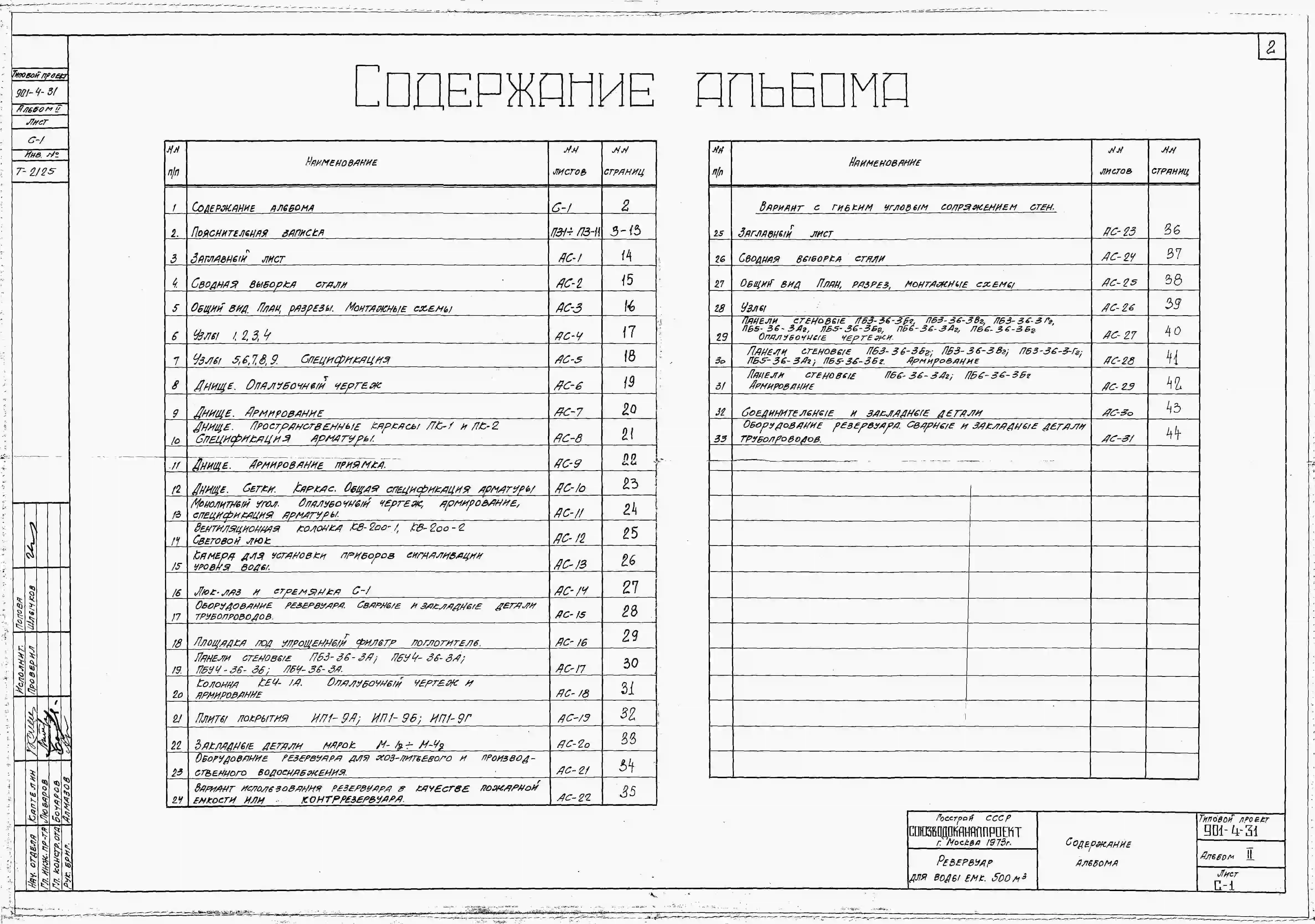 Типовой проект 901-4-31 Резервуар для воды емкостью 500 м.куб. железобетонный прямоугольный заглубленный из сборных железобетонных конструкций