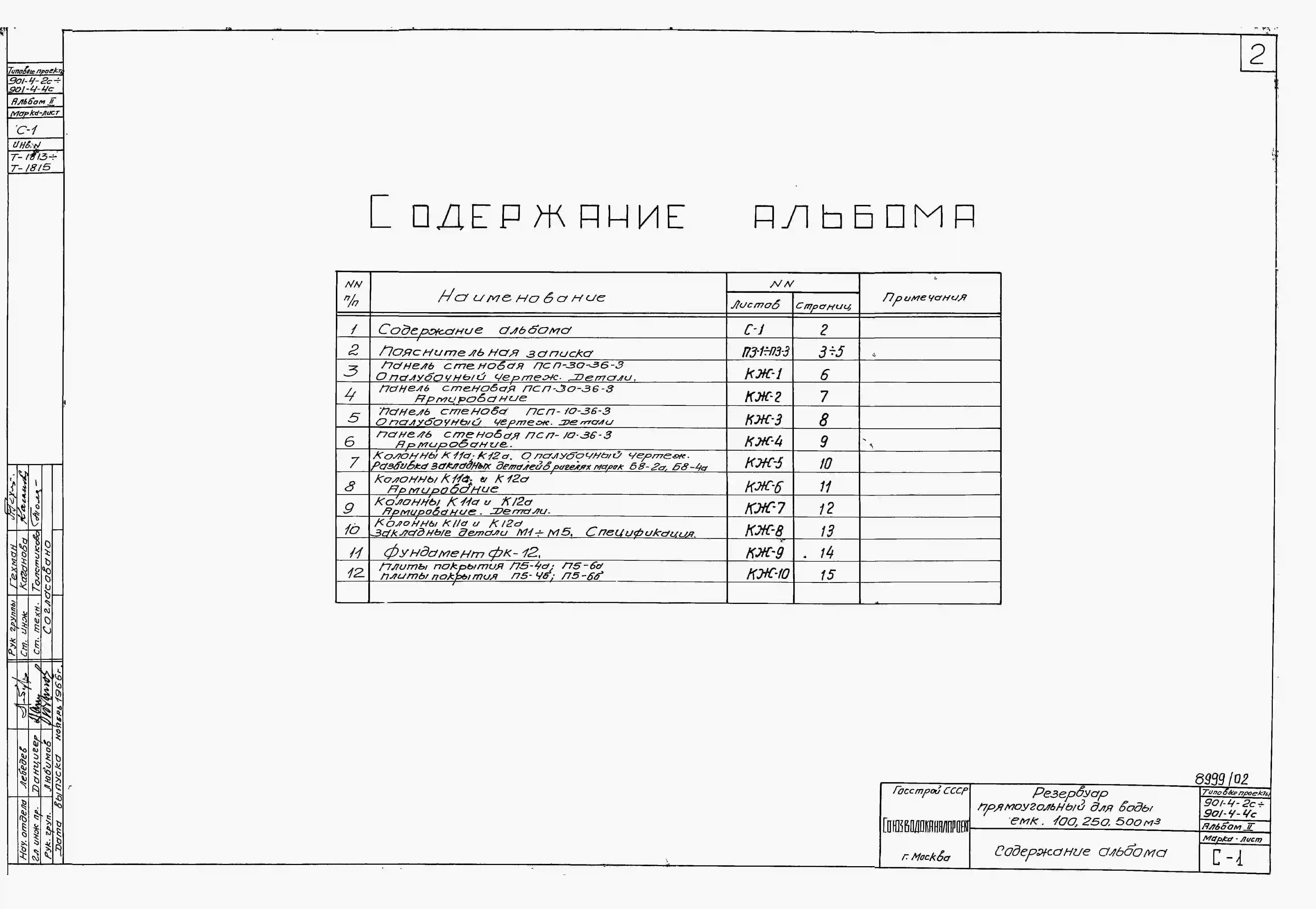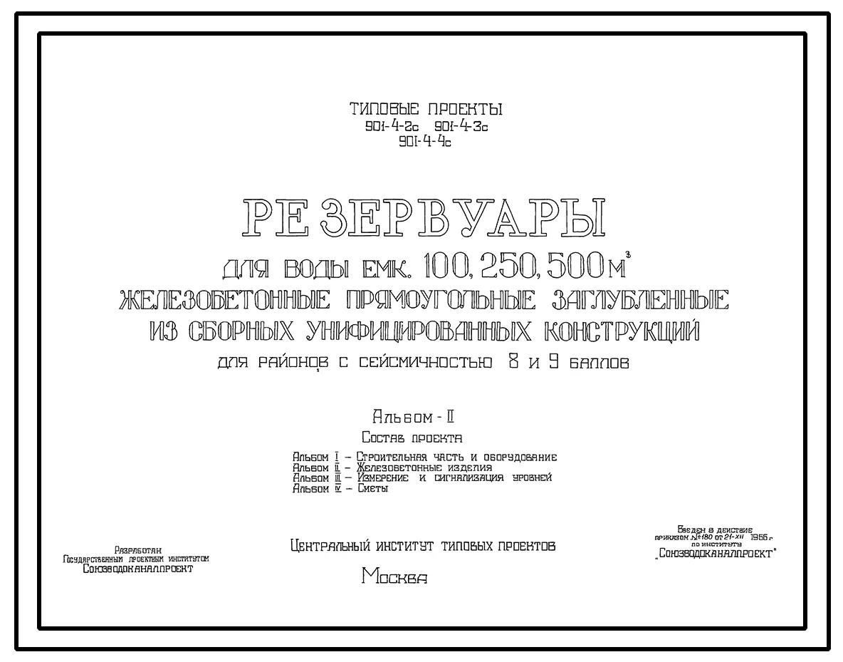 Типовой проект 901-4-4с Резервуар для воды емкостью 500 м.куб железобетонный прямоугольный заглубленный из сборных унифицированных конструкций для районов с сейсмичностью 8 и 9 баллов