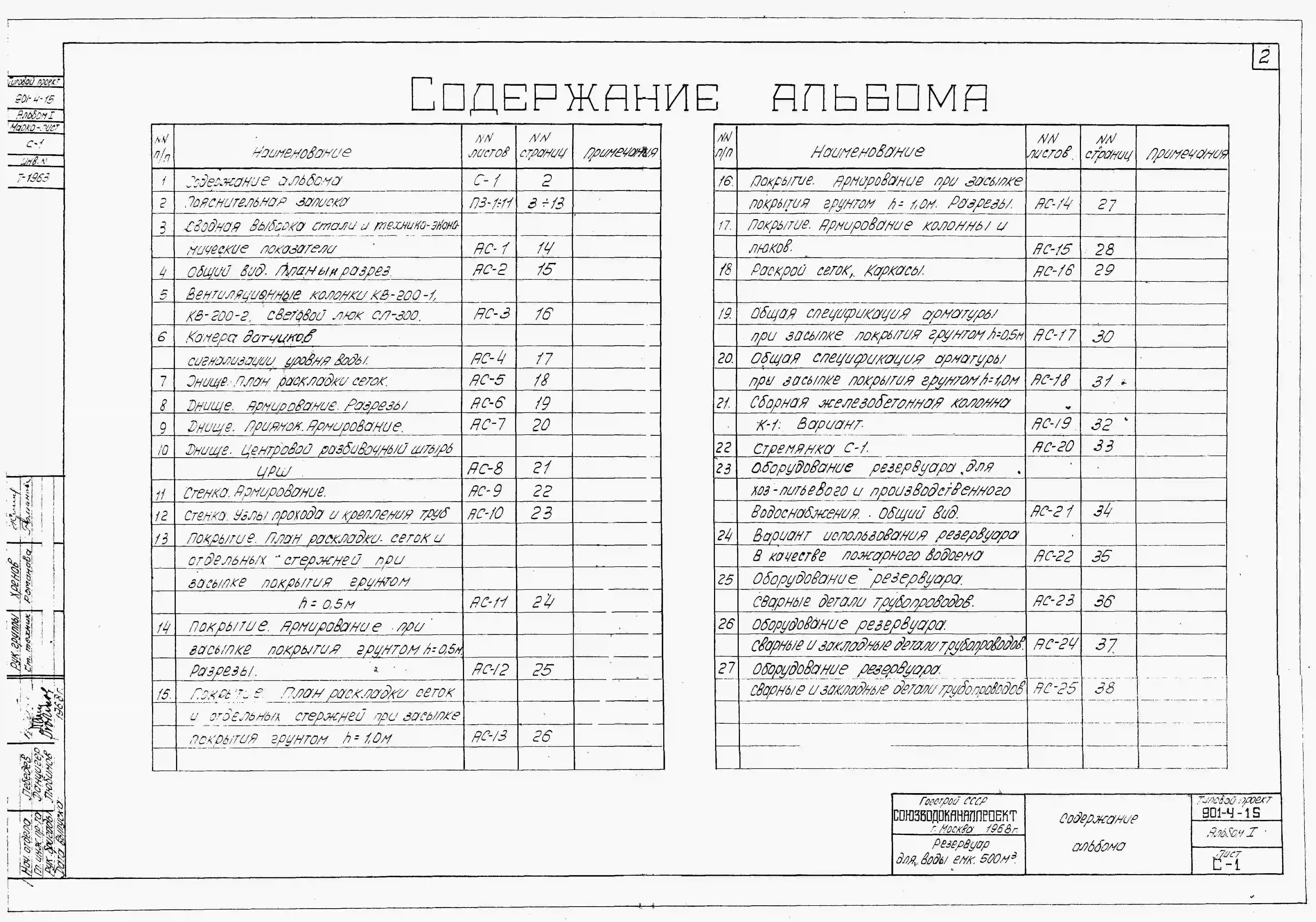 Типовой проект 901-4-15 Резервуар для воды емк. 500 м3 железобетонный монолитный цилиндрический