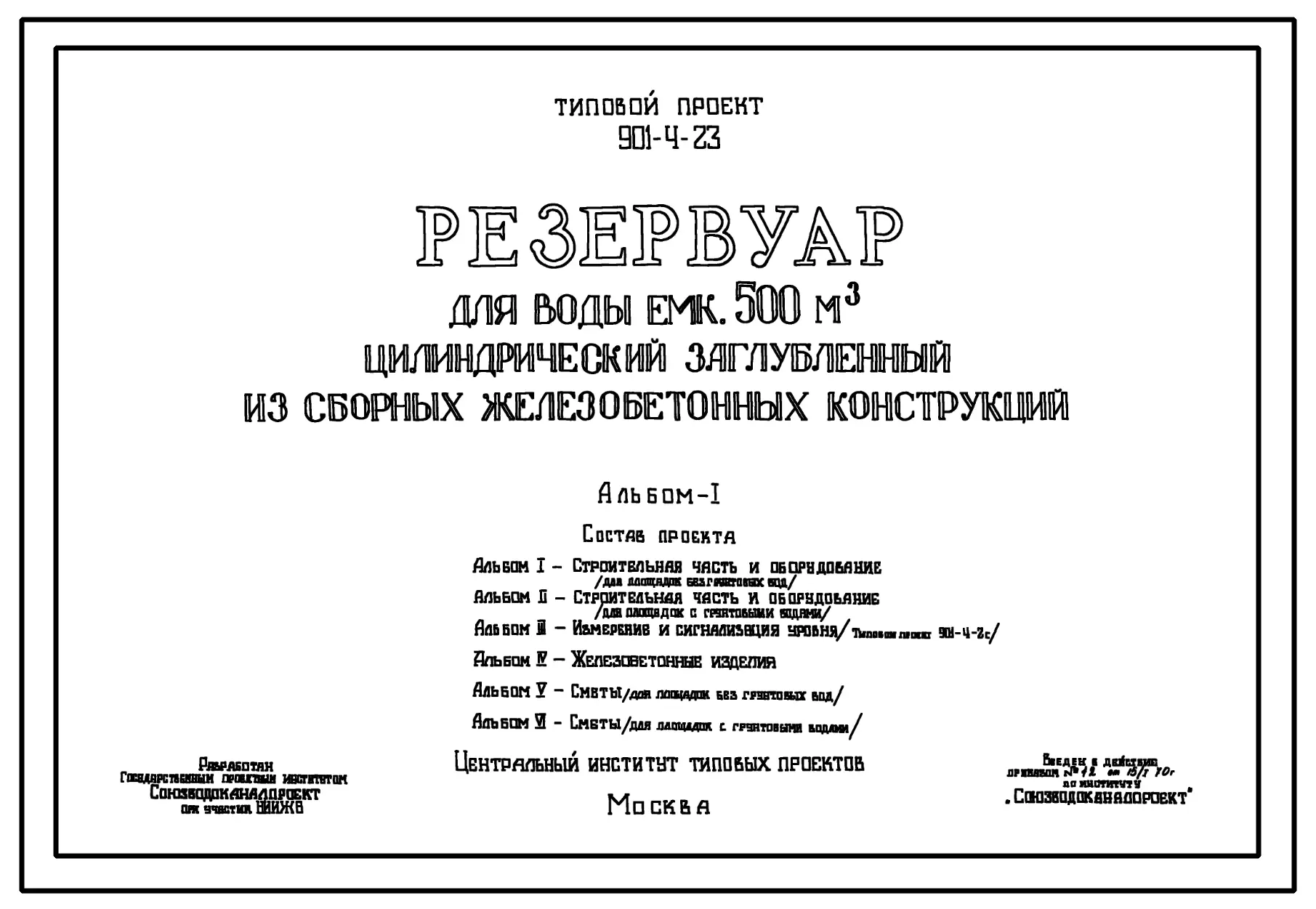 Типовой проект 901-4-23 Резервуар для воды емкостью 500 м.куб. цилиндрический заглубленный из сборных железобетонных конструкций