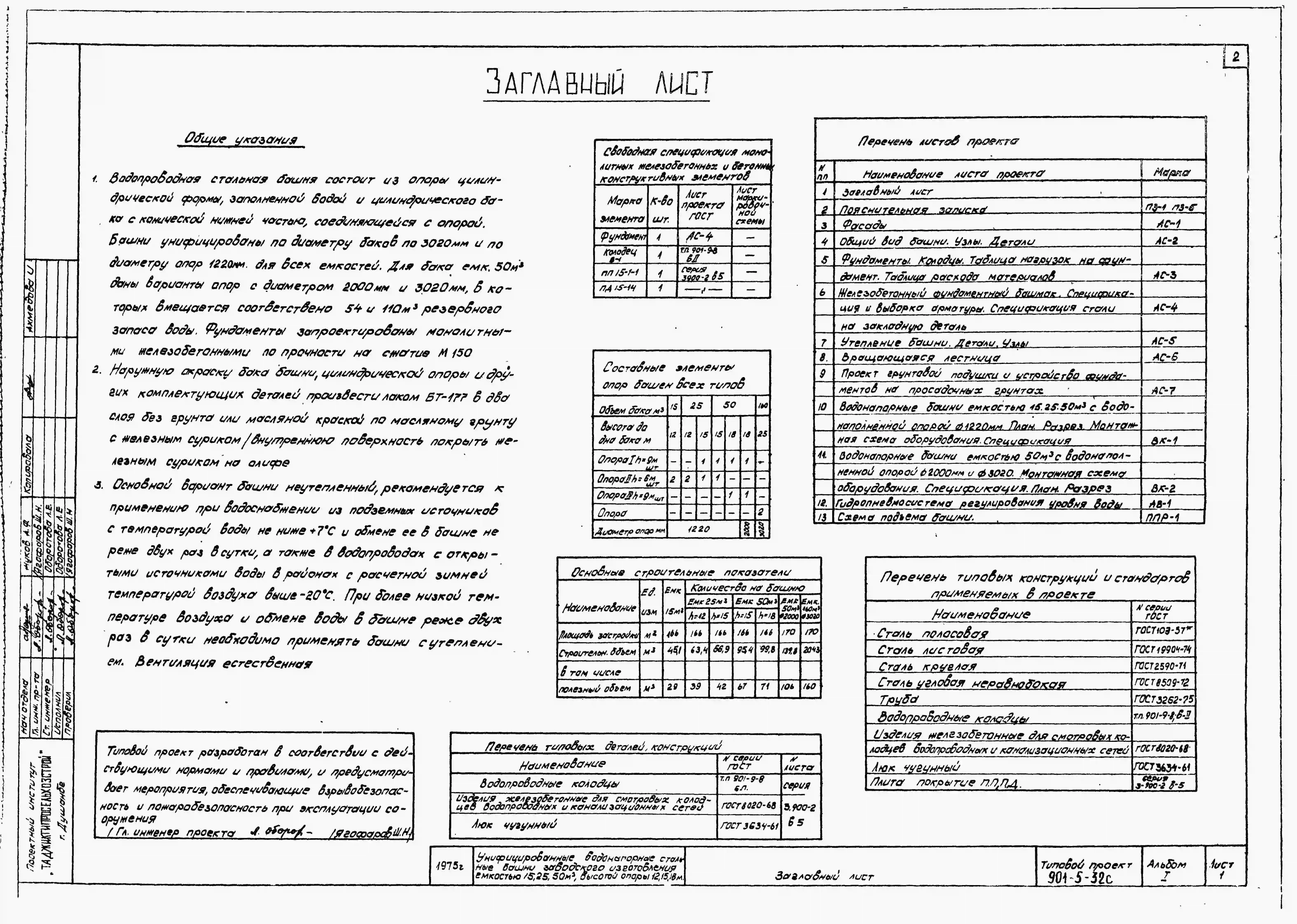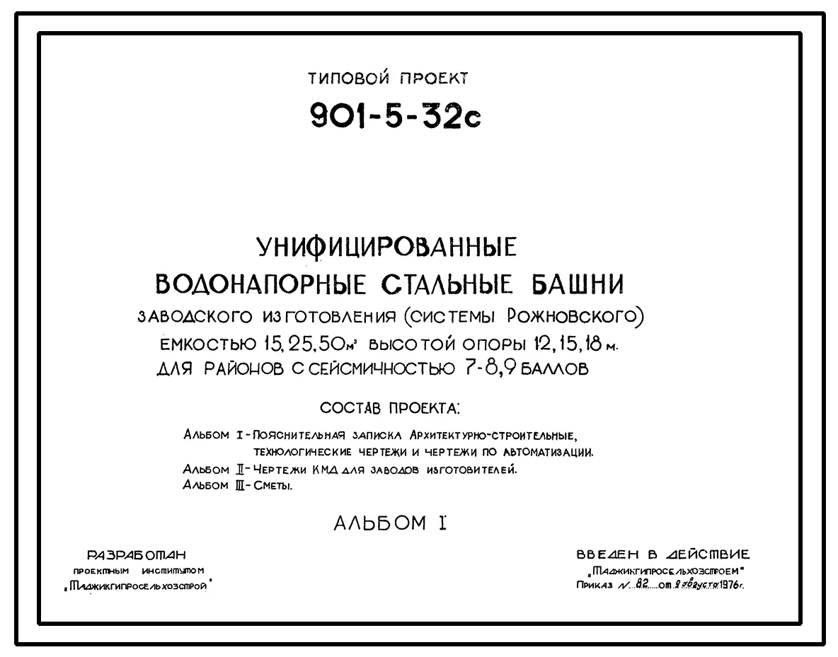 Типовой проект 901-5-32с Унифицированные водонапорные стальные башни заводского изготовления (системы Рожновского) вместимостью 15, 25, 50 м3 с опорам