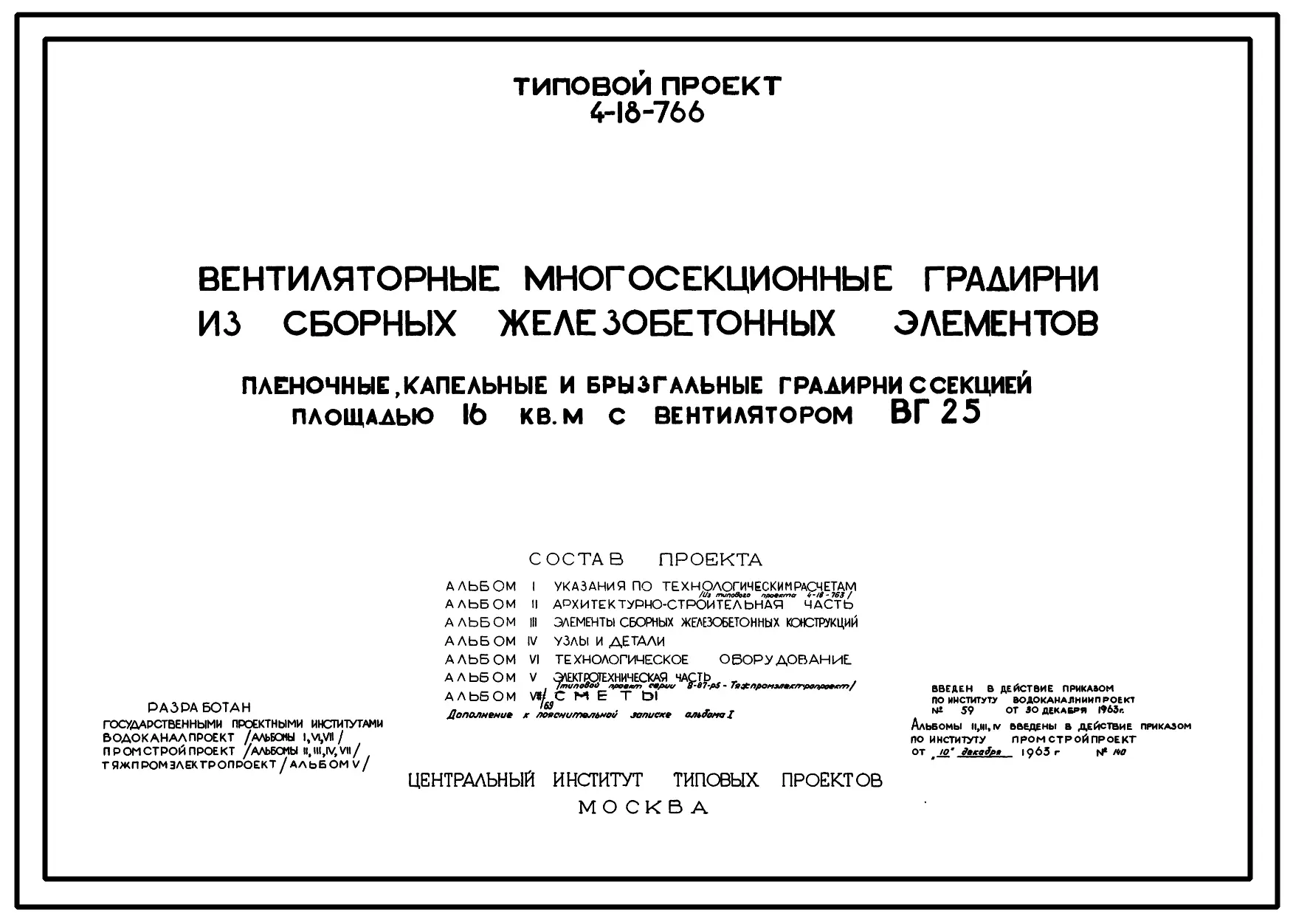 Типовой проект 4-18-766 Вентиляторные многосекционные градирни из сборных железобетонных элементов. Пленочные,капельные и брызгальные градирни с секцией площадью 16 кв.м с вентилятором ВГ 25