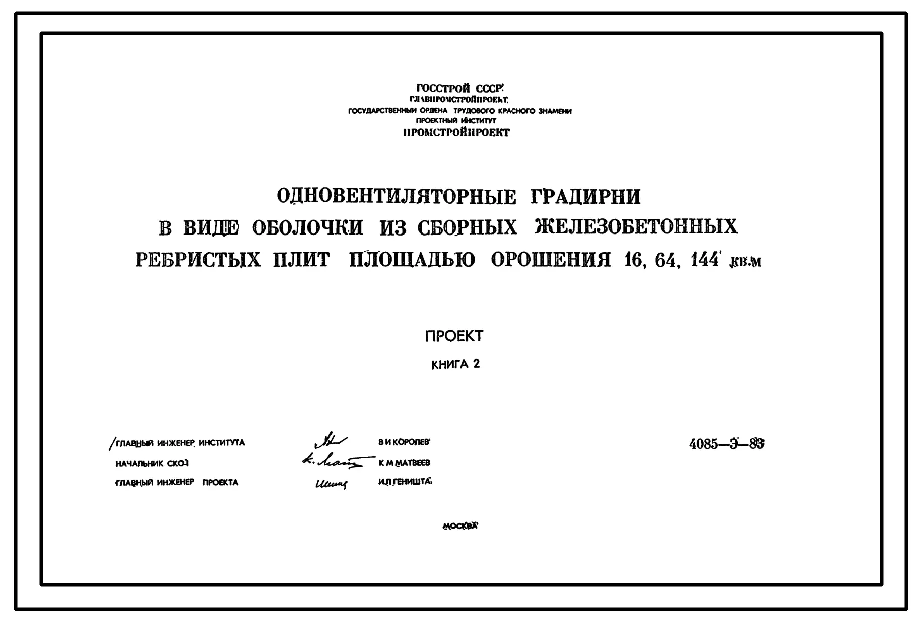 Проект Т-2678 Одновентиляторные градирни в виде оболочки из сборных железобетонных ребристых плит площадью орошения 16,64,144 кв.м (Проект 4085-Э-83)