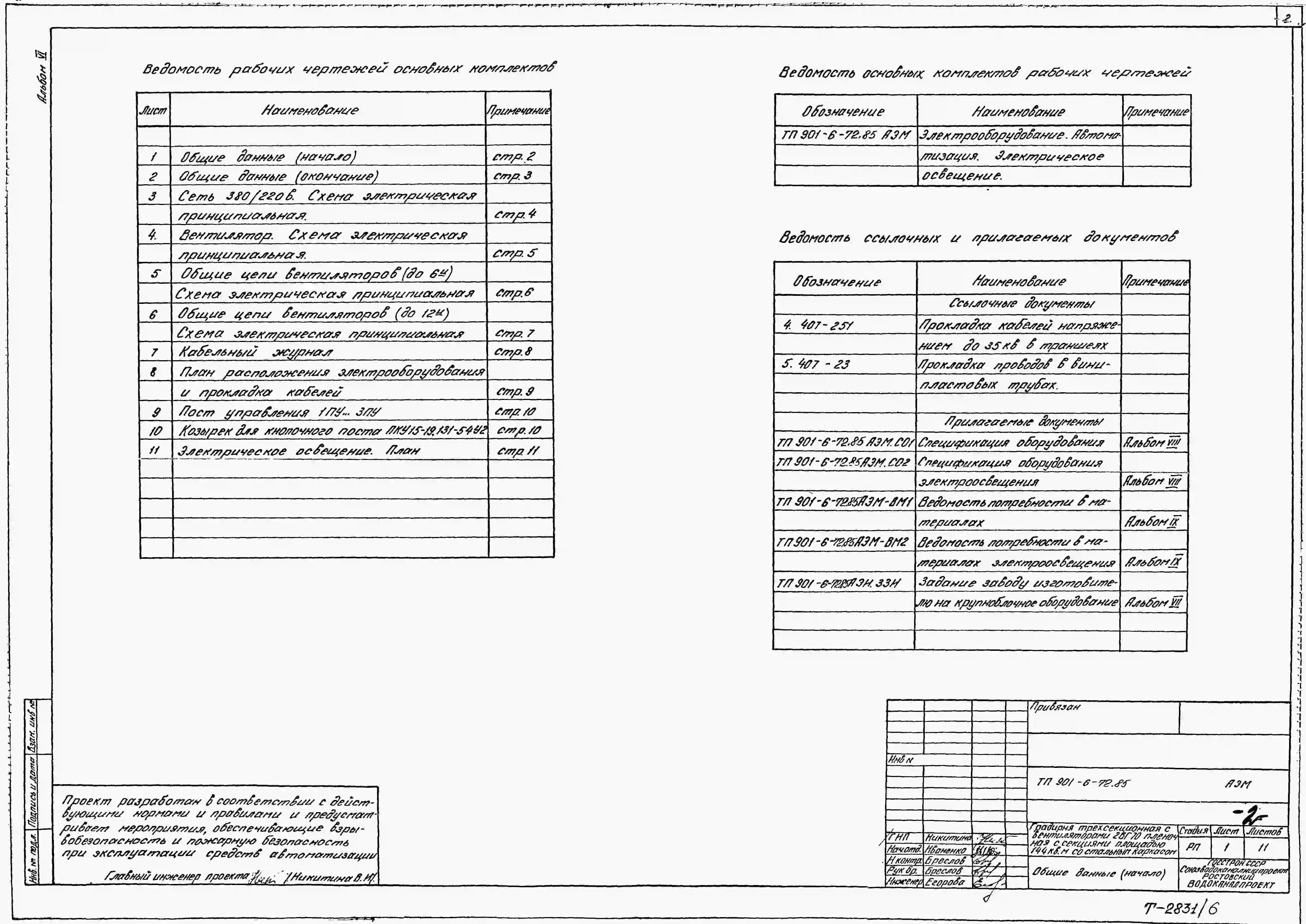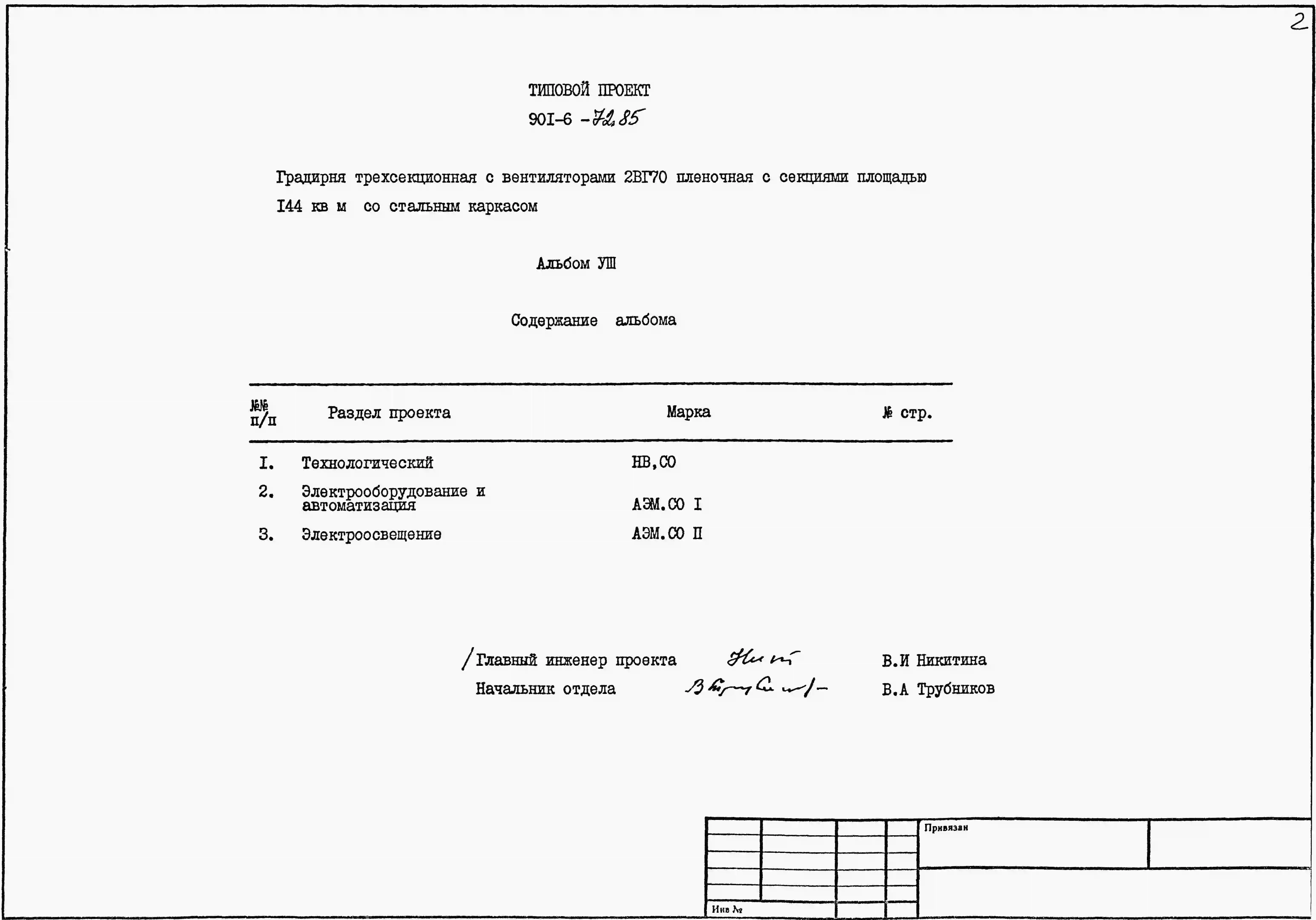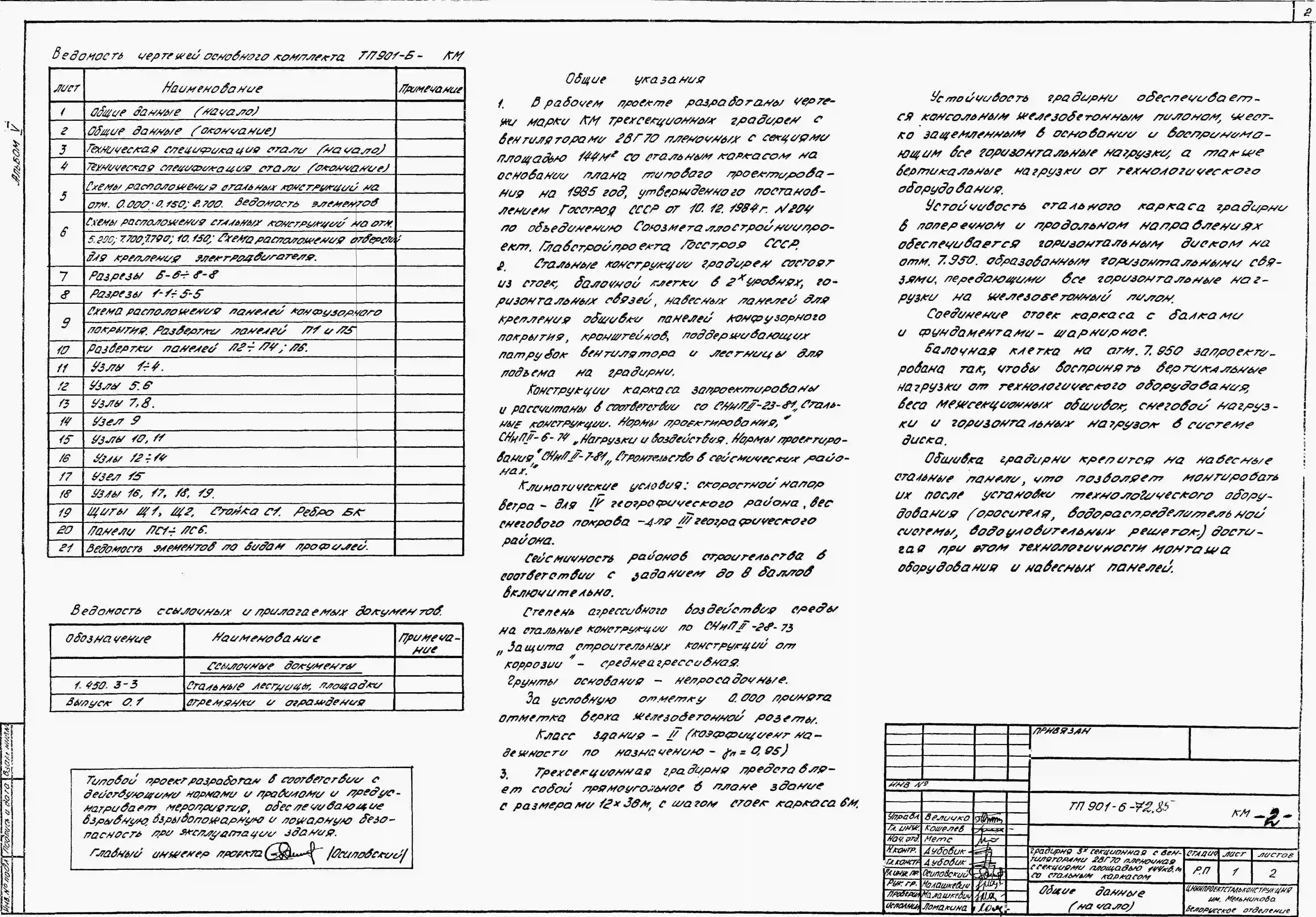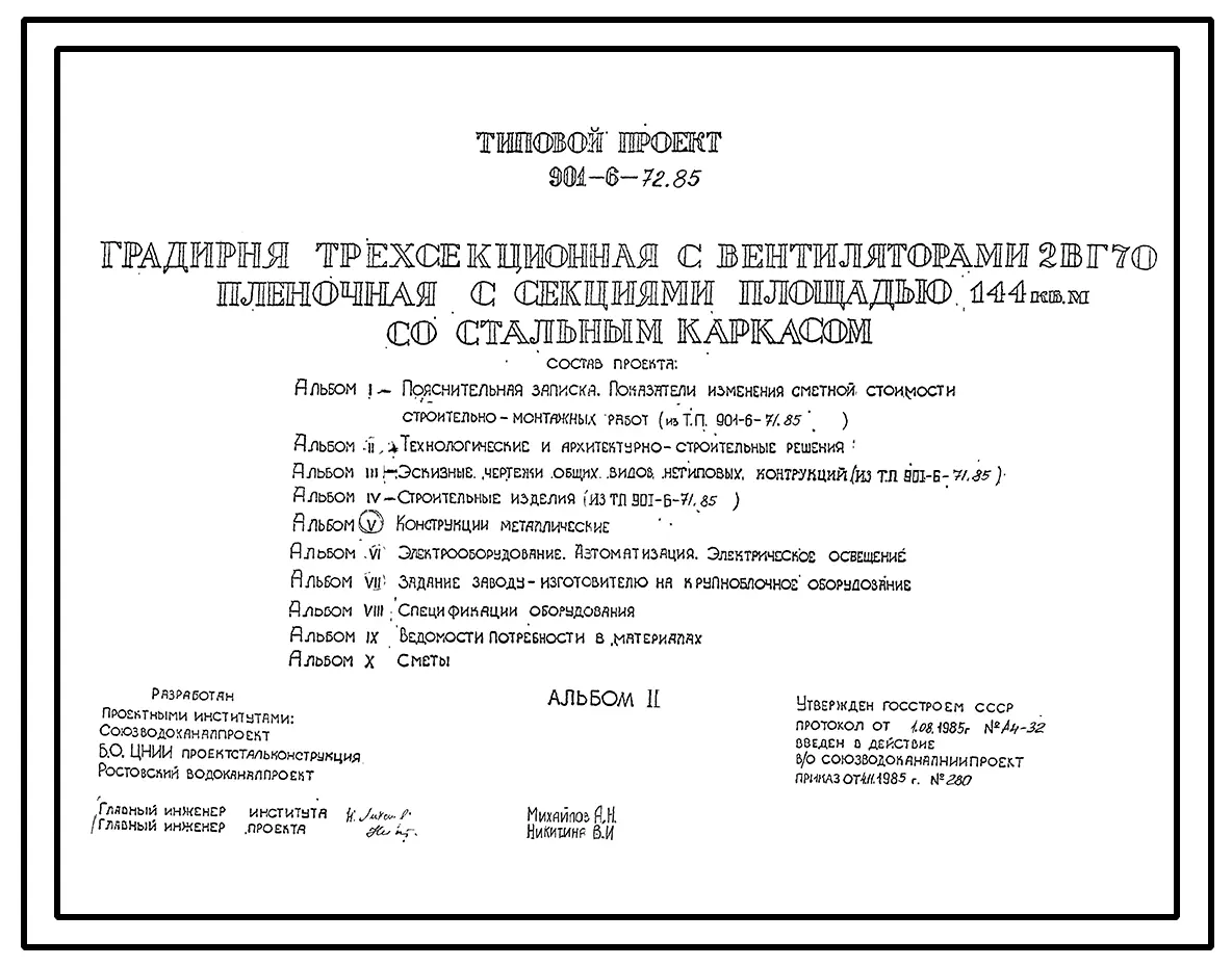 Типовой проект 901-6-72.85 Градирня трехсекционная с вентиляторами 2ВГ70 пленочная с секциями площадью 144 м.кв со стальным каркасом
