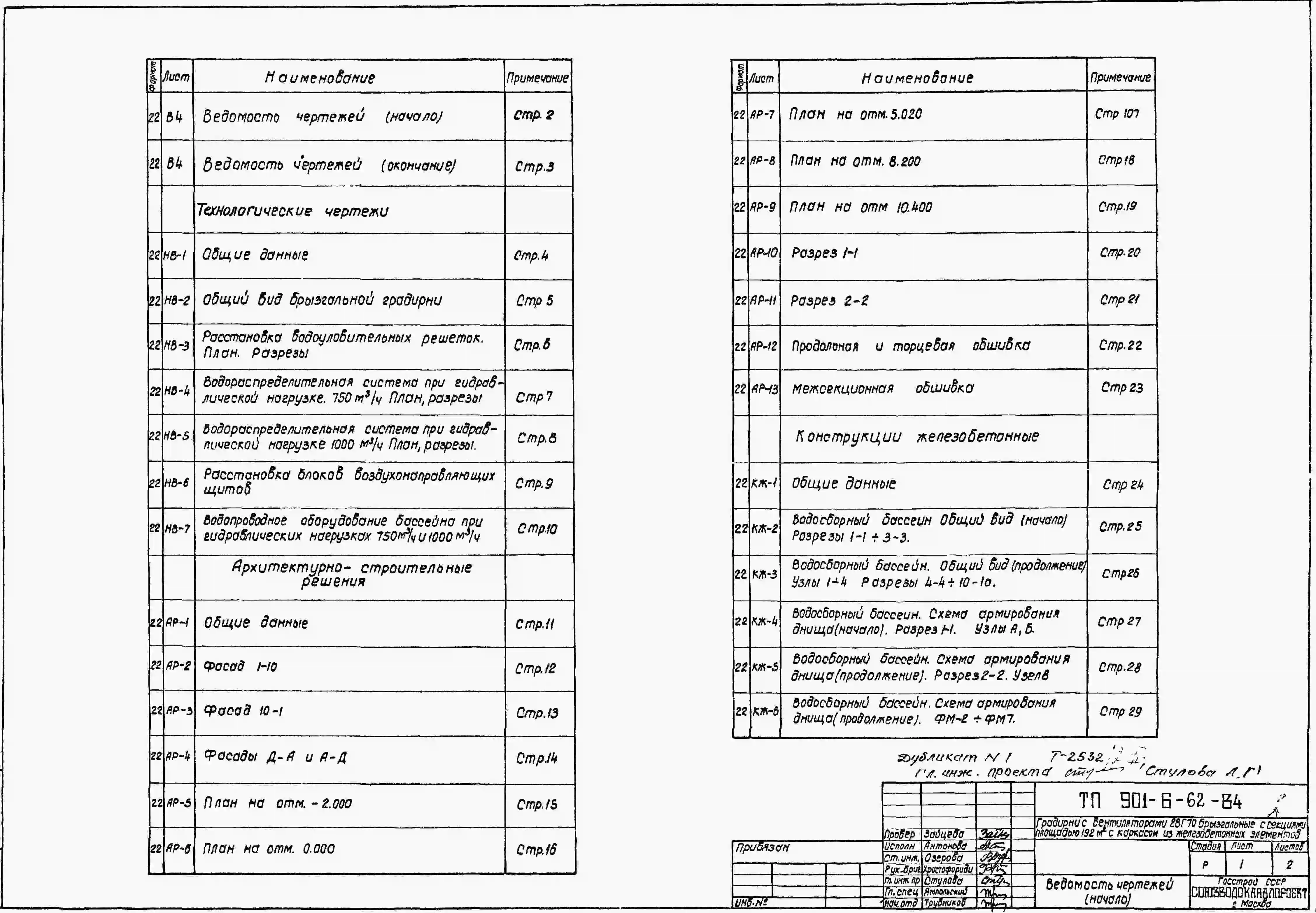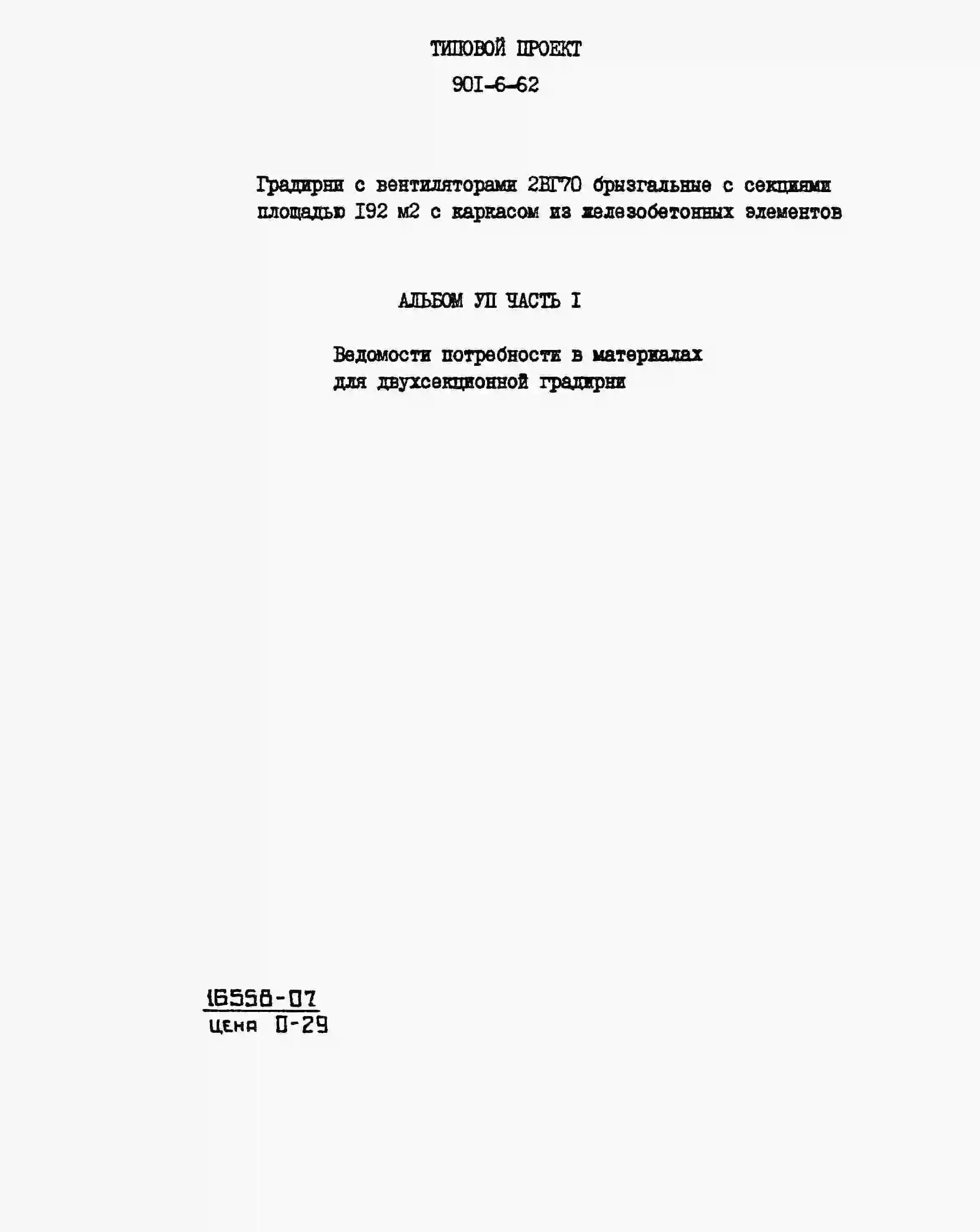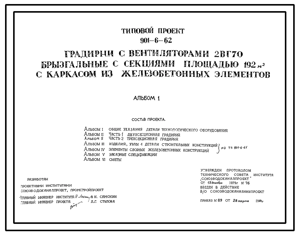 Типовой проект 901-6-62 Градирня с вентиляторами 2ВГ70 брызгальная с секиями площадью 192 кв.м с каркасом из железобетонных элементов