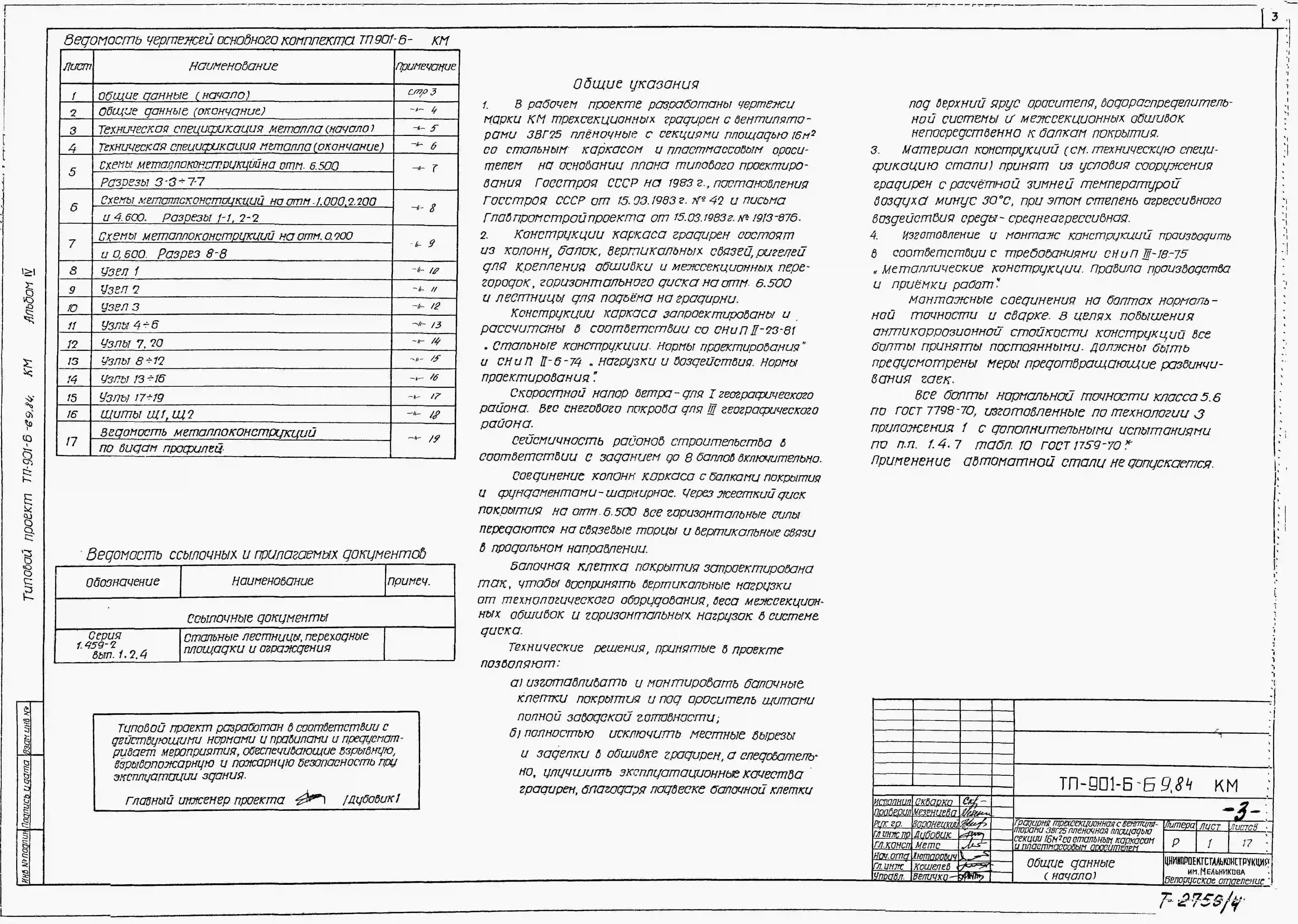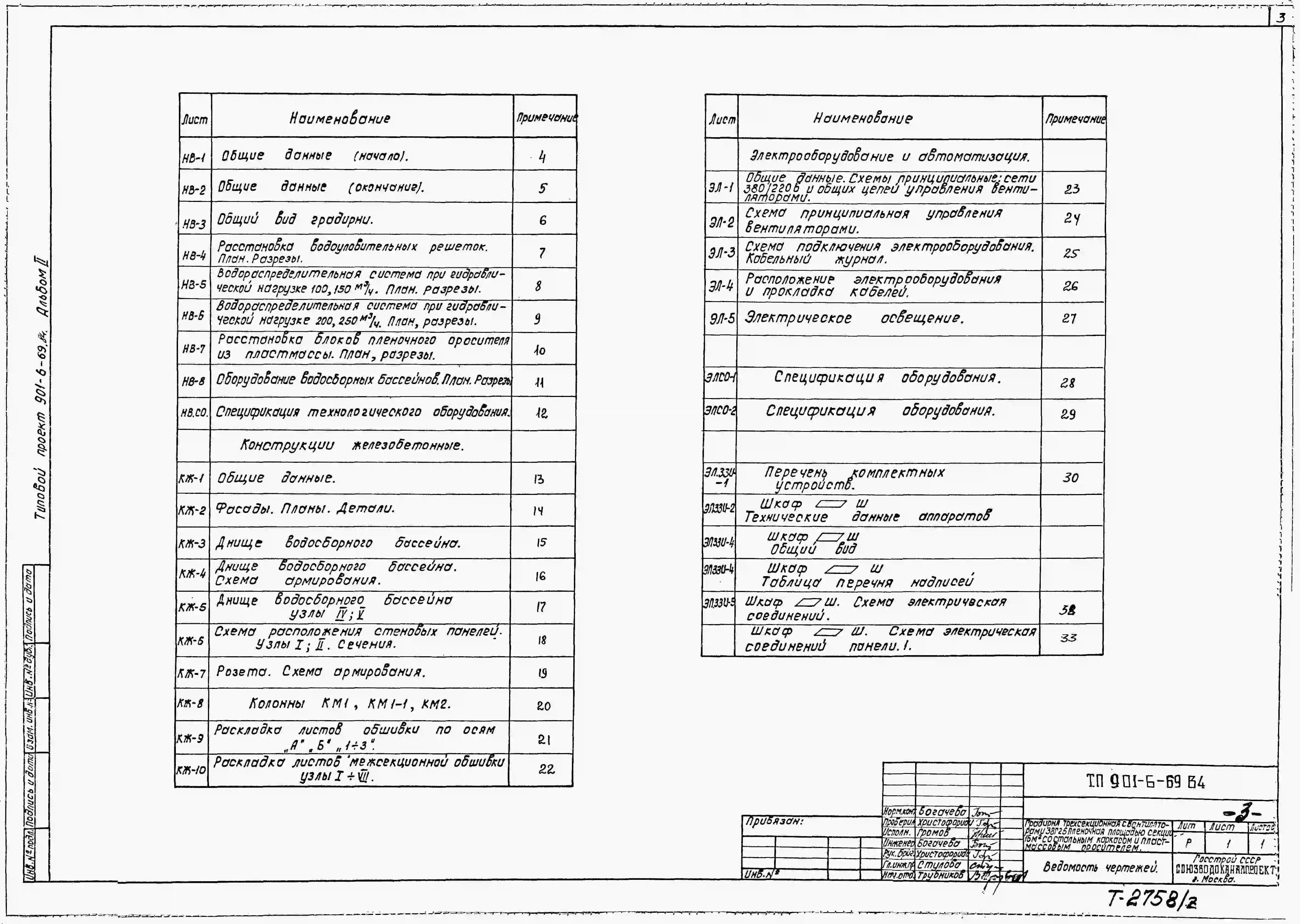 Типовой проект 901-6-69.84 Градирня трехсекционная с вентиляторами 3ВГ25 пленочная с секиями площадью 16 кв.м со стальным каркасом и пластмассовым оросителем