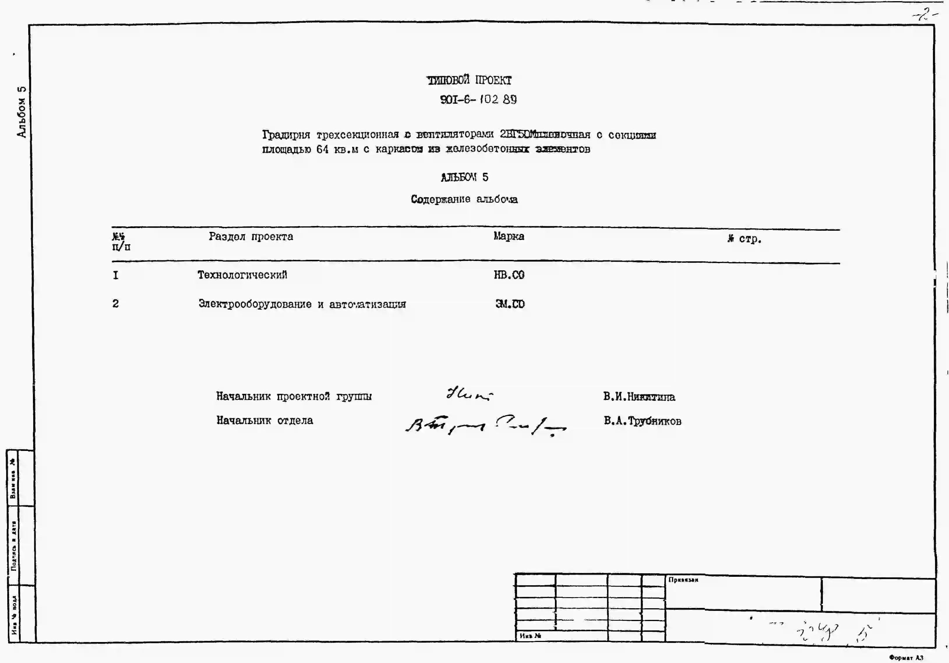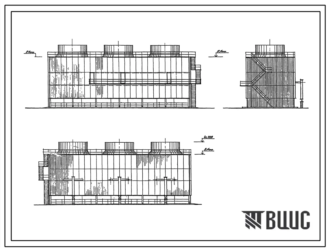 Типовой проект 901-6-102.89 Градирня трехсекционная с вентиляторами 2ВГ50 пленочная с секциями площадью 64 кв. м с каркасом из железобетонных элементов