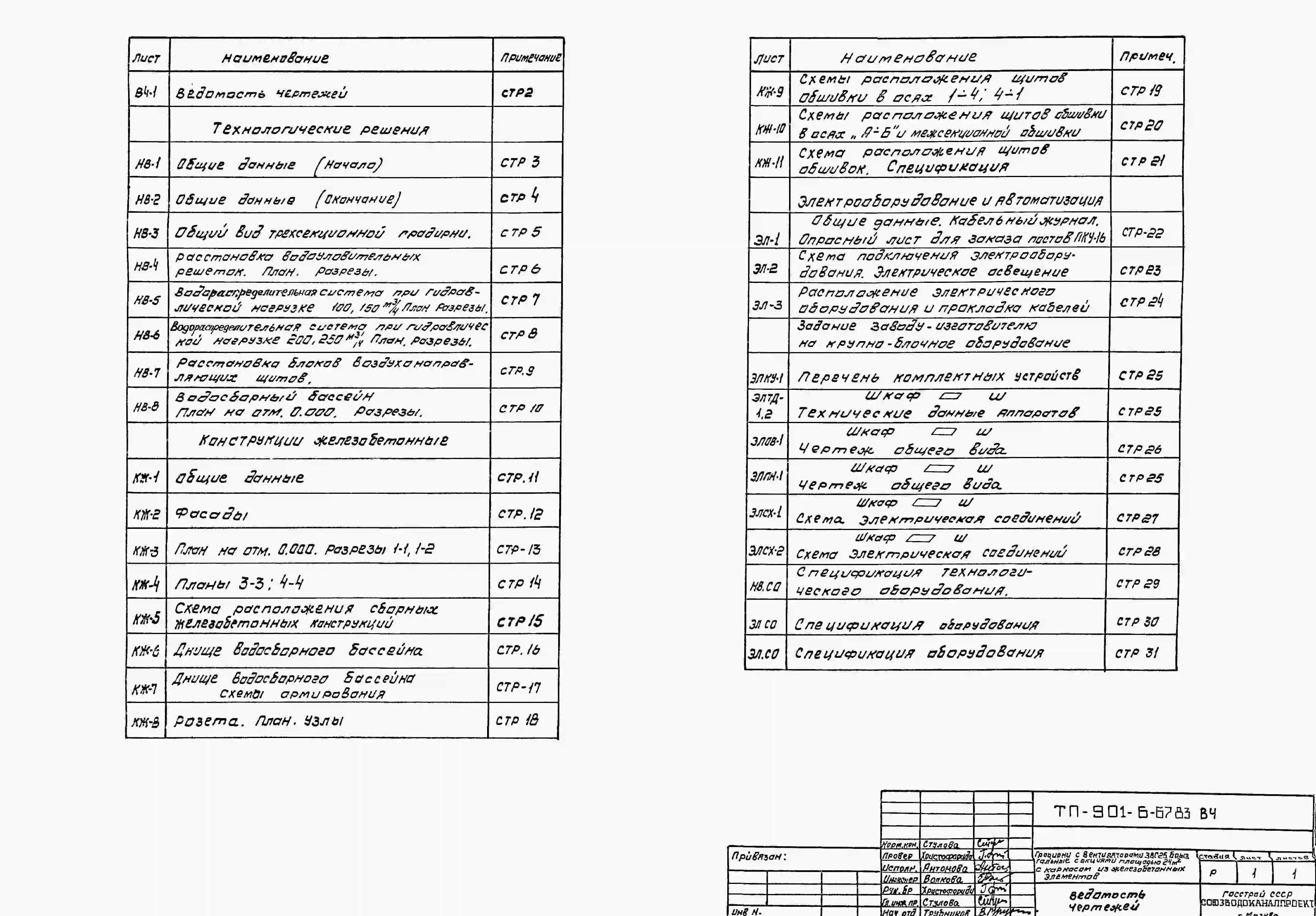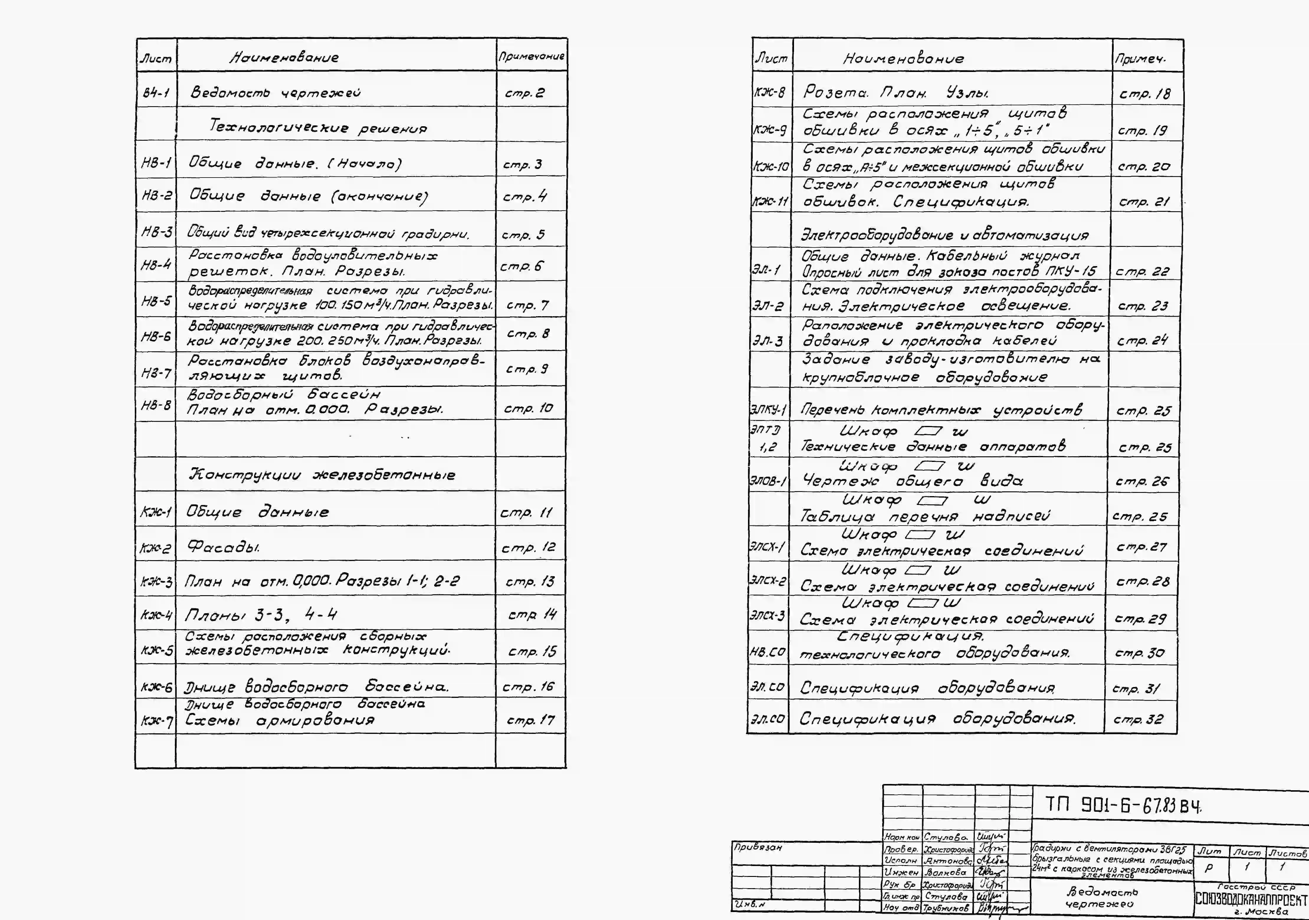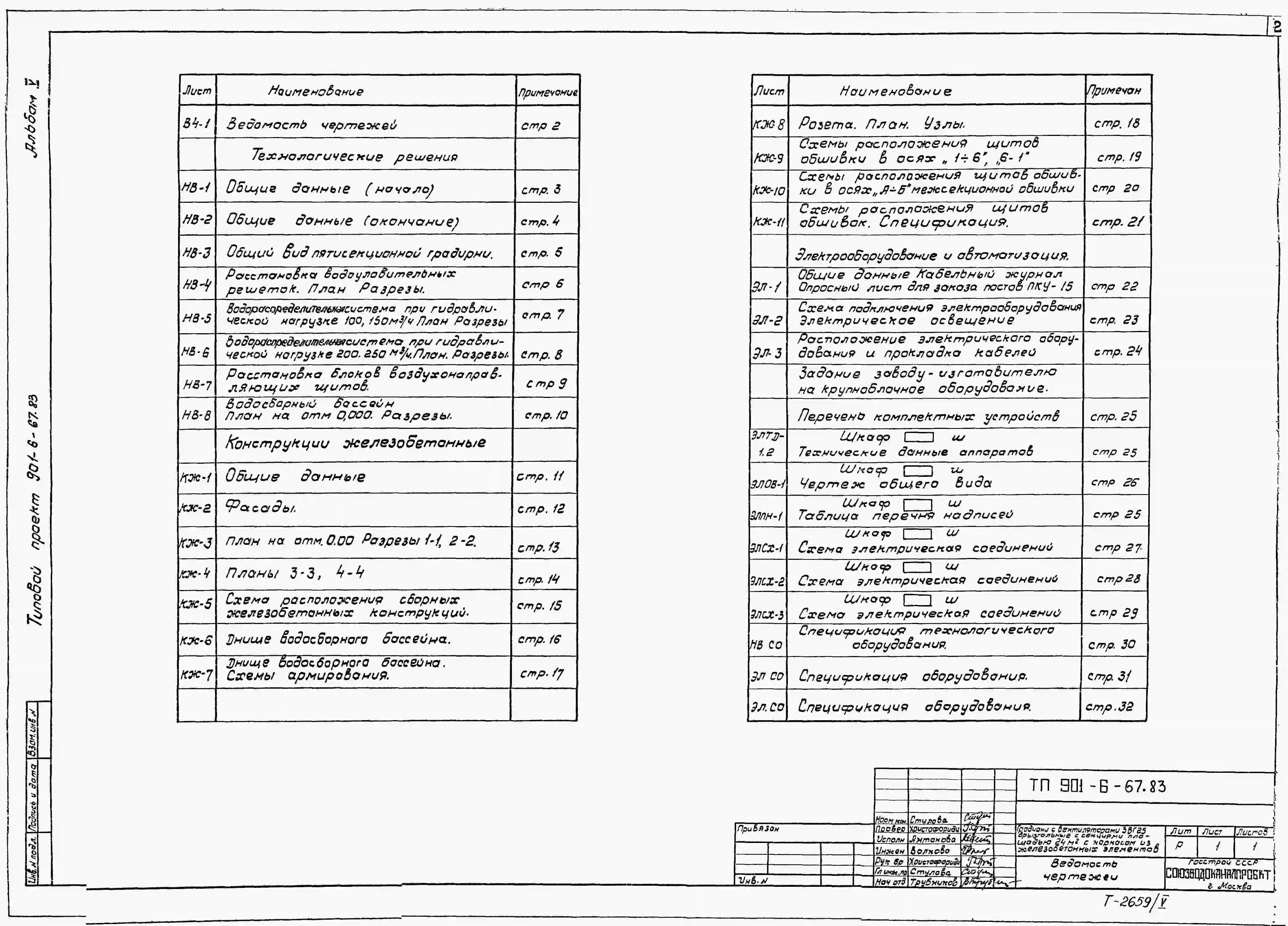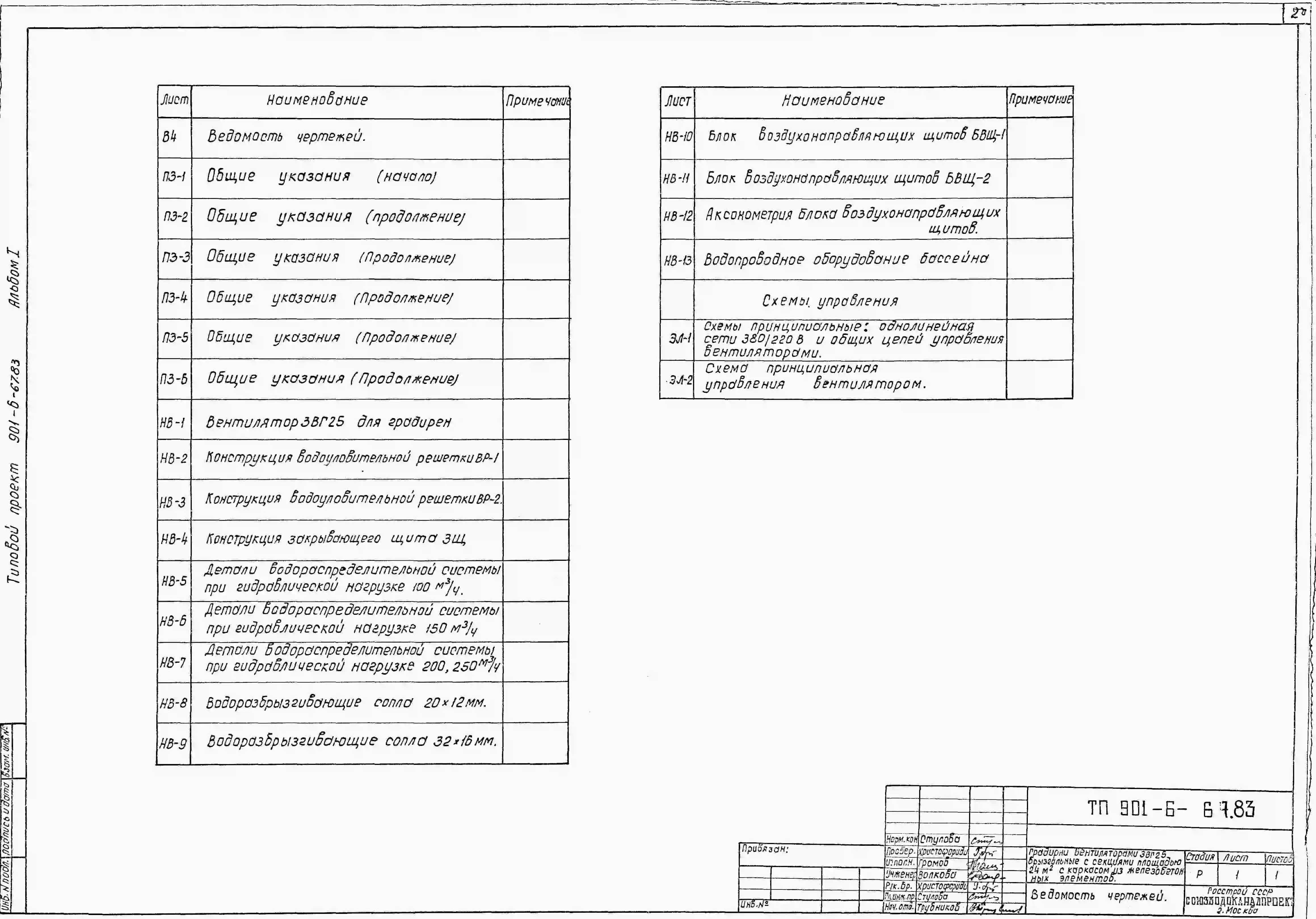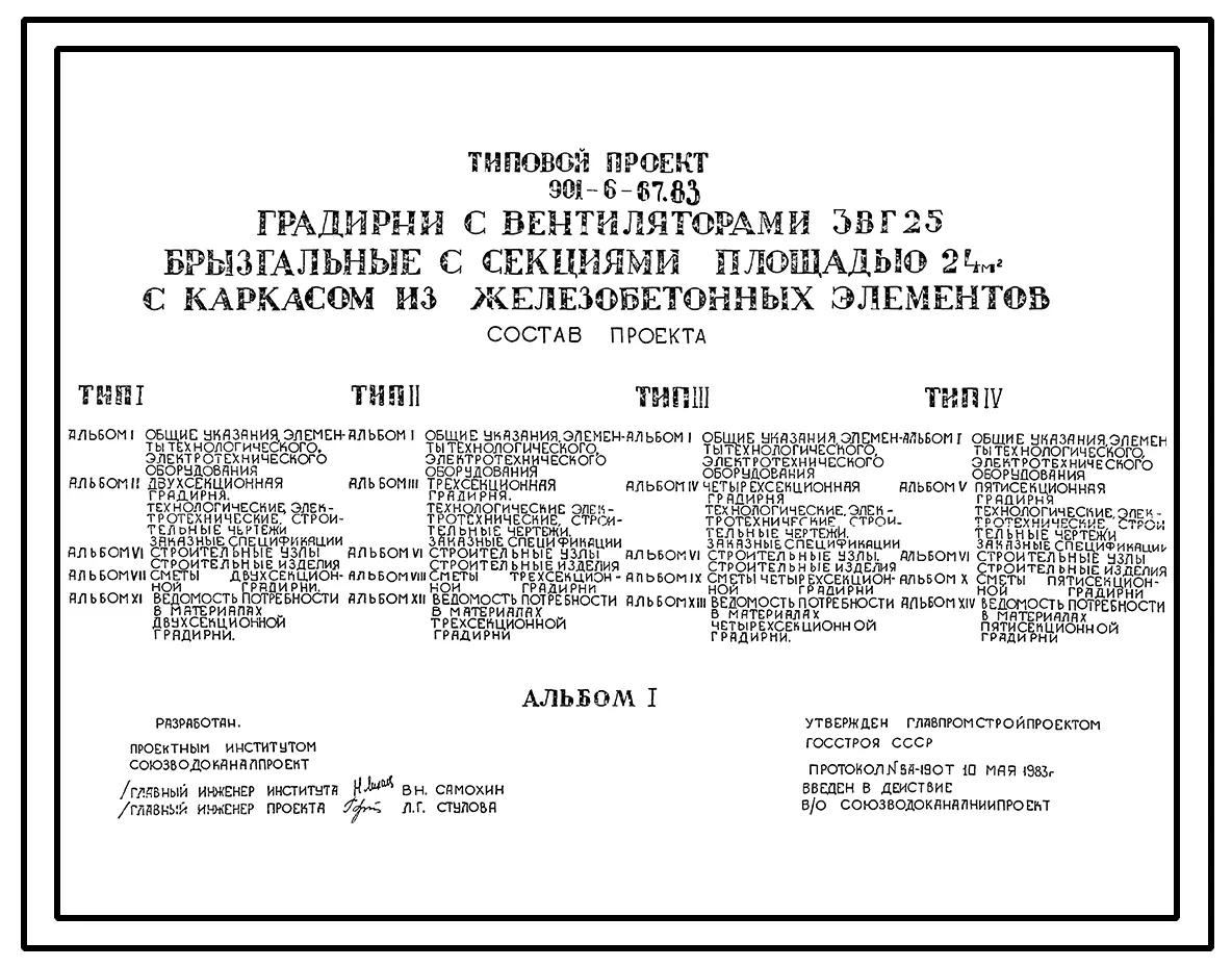 Типовой проект 901-6-67.83 Градирни с вентиляторами 2ВГ25 брызгальная с секиями площадью 24 кв.м с каркасом из железобетонных элементов