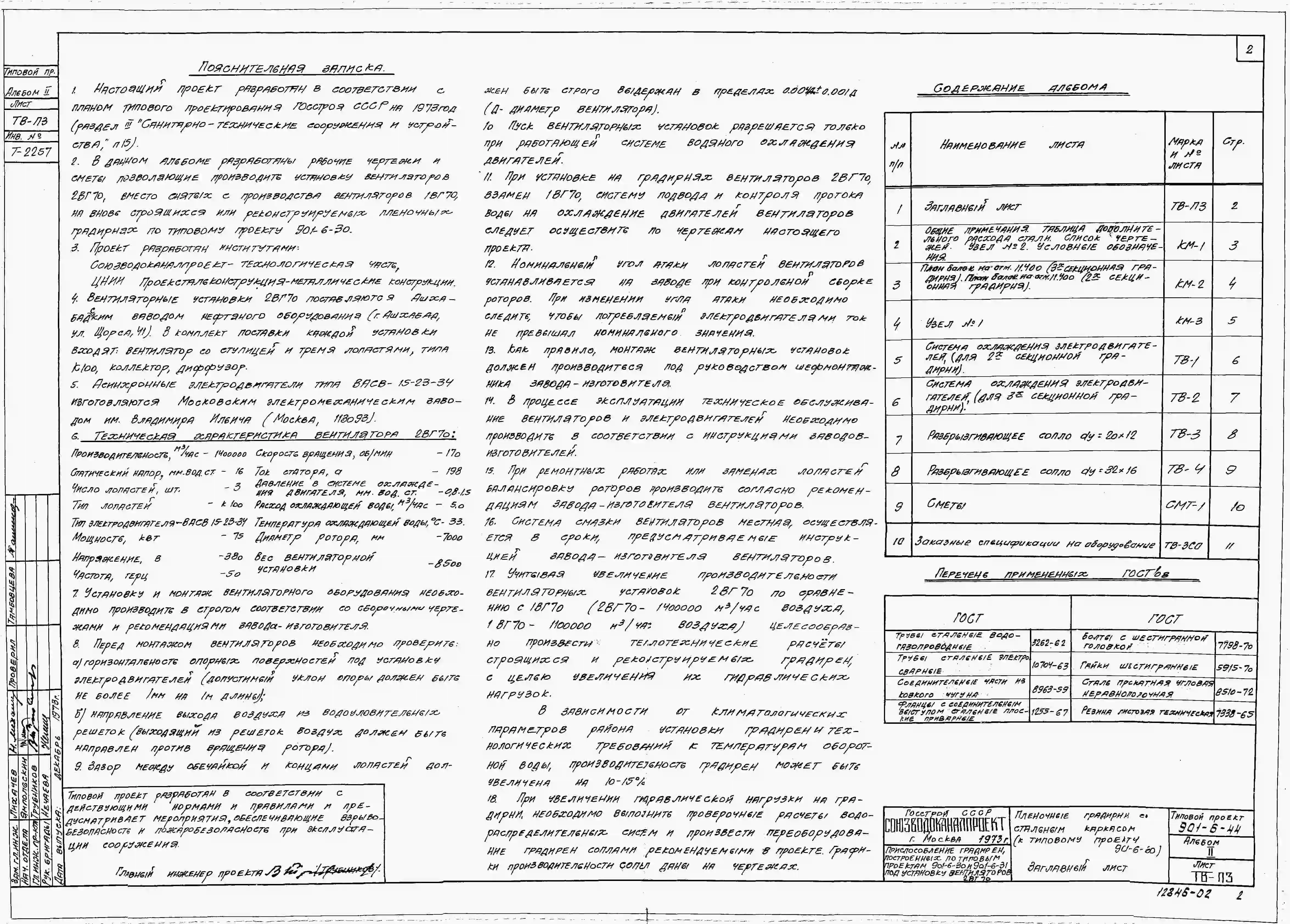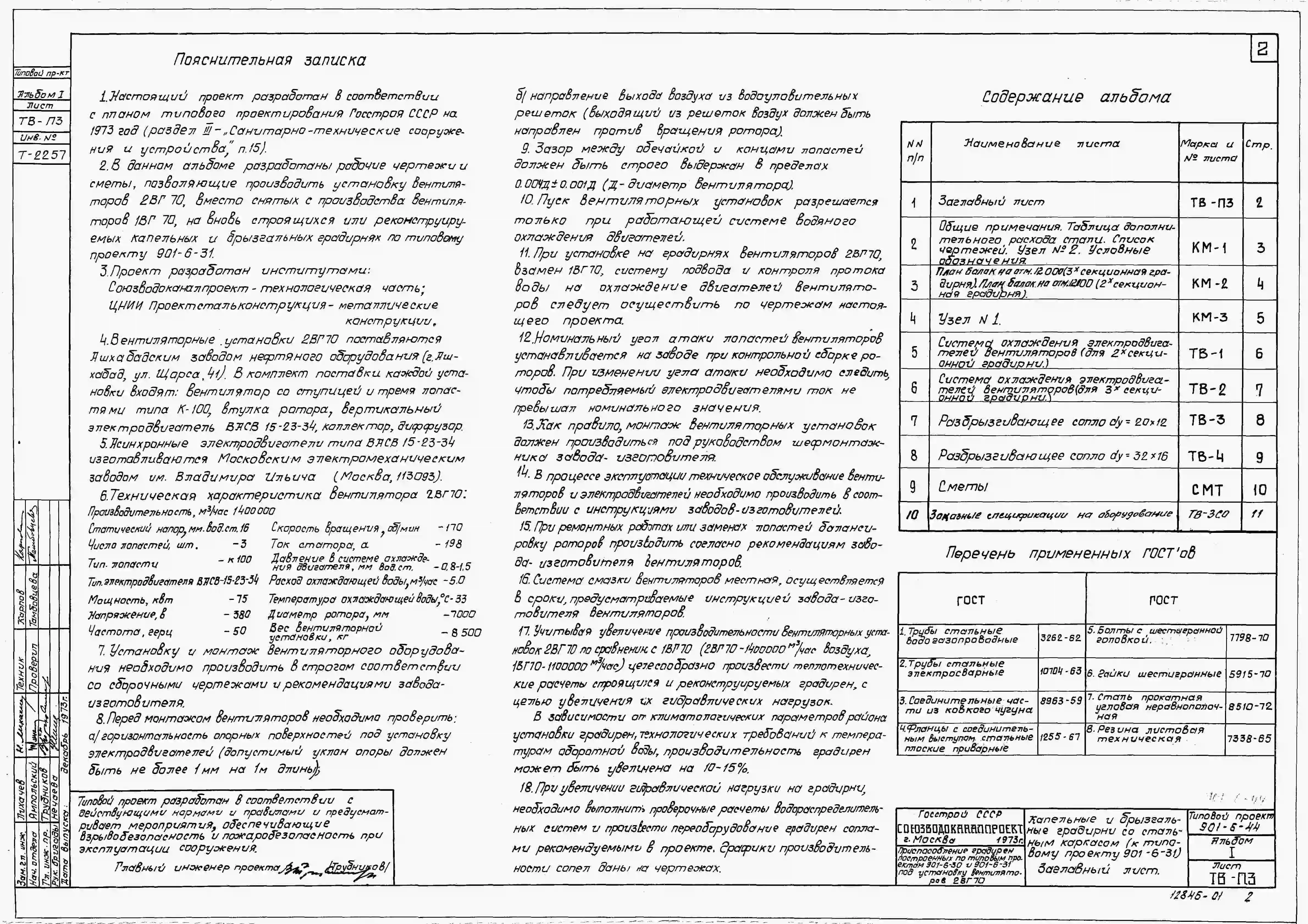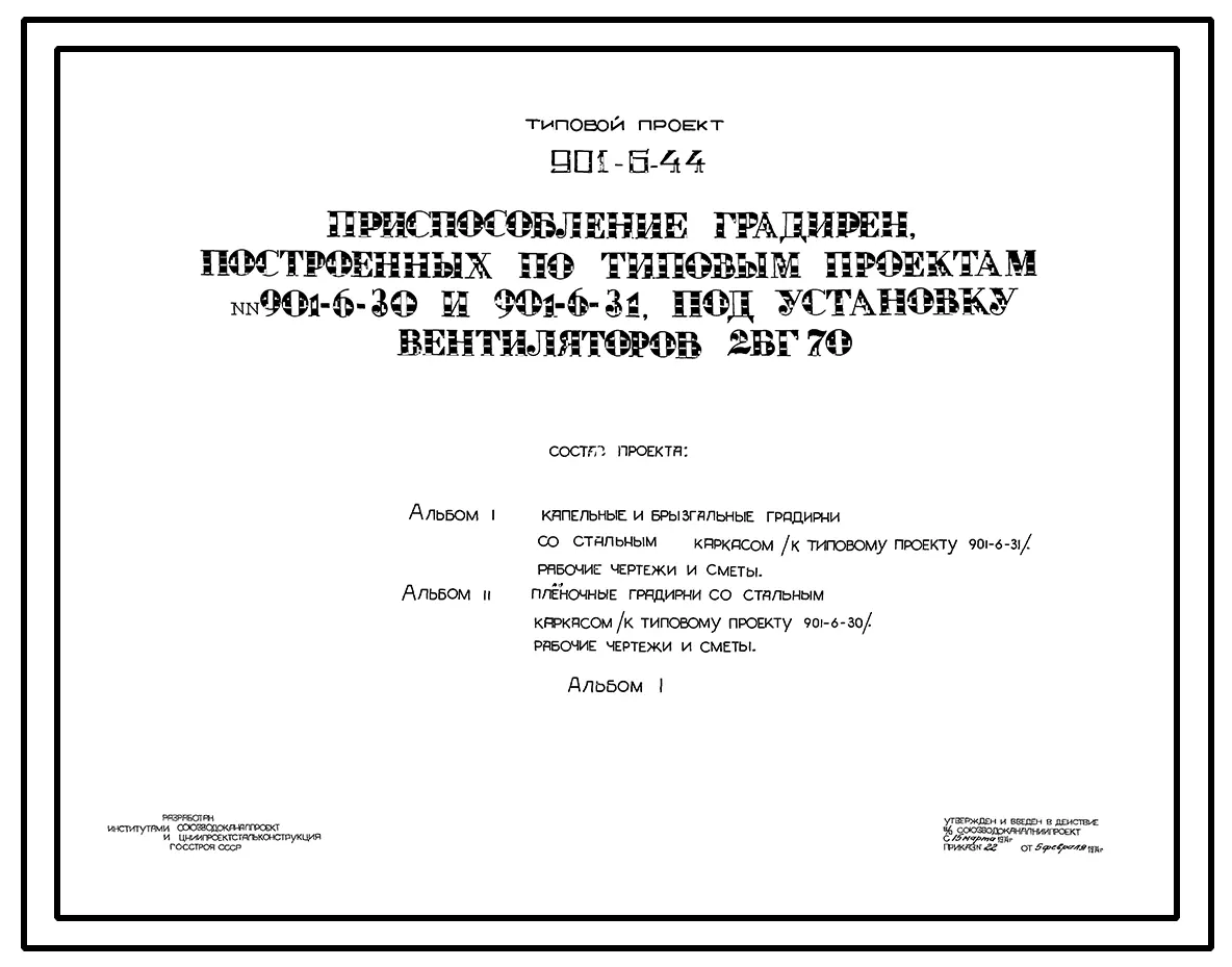 Типовой проект 901-6-44 Приспособление градирен, построенных по типовым проектам 901-6-30 и 901-6-31 под установку вентиляторов 2ВГ70