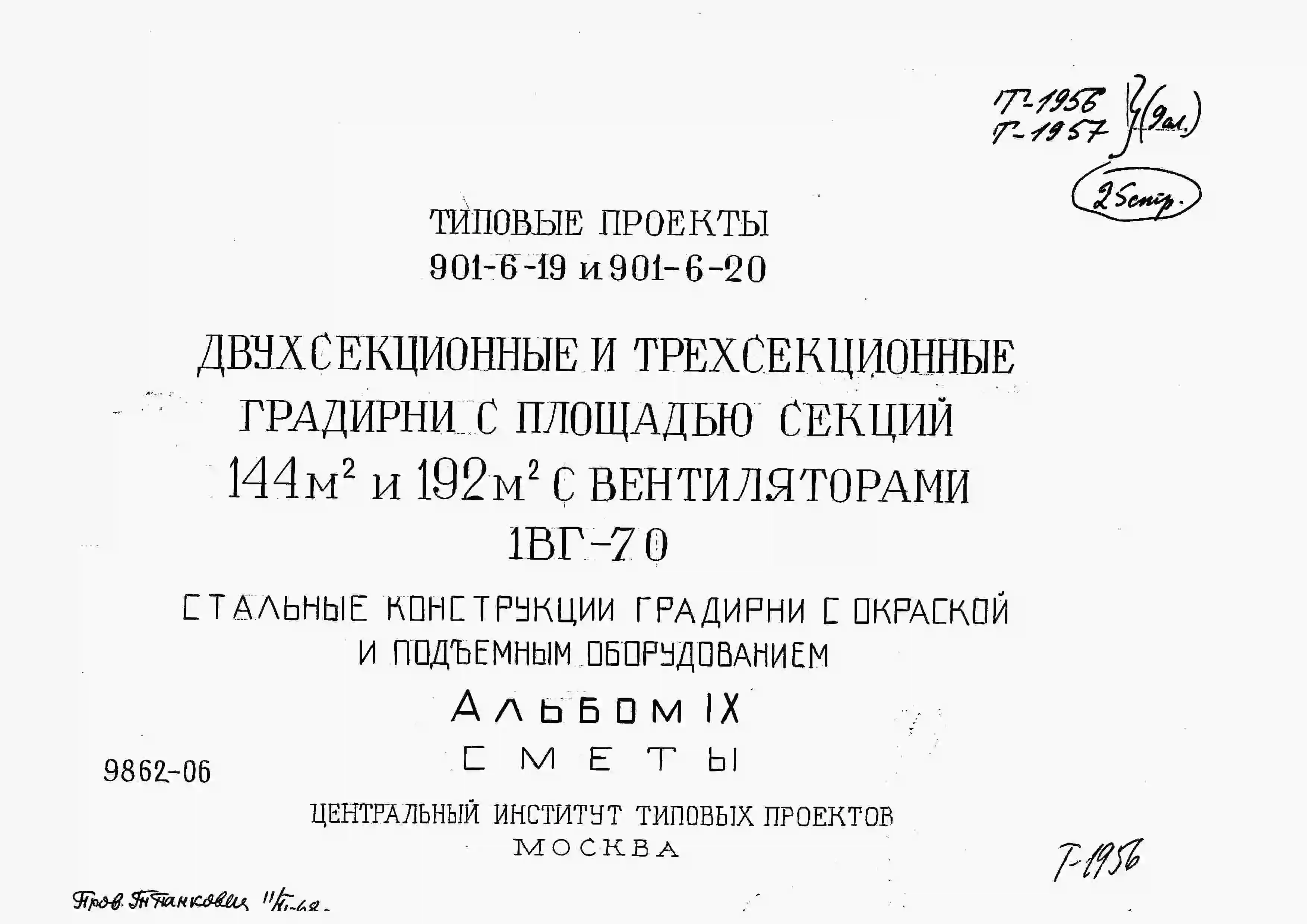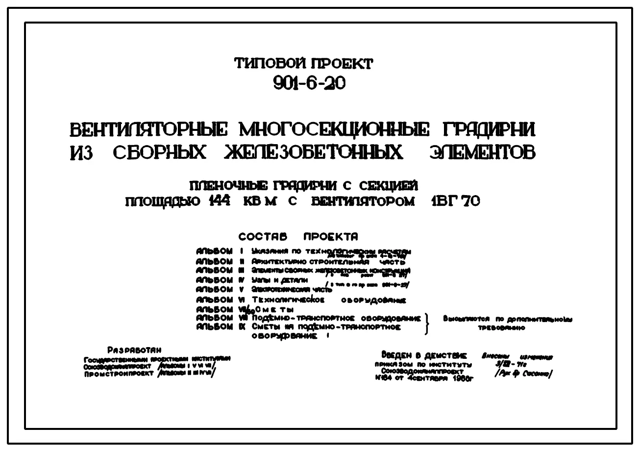 Типовой проект 901-6-20 Вентиляторные многосекционные градирни из сборных железобетонных элементов