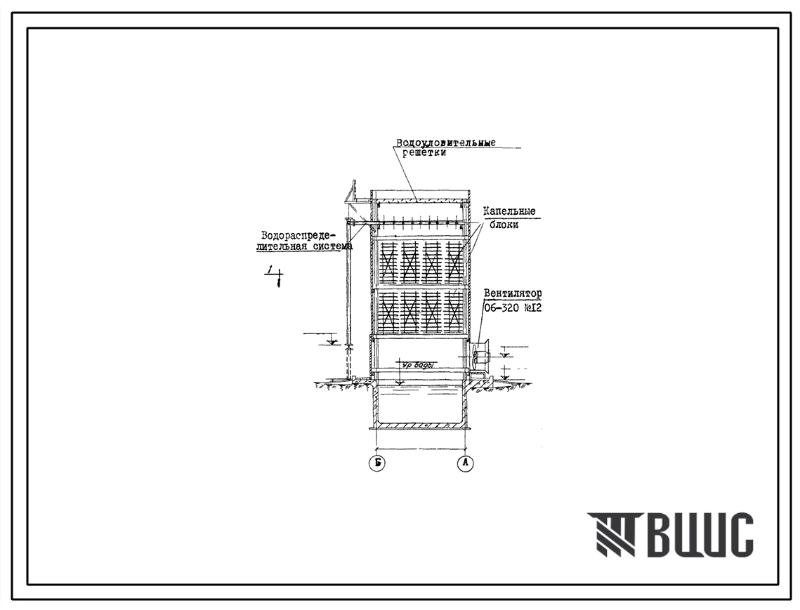 Типовой проект 901-6-33 Градирни с вентиляторами 06-320 №12 пленочные и капельные с секциями площадью 8 м.кв с деревянным каркасом