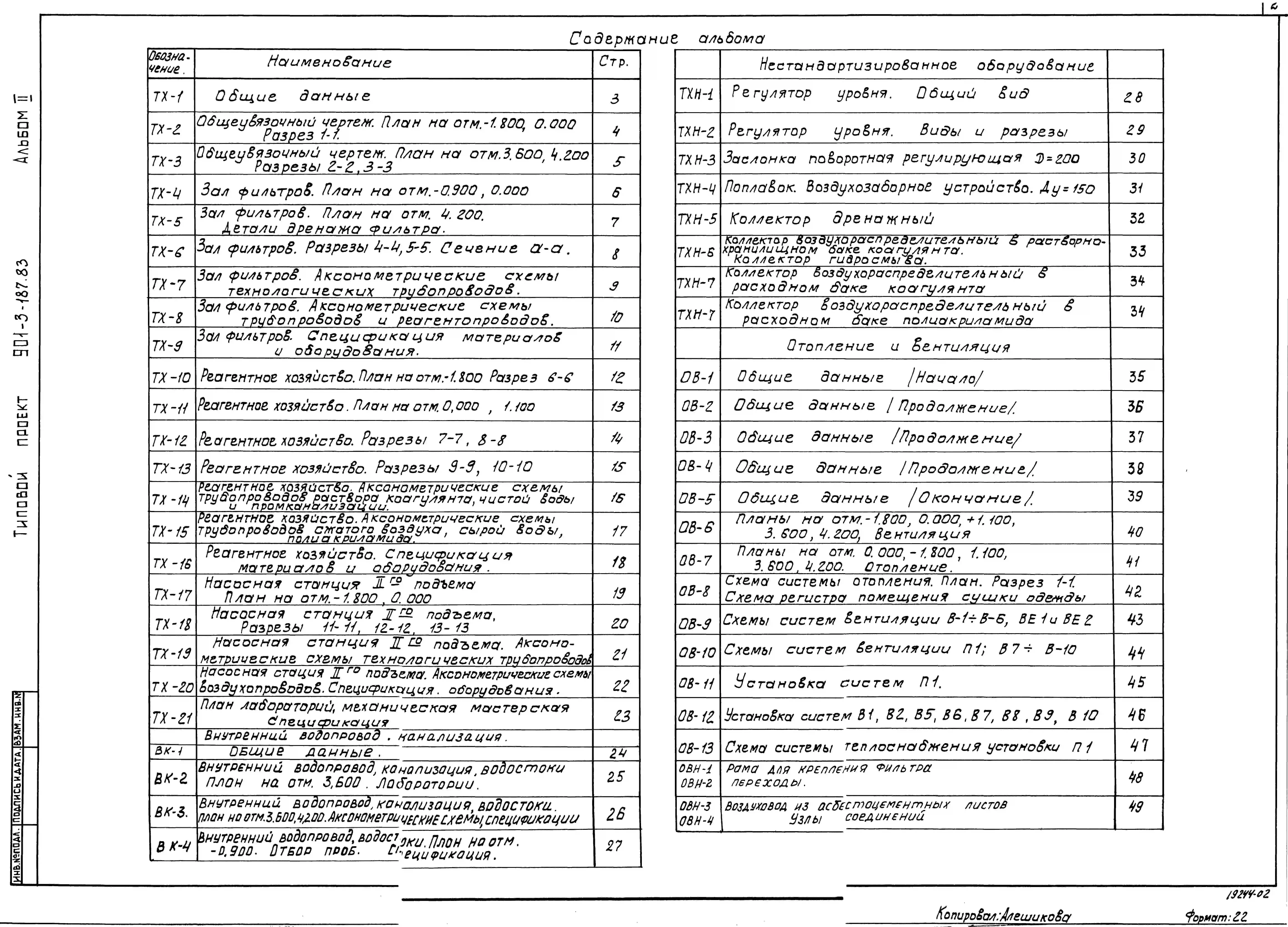 Типовой проект 901-3-187.83 Главный корпус для станции очистки воды поверхностных источников с содержанием взвешенных веществ до 50 мг/л производительностью 12,5 тыс. м3/сут