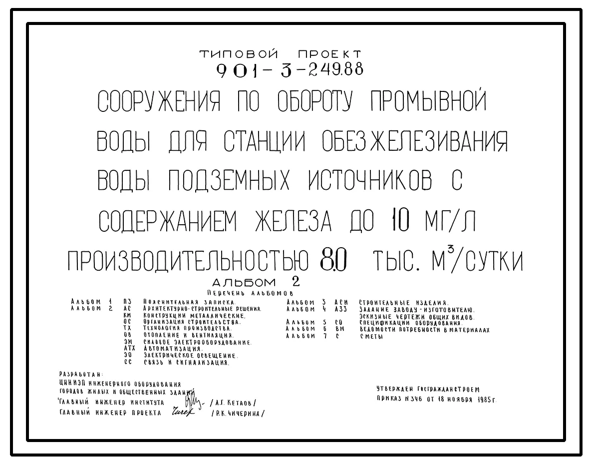 Типовой проект 901-3-249.88 Сооружения по обороту промывной воды для станции обезжелезивания воды подземных источников с содержанием железа до 10 мг/л производительностью 8,0 тыс. м3/сут