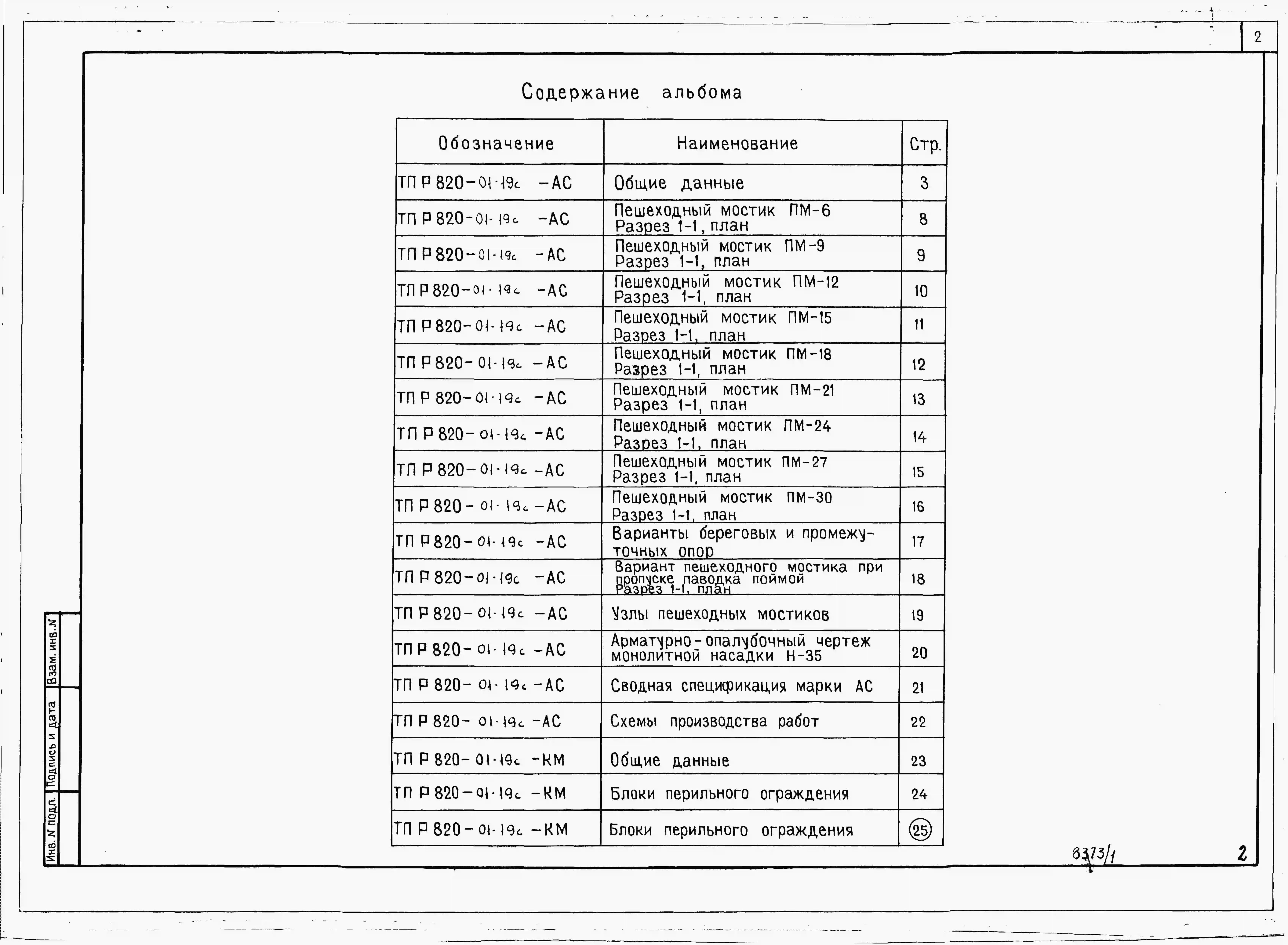 Типовой проект 820-01-19c Пешеходные мостики на каналах мелиоративных систем