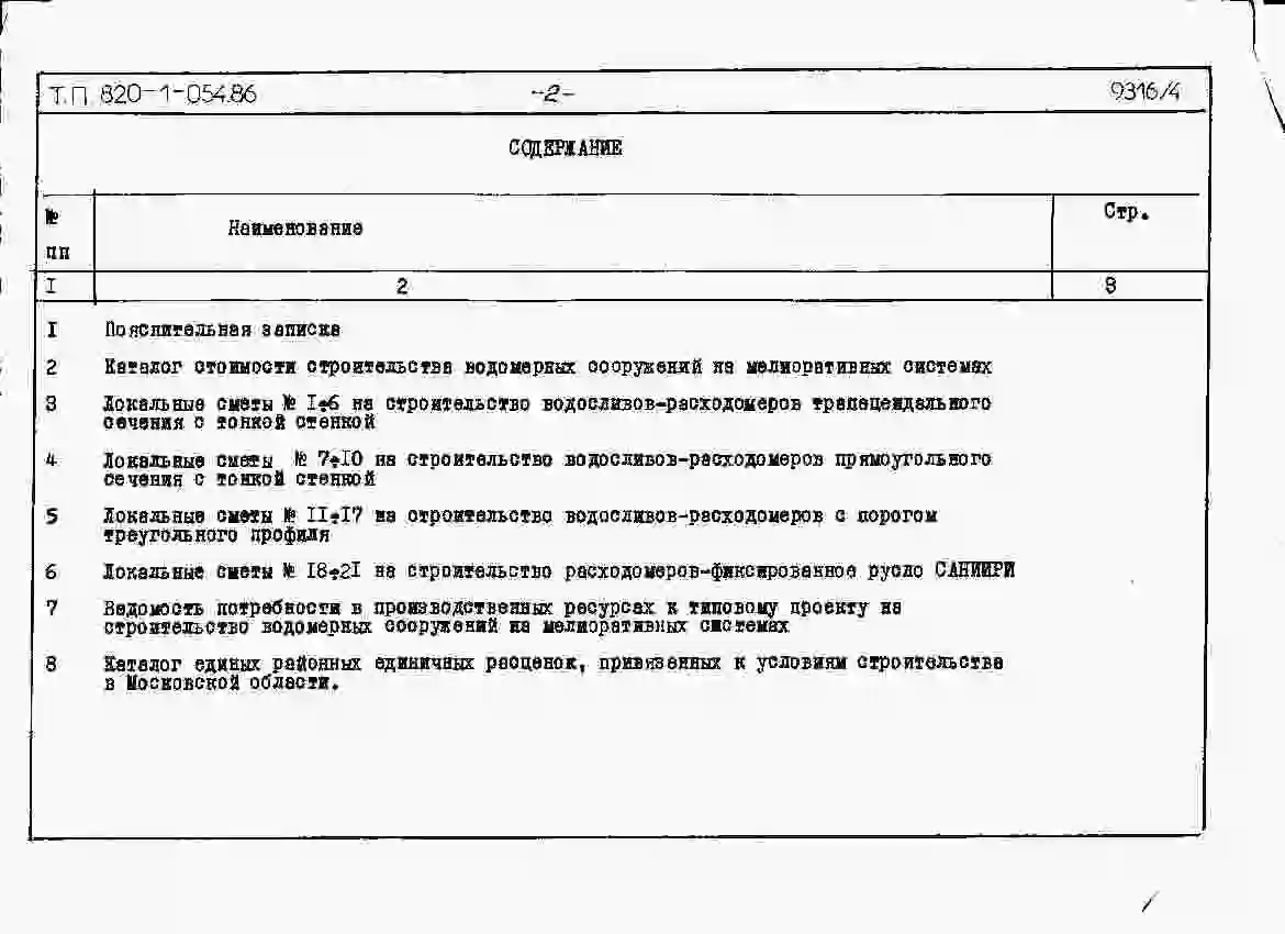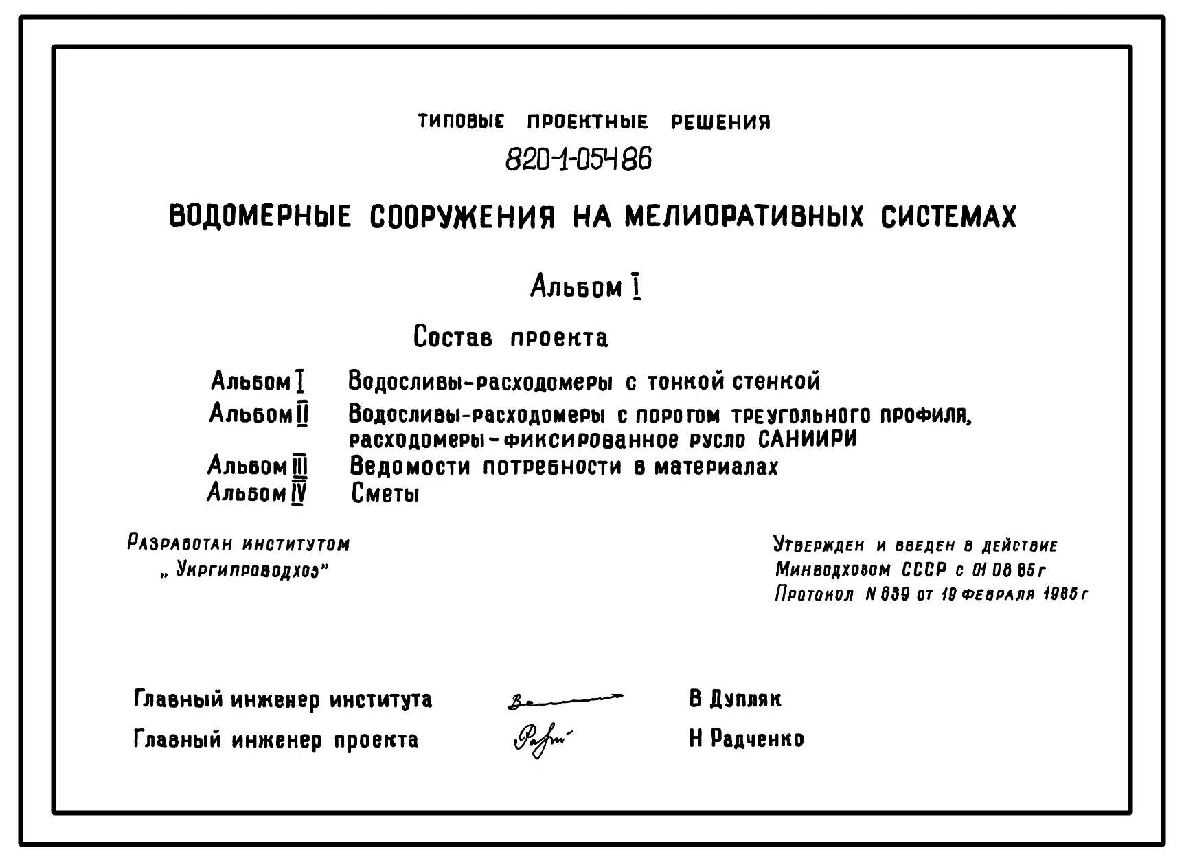 Типовой проект 820-1-054.86 Водомерные сооружения на мелиоративных системах