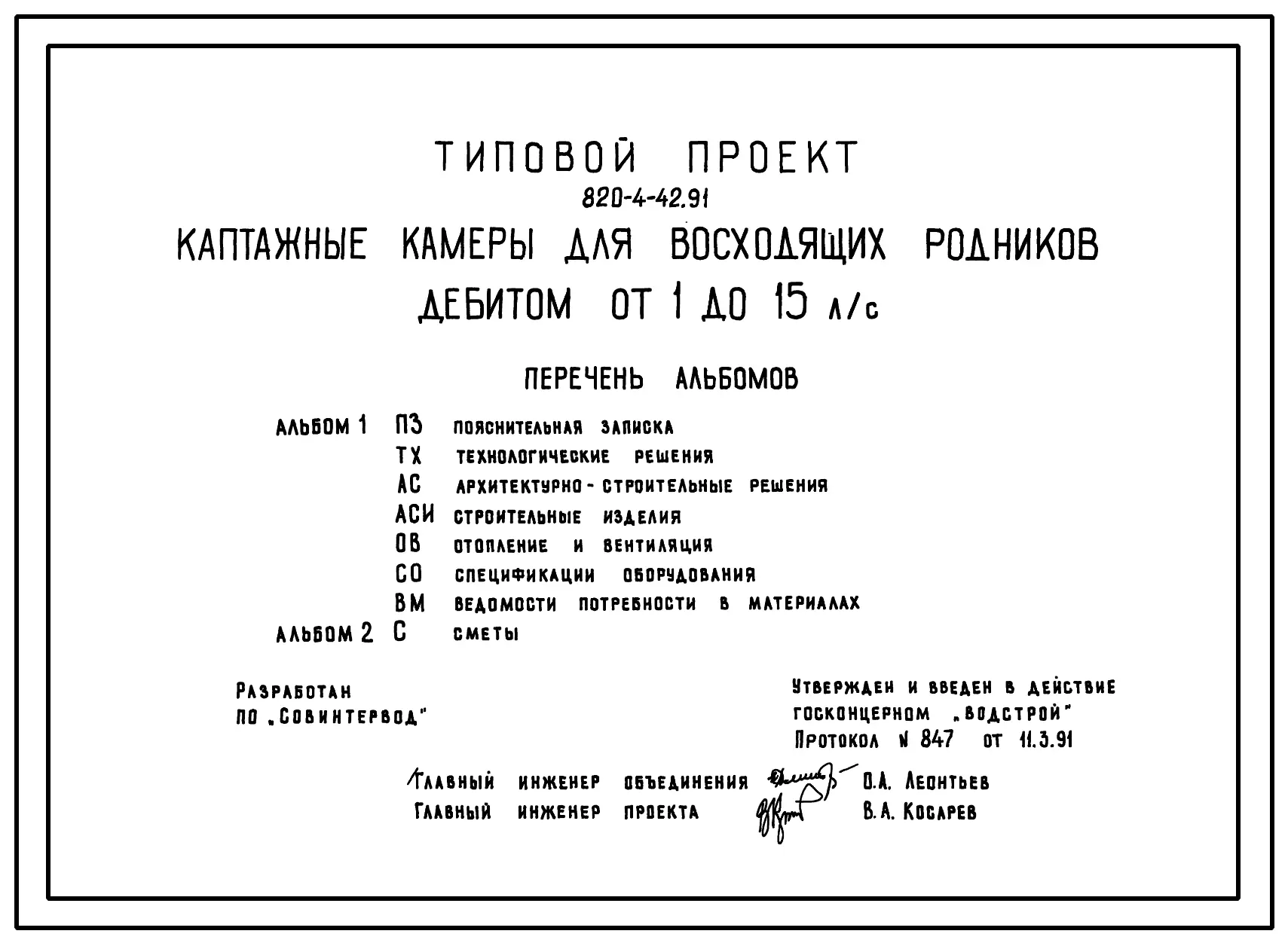 Типовой проект 820-4-42.91 Каптажные камеры для восходящих родников дебитом от 1 до 15 л/с