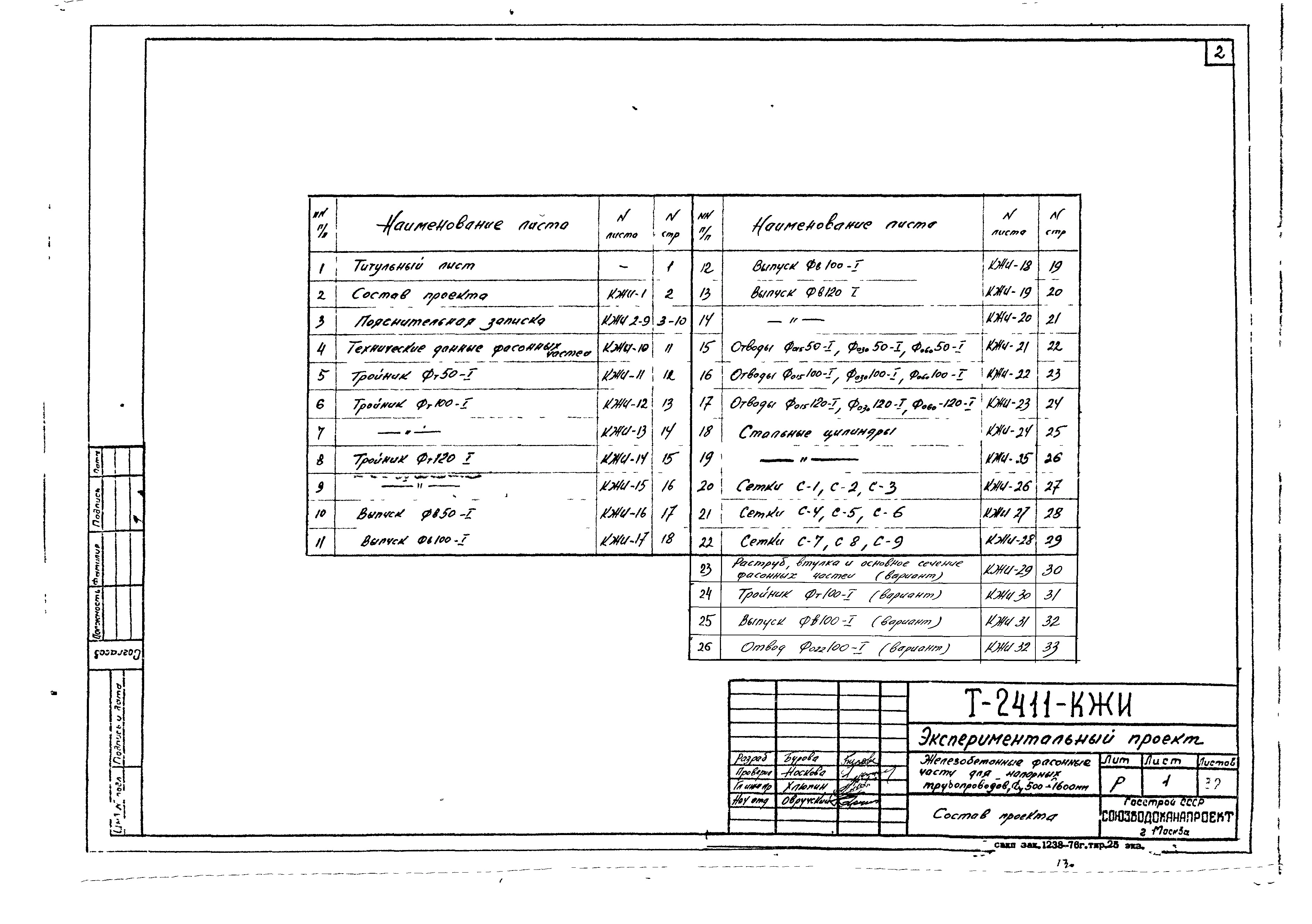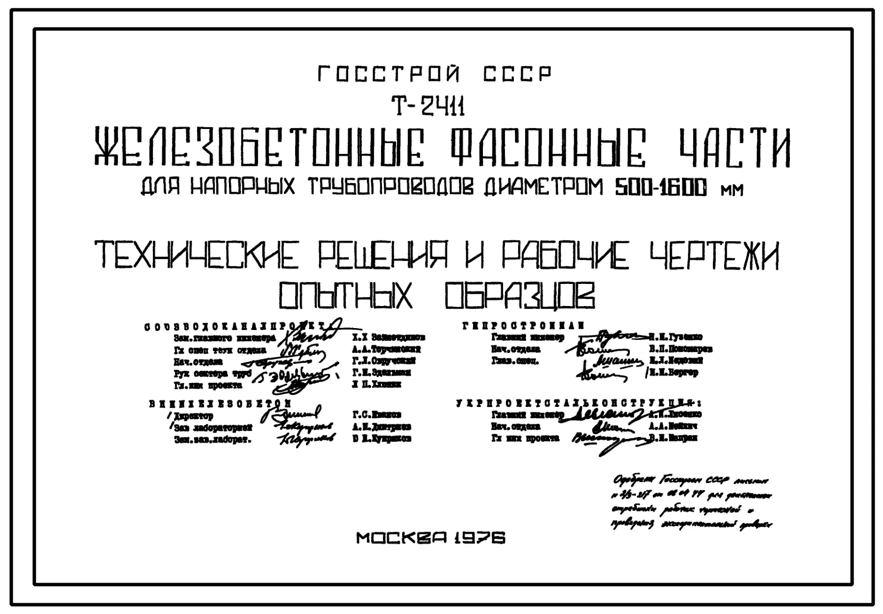 Технический проект Т-2411 Железобетонные фасонные части для напорных трубопроводов диаметром 500-1600 мм