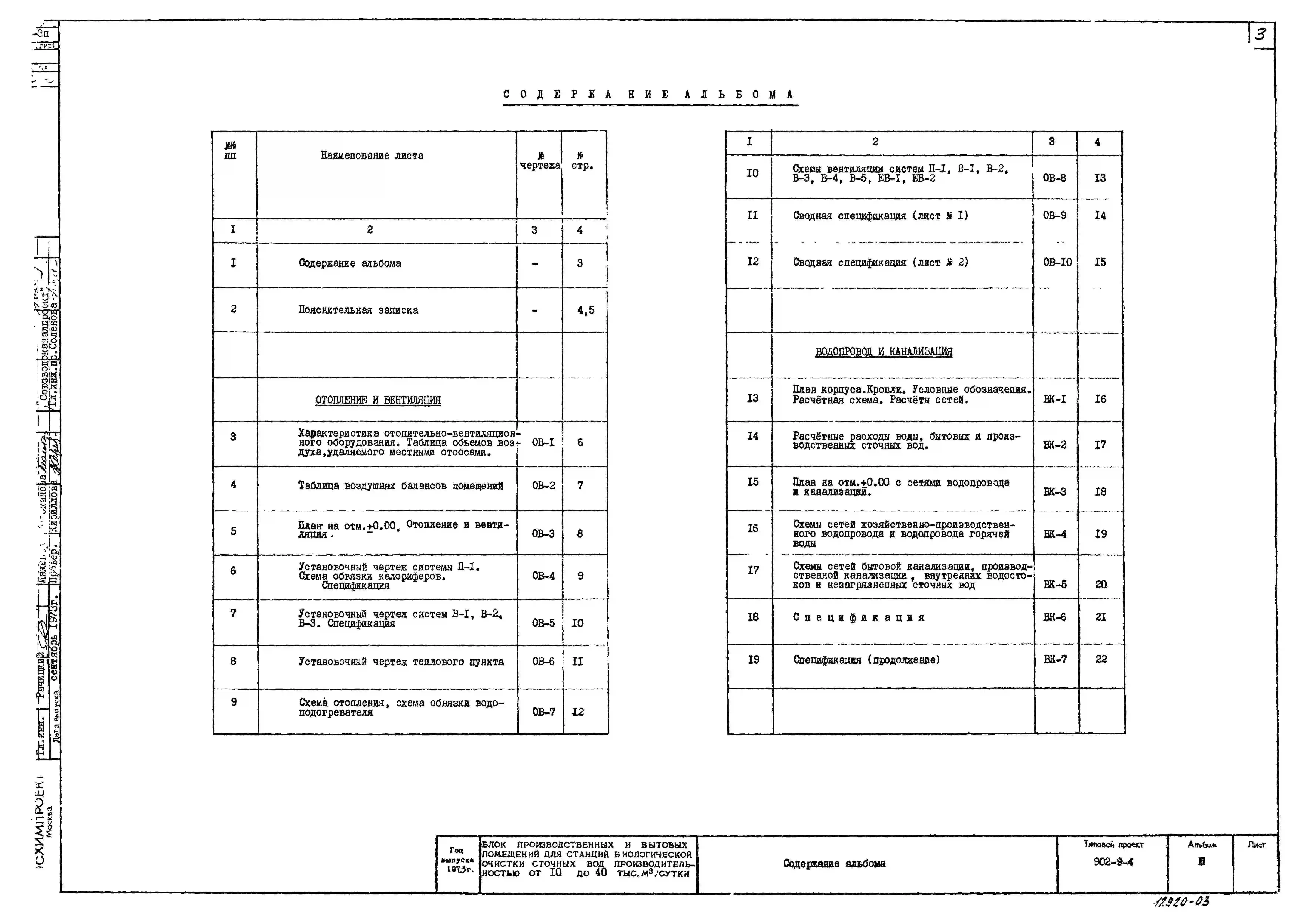 Типовой проект 902-9-4 Блок производственных и бытовых помещений для станций биологической очистки сточных вод производительностью от 10 до 40 тыс.м.куб/сутки