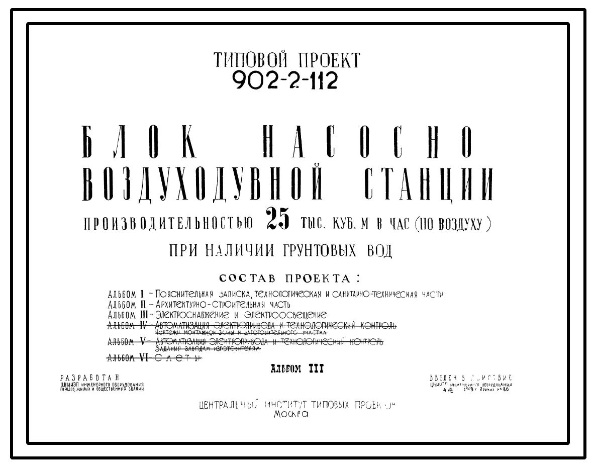 Типовой проект 902-2-112 Блок насосно-воздуходувной станции производительностью 25 тыс. м3 в час (по воздух) при наличии грунтовых вод.