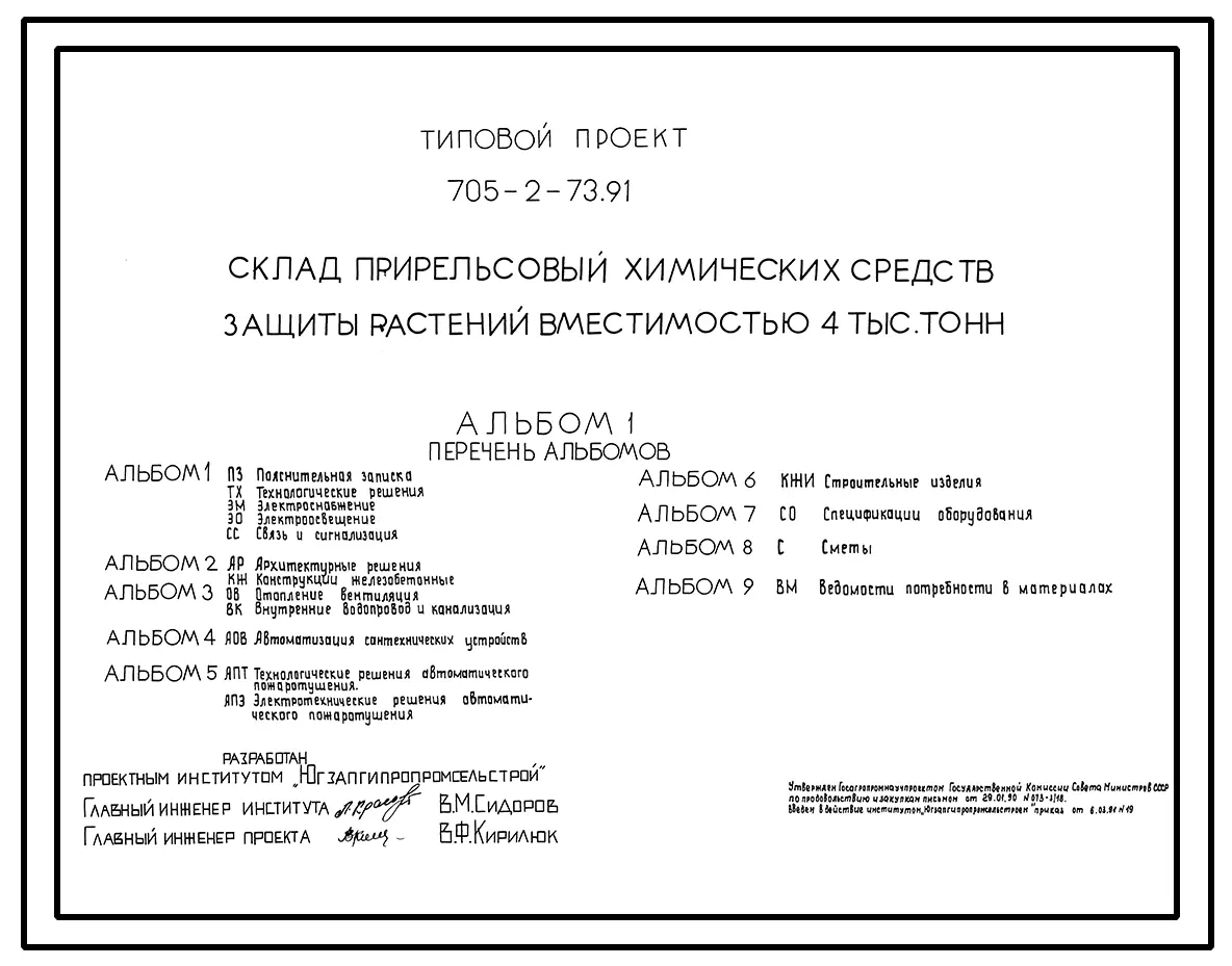 Типовой проект 705-2-73.91 Склад прирельсовый химических средств защиты растений вместимостью 4 тыс. т