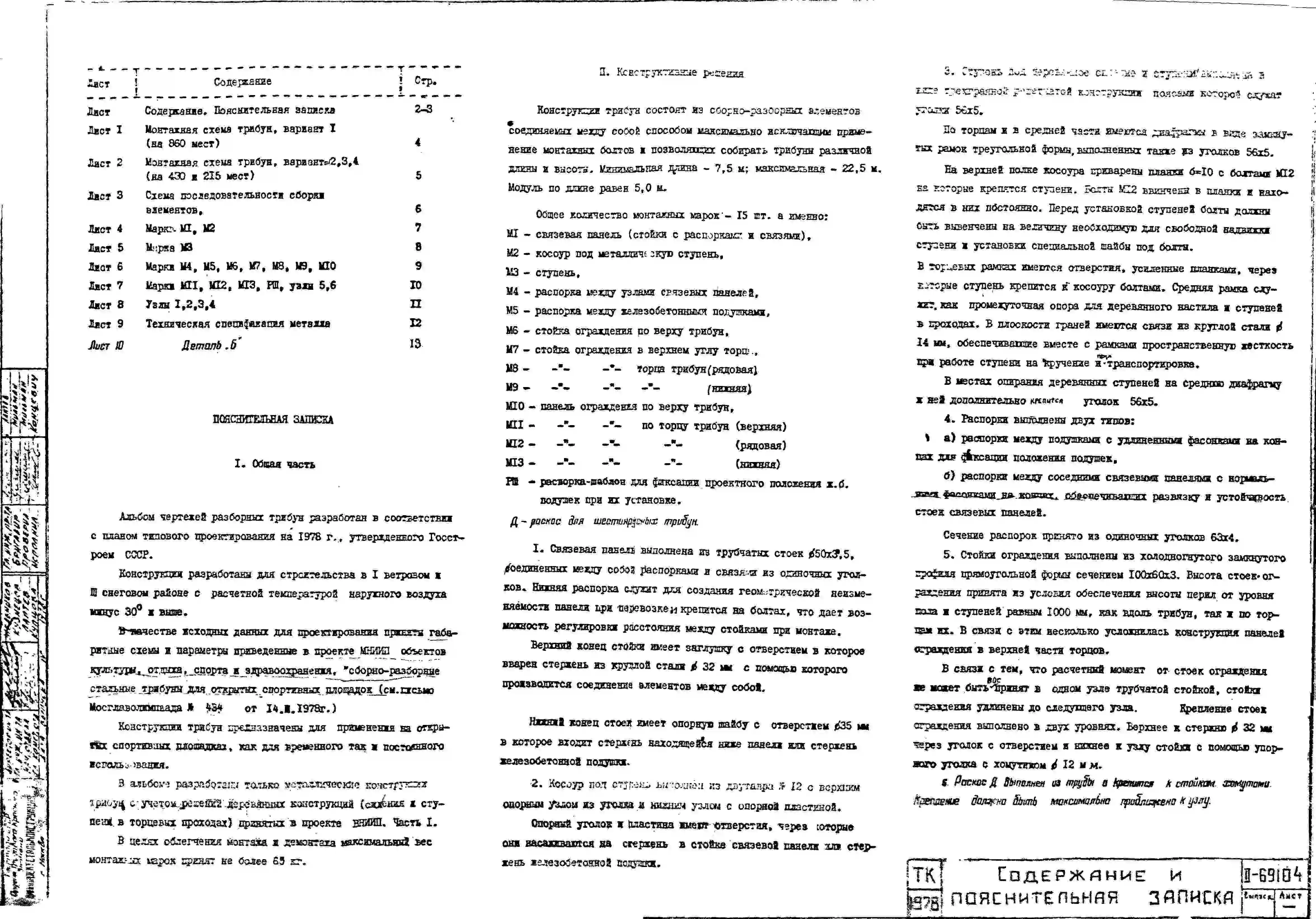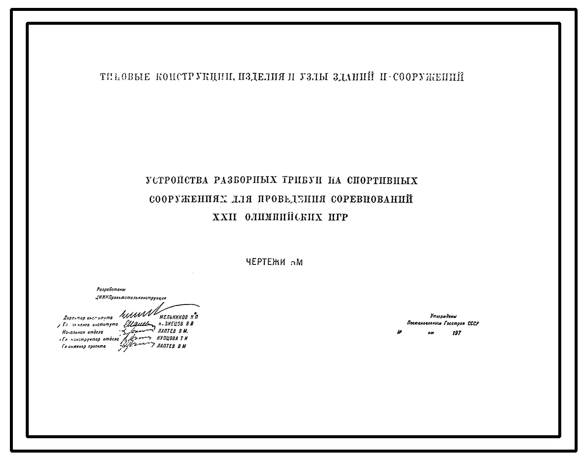 Типовой проект II-69104 Устройства разборных спортивных трибун на спортивных сооружениях для проведения соревнований XXII олимпийских игр