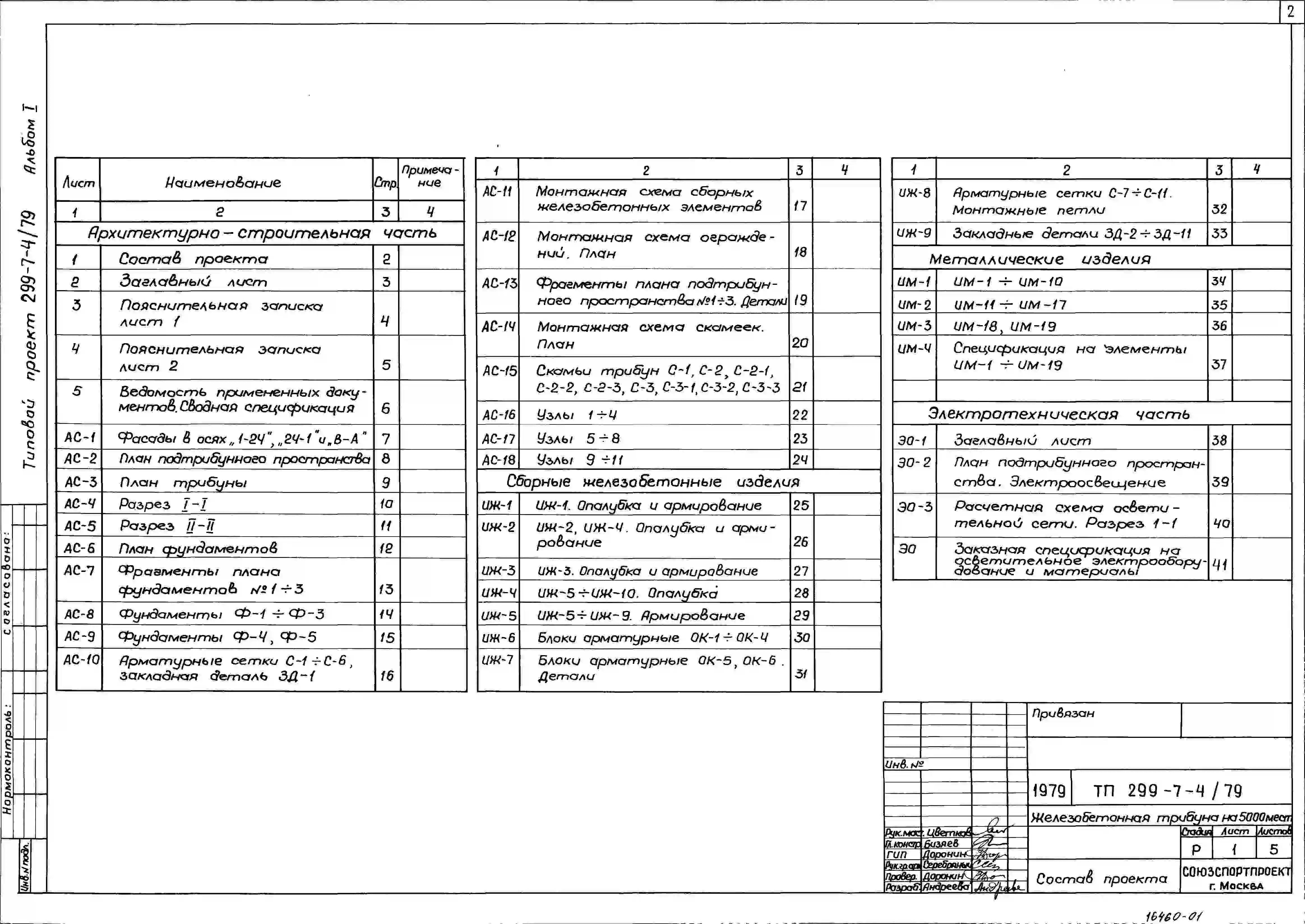 Типовой проект 299-7-4/79 Железобетонная трибуна секционного типа на 5000 мест с железобетонными столбами. Для строительства во 2 и 3 строительно-климатических зонах.