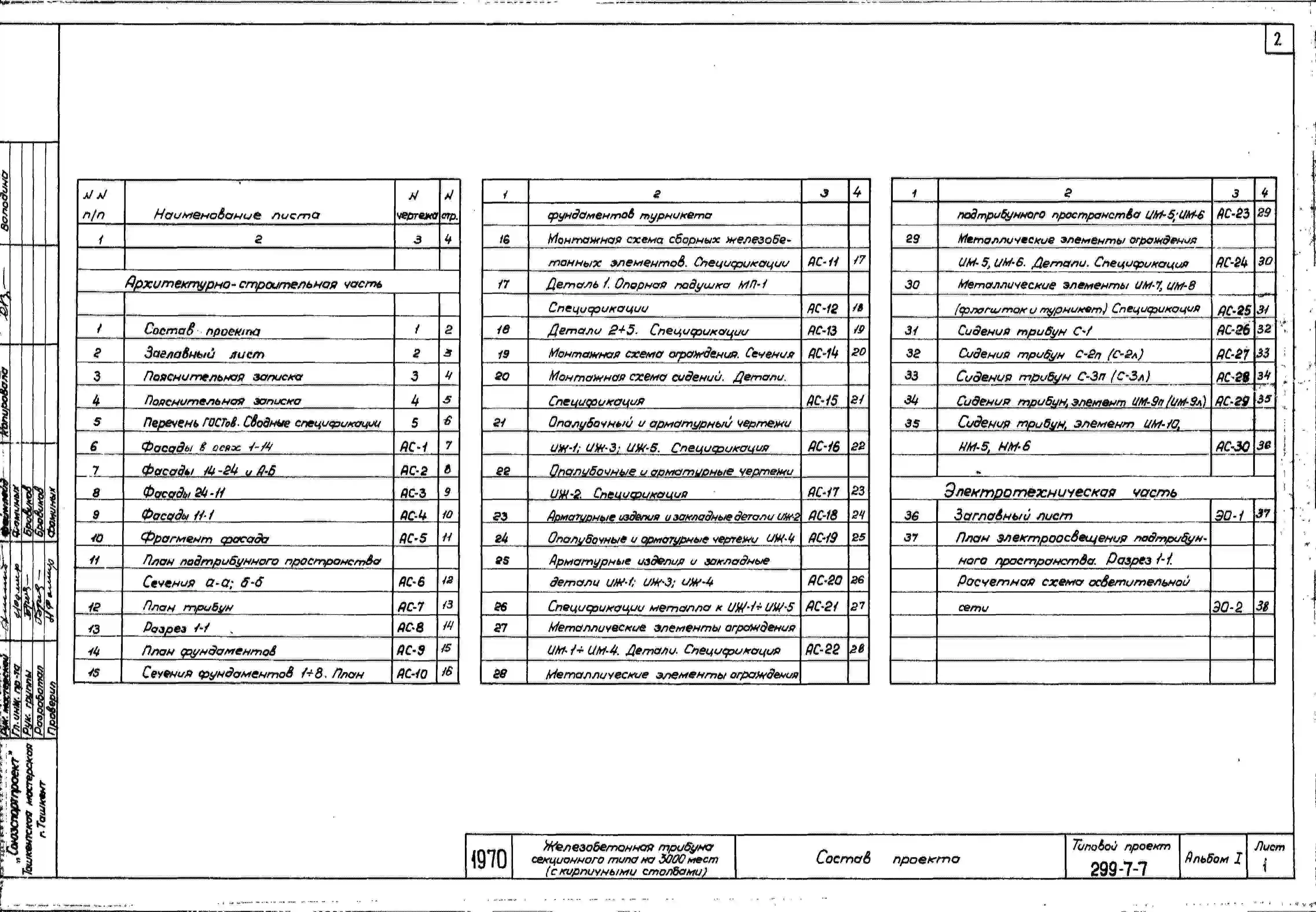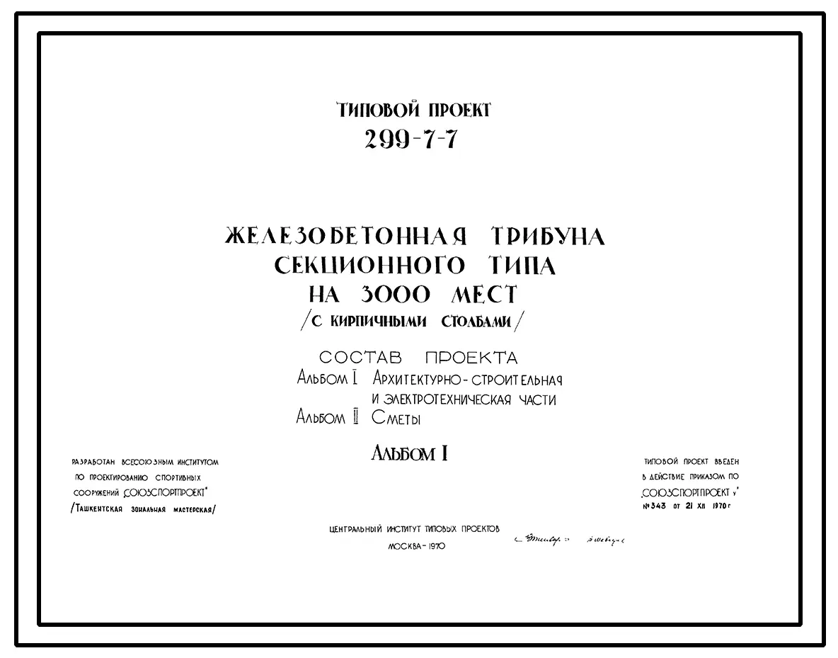 Типовой проект 299-7-7 Железобетонная трибуна секционного типа на 3000 мест с кирпичными столбами. Для строительства во 2 и 3 строительно-климатических зонах.