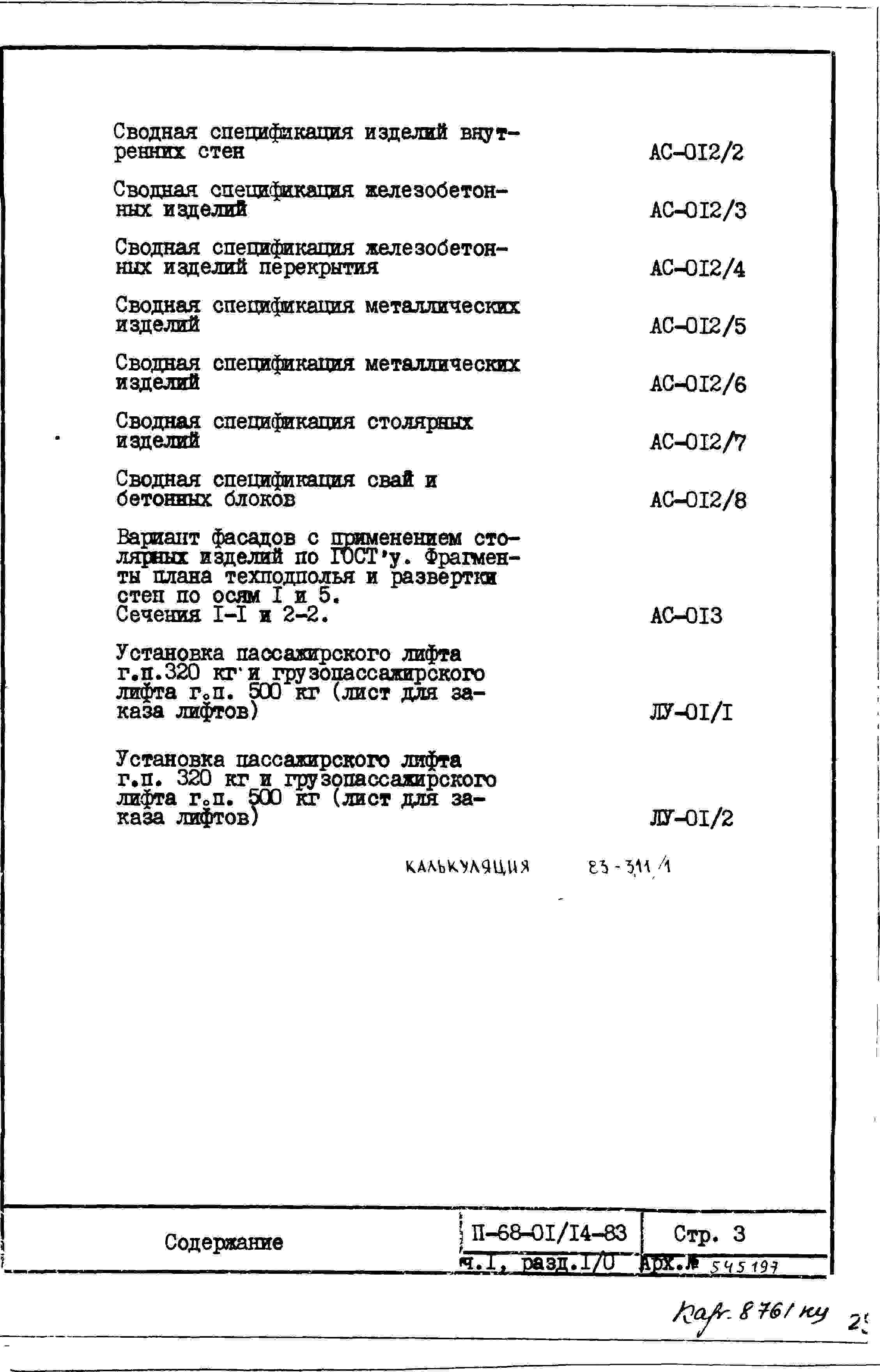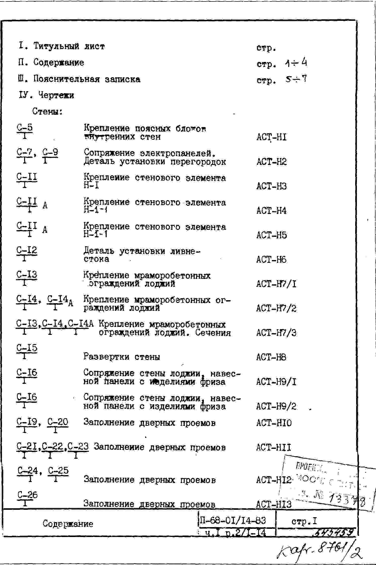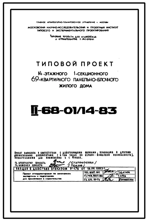 Типовой проект II-68-01/14-83 14-ти этажные 1-секционные 69-квартиные панельно-блочные жилые дома серии II-68 производства ГМПСМ