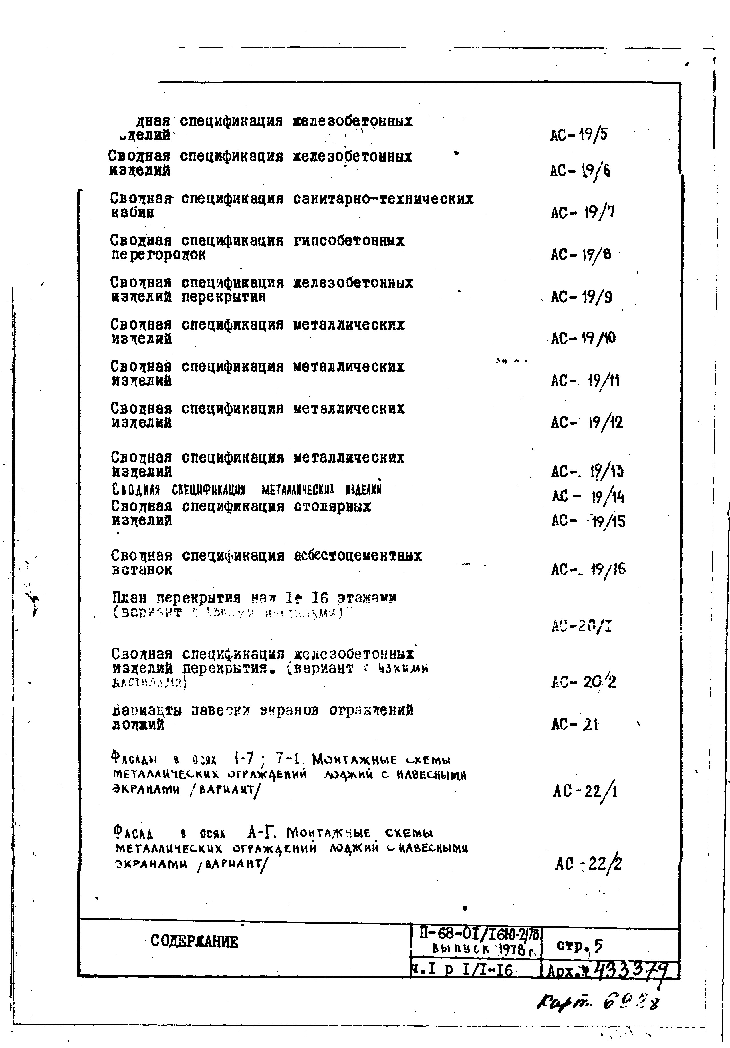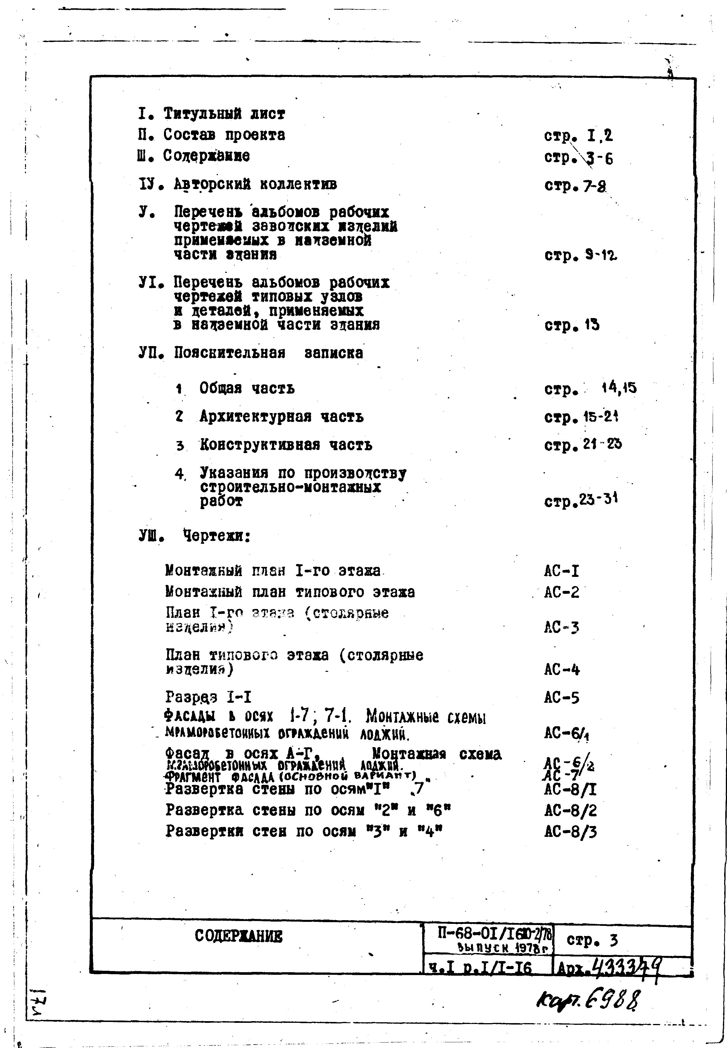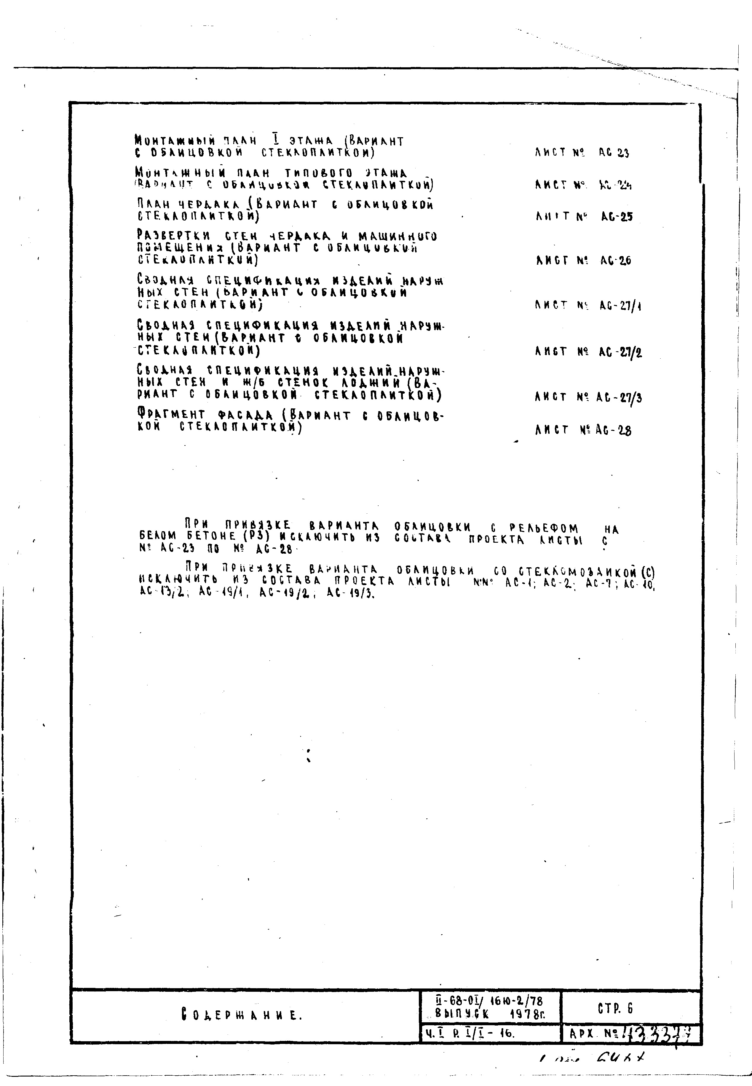 Типовой проект II-68-01/16Ю-2/78 16-ти этажные 111-квартирные панельно-блочные жилые дома серии II-68 производства ГМПСМ 2-Редакция Выпуск 1978 года