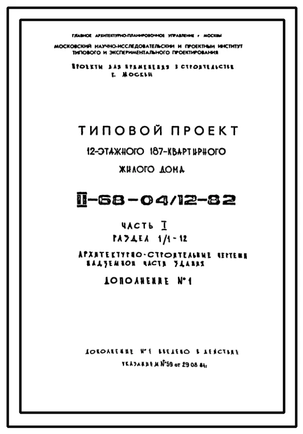 Типовой проект II-68-04/12-82 12-ти этажные 187-квртирные панельно-блочные жилые дома серии II-68 производства ГМПСМ
