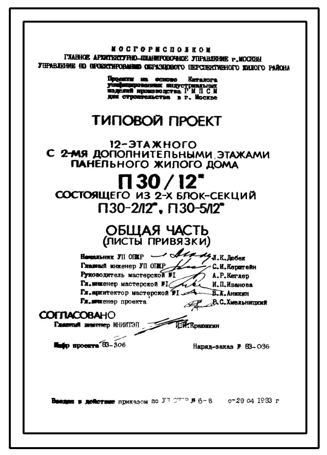 Типовой проект П30/12 12-ти этажные панельные жилые дома серии П 30 производства ГМПСМ