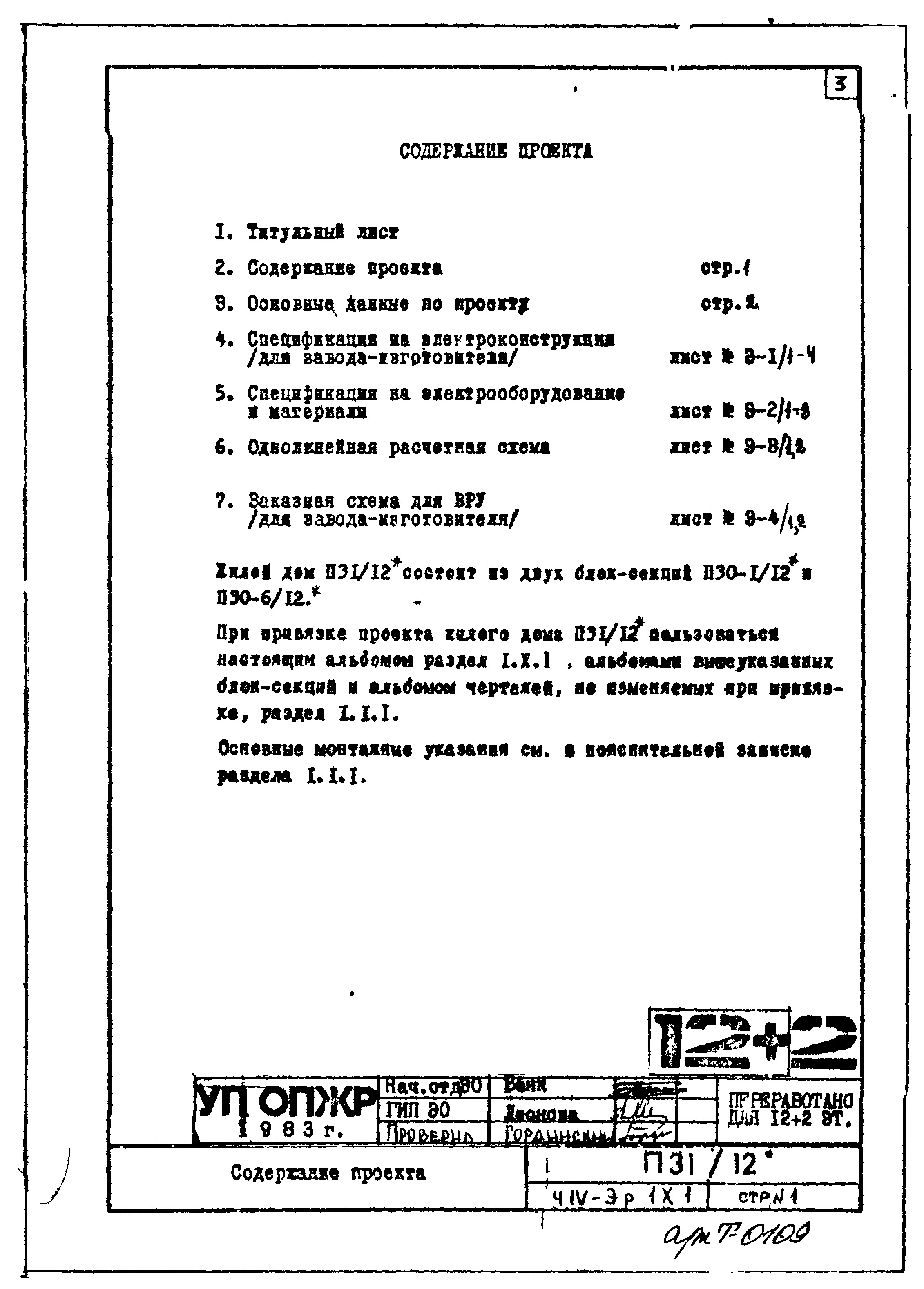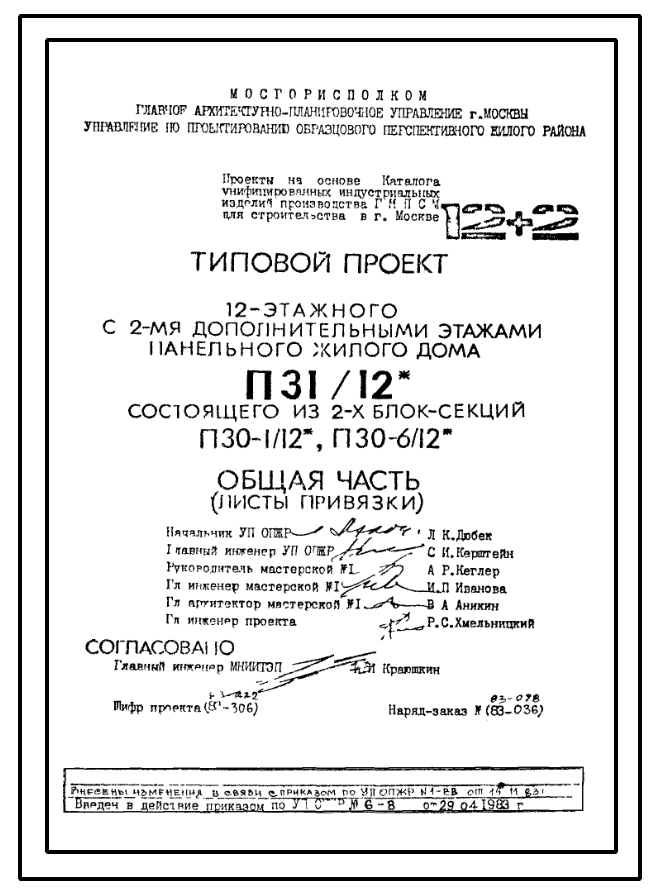 Типовой проект П31/12 12-ти этажный с двумя дополнительными этажами панельный жилой дом состоящего из 2-х блок-секций П30-1/12*, П30-6/12* для строительства в г.Москве